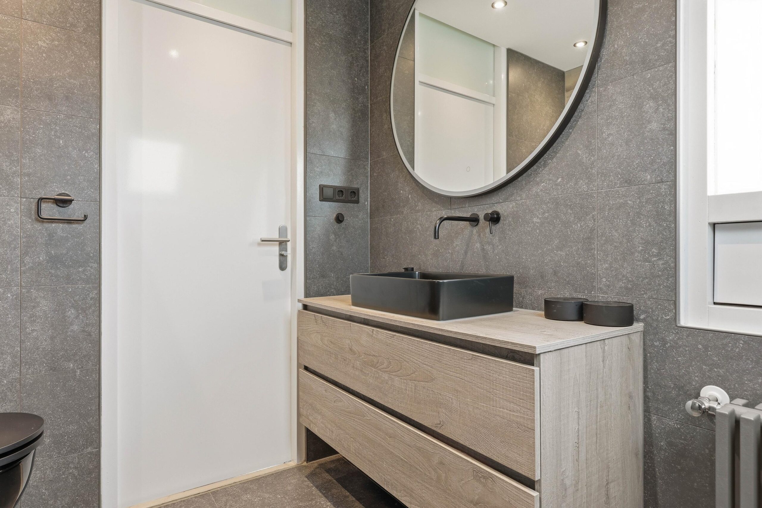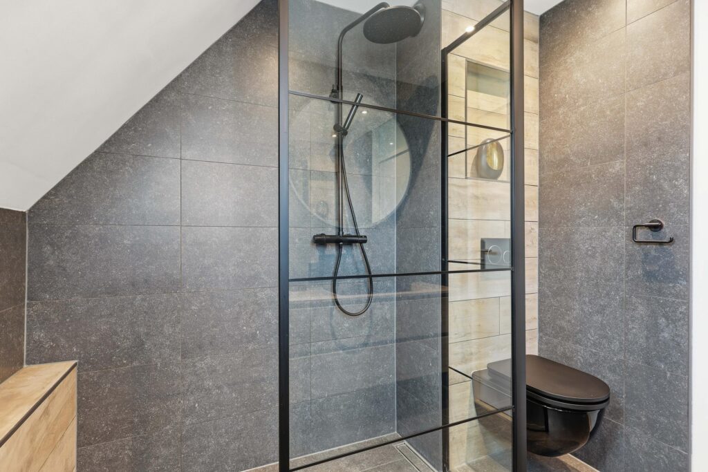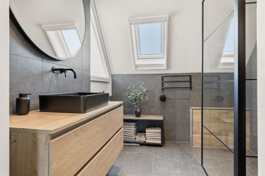 Op de eerste verdieping bevinden zich drie goed bemeten slaapkamers, allen netjes afgewerkt. De moderne badkamer is vernieuwd in 2022 en uitgevoerd in een eigentijdse stijl. Hier beschik je over een ruime inloopdouche, wastafelmeubel, tweede toilet en een Velux dakraam dat zorgt voor prettig daglicht en natuurlijke ventilatie.