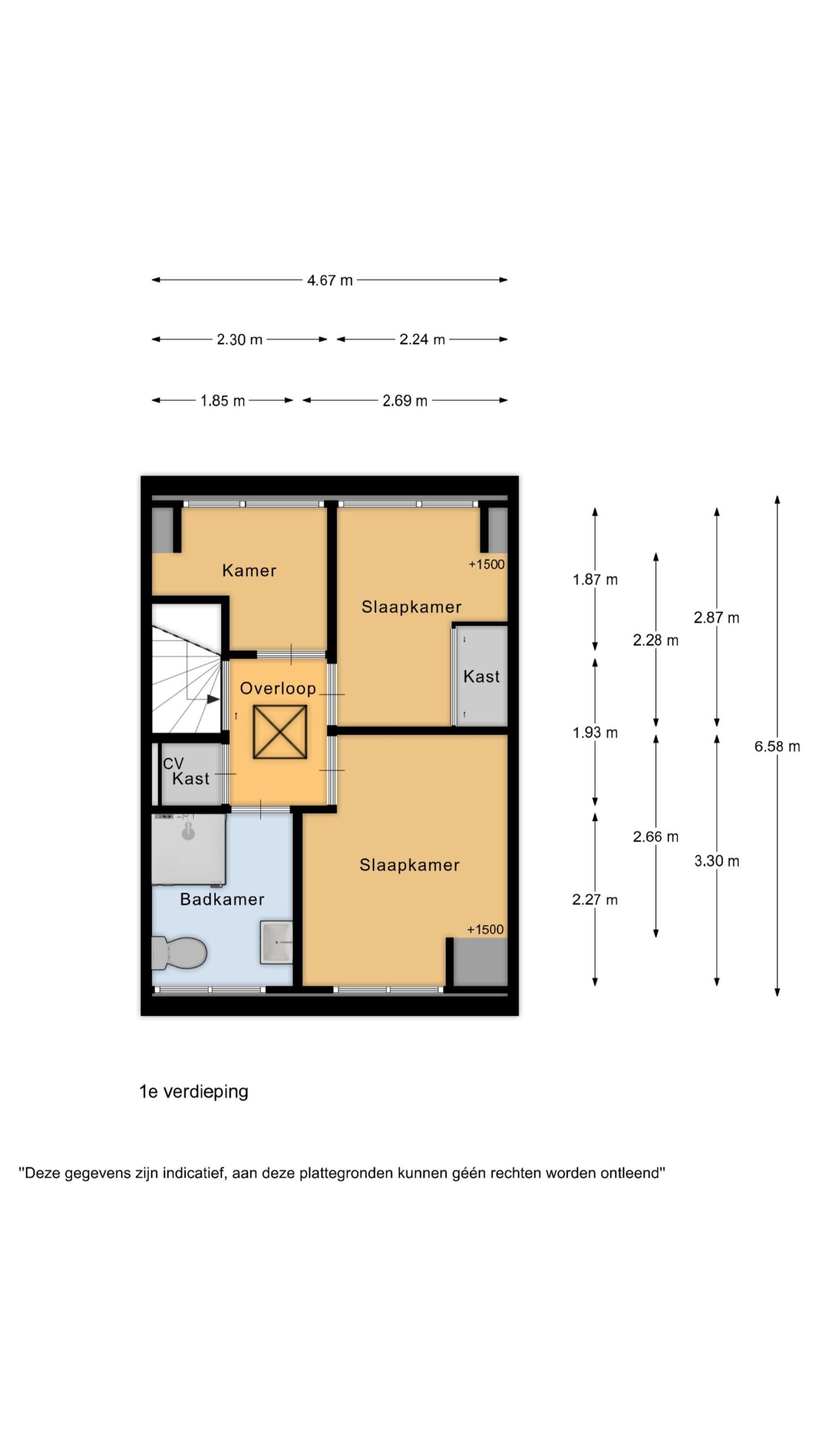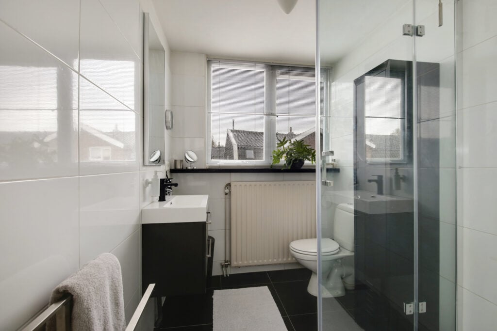 Op de bovenverdieping bevinden zich 3 slaapkamers, waarvan één master bedroom, en de badkamer. Ideaal voor een gezin met jonge kinderen of je maakt van één van de slaapkamers een inloop-kast en/of werkkamer. Op de vliering met dakisolatie is veel ruimte voor opslag van spullen.
