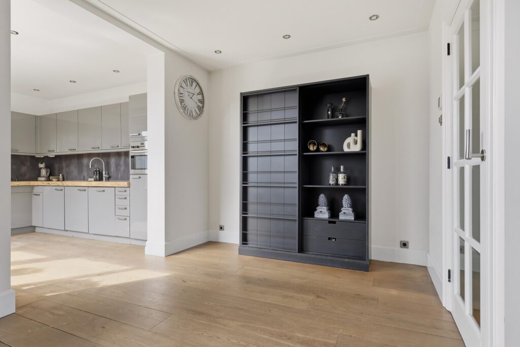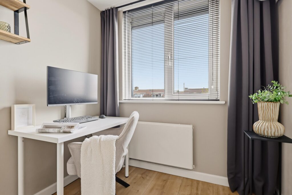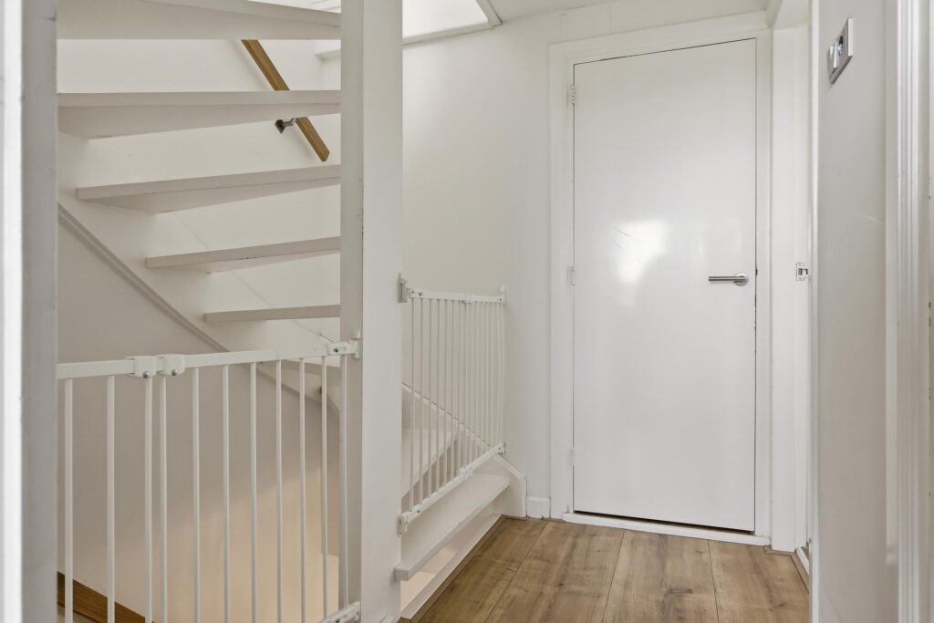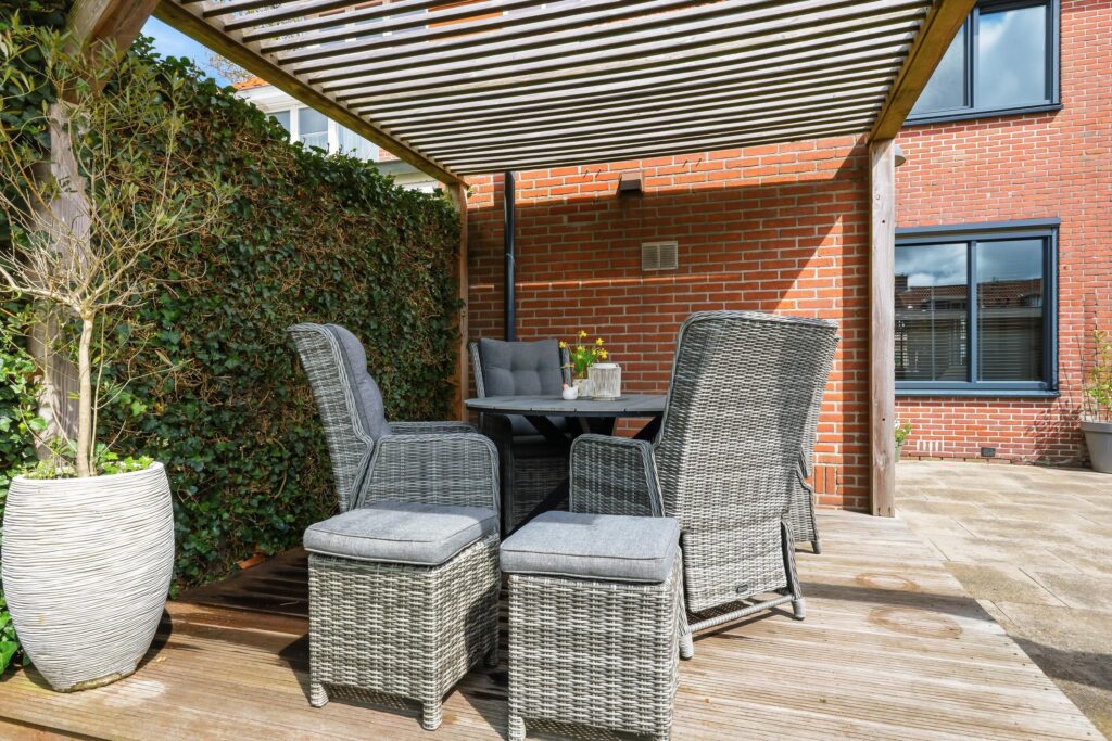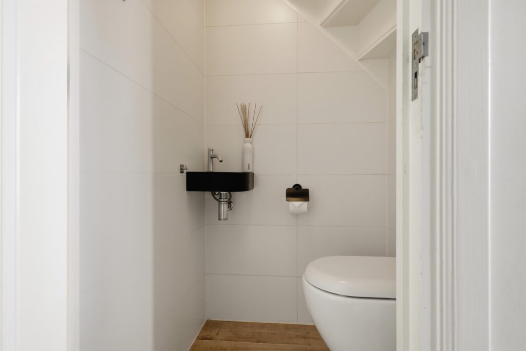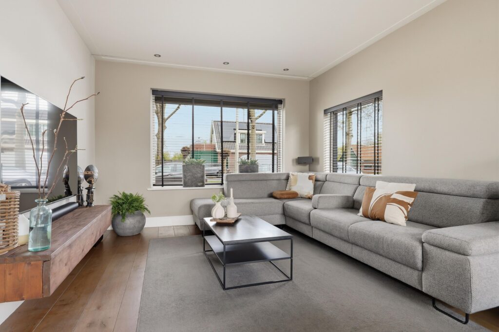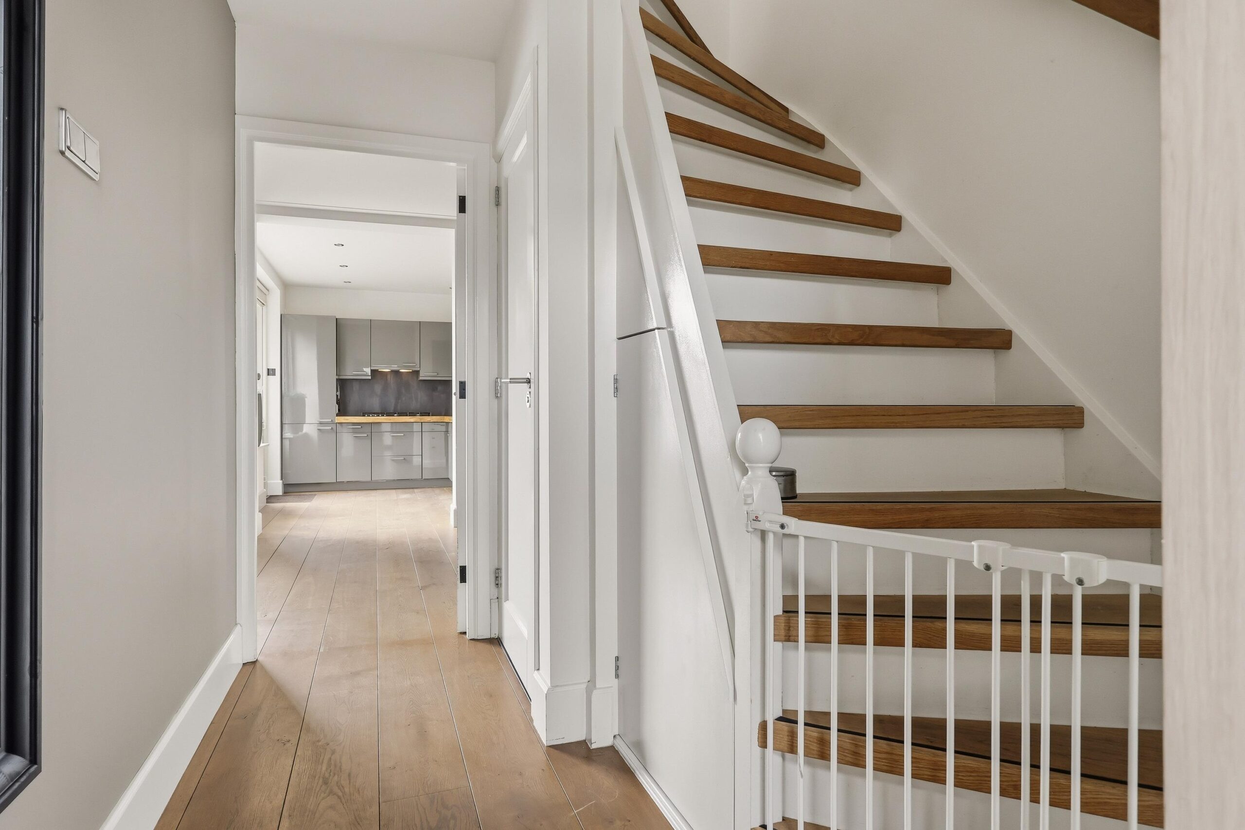 Via de voortuin bereik je de entree van de woning, waar direct de verzorgde afwerking en het praktische karakter opvallen. De hal biedt toegang tot de woonkamer, die dankzij de keukenuitbouw heerlijk ruim is en een prettige lichtinval heeft. De combinatie van vloerverwarming, een sfeervolle pelletkachel en airconditioning zorgt hier het hele jaar door voor een aangenaam binnenklimaat. Aan de achterzijde bevindt zich de open keuken, voorzien van diverse inbouwapparatuur en een Quooker-kraan, met zicht op de tuin. Vanuit de woonkamer loop je zo de diepe achtertuin in, waar je kunt genieten van rust en privacy.