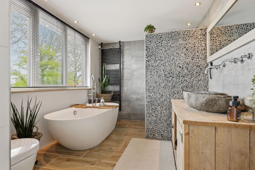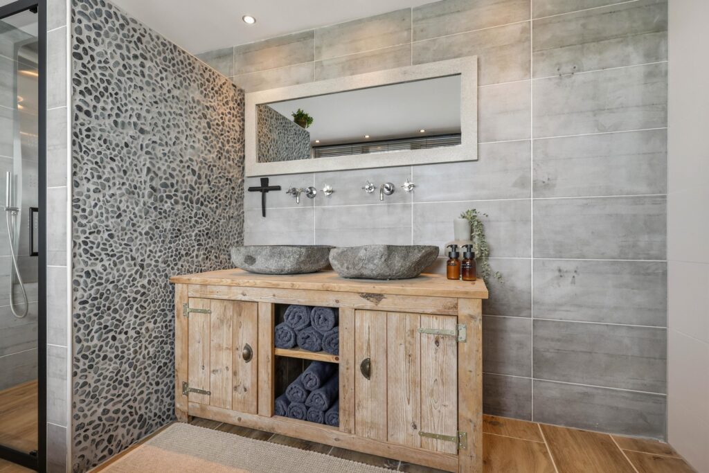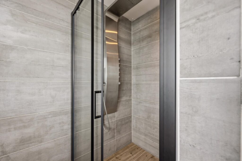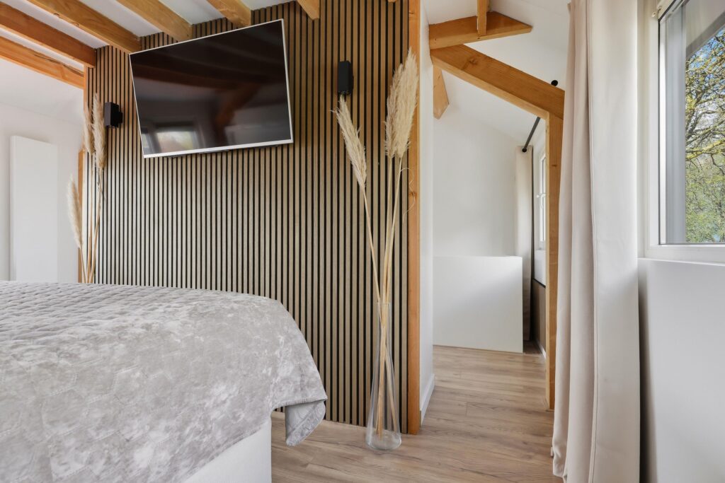 Op de verdieping bevinden zich meerdere slaapkamers, allen voorzien van airconditioning, wat zorgt voor optimaal comfort tijdens warme dagen. De badkamer is modern en stijlvol uitgevoerd en beschikt over vloerverwarming, wat het geheel extra aangenaam maakt. De tweede verdieping, vergroot middels een dakopbouw in 2018, is via een vaste trap bereikbaar en ingericht als een royale hoofdslaapkamer. Deze slaapkamer kan eenvoudig worden gesplitst in twee verschillende slaapkamers.