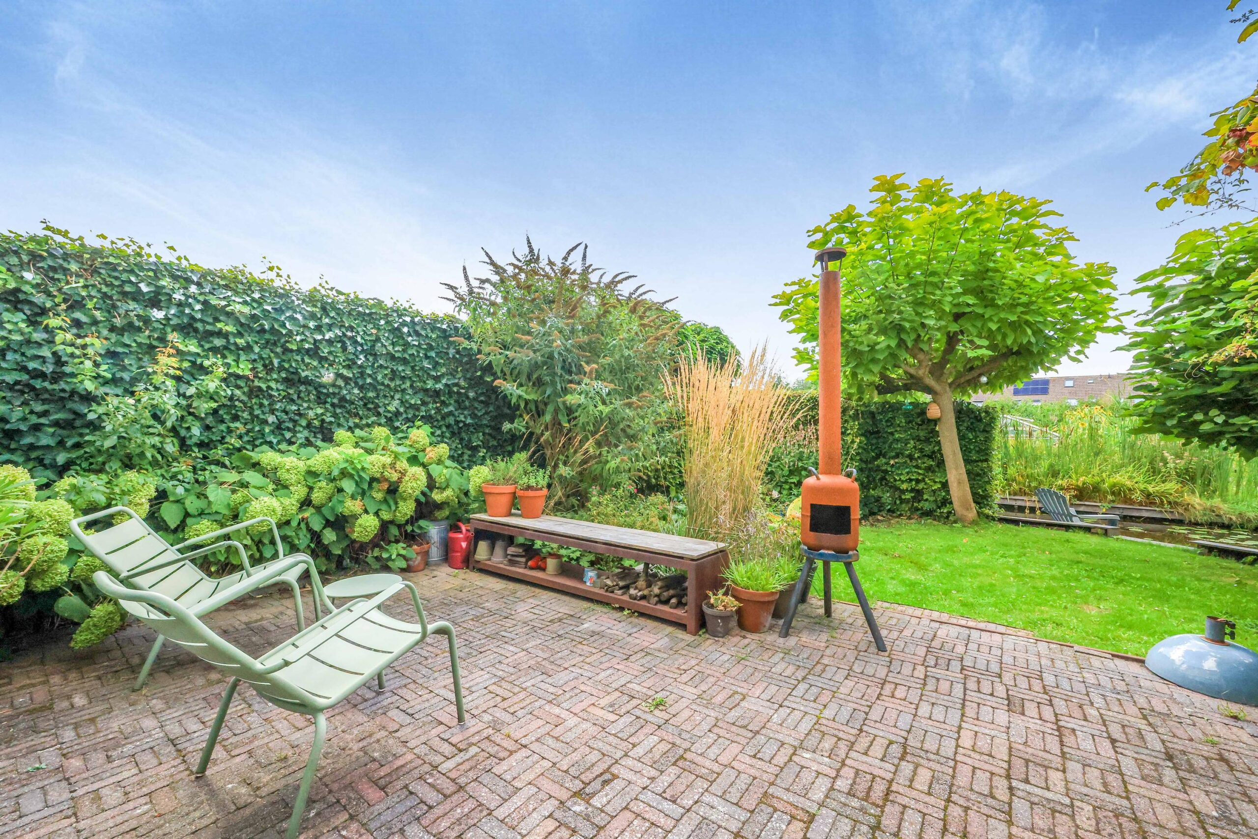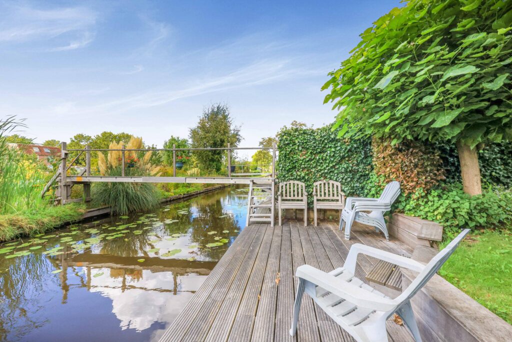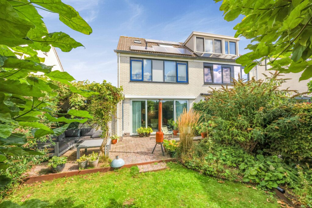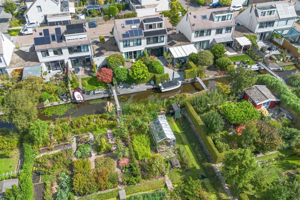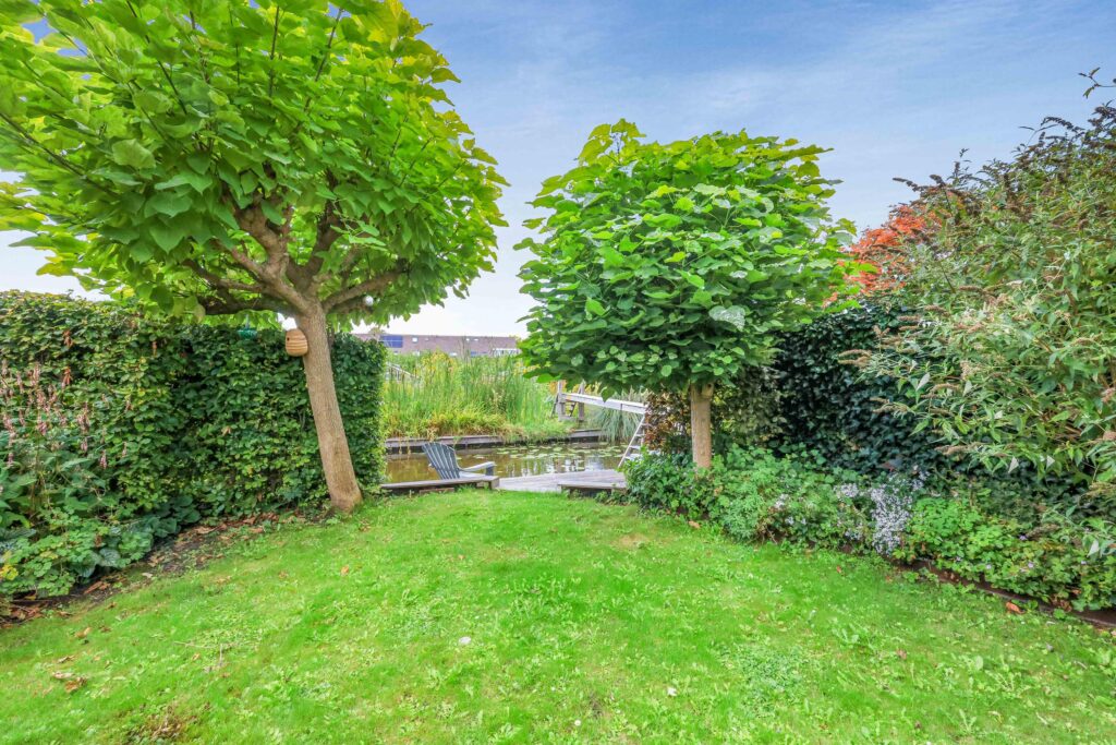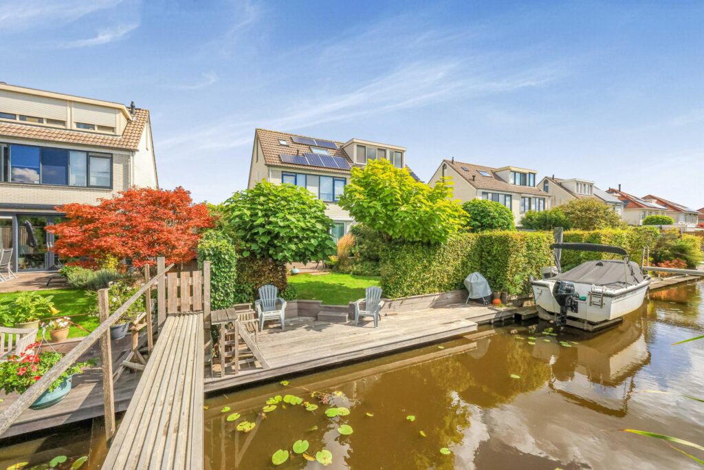 De achtertuin is royaal en gunstig gelegen, met voldoende ruimte om te ontspannen, te spelen of gezellig buiten te zitten. De ligging aan open vaarwater zorgt voor een vrij en open gevoel. Vanaf vaart ‘de Delft’ vaar je eenvoudig richting de Zaan en daarmee naar onder andere Zaandam, de Zaanse Schans en zelfs Amsterdam, terwijl je ook volop kunt genieten van rustige vaarroutes door de omliggende polders en dorpen. Daarnaast beschikt de woning over een aangebouwde stenen garage en een oprit met laadpaal, wat het geheel extra praktisch maakt.