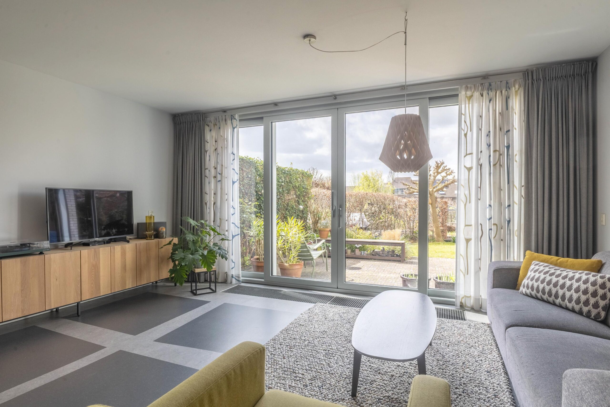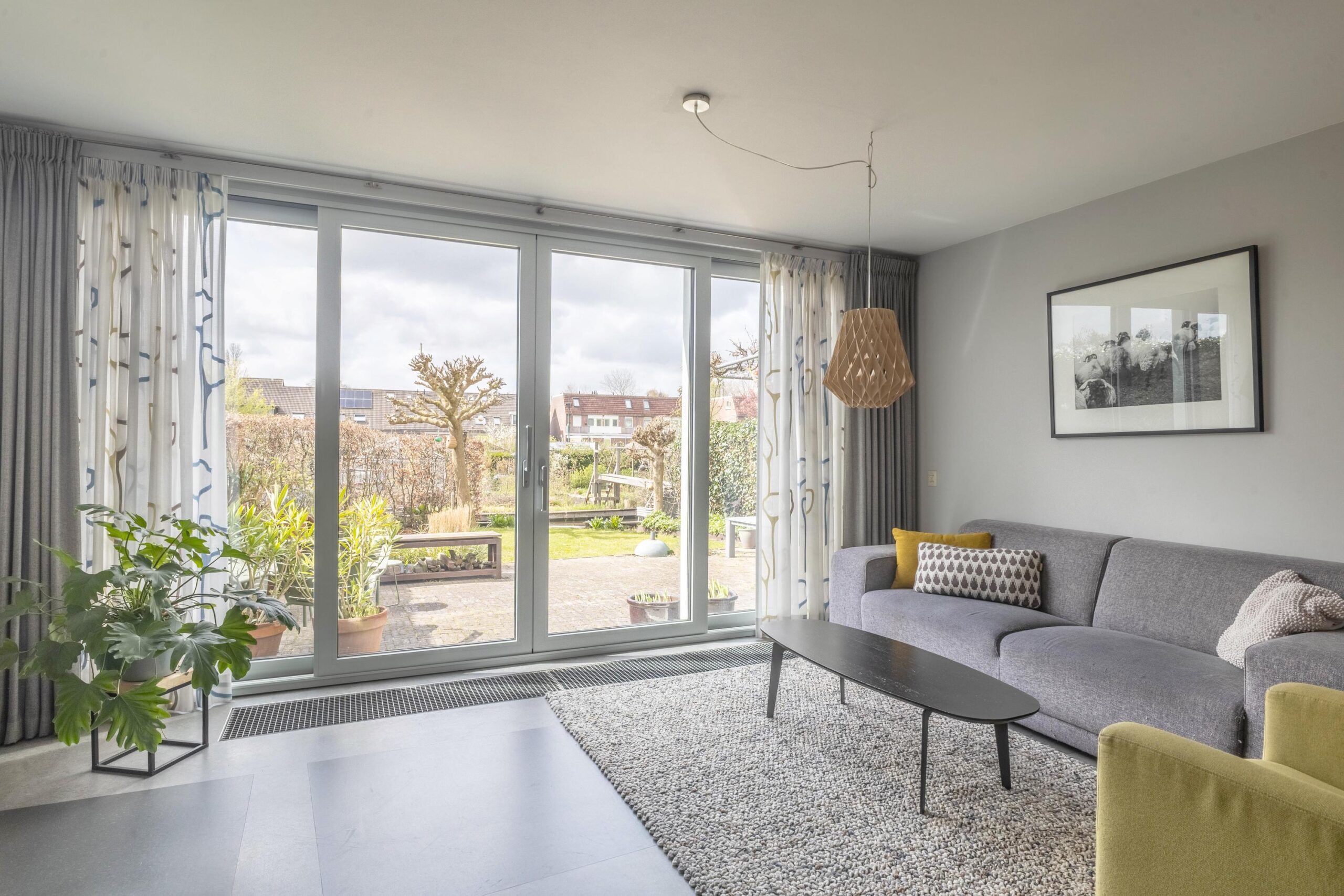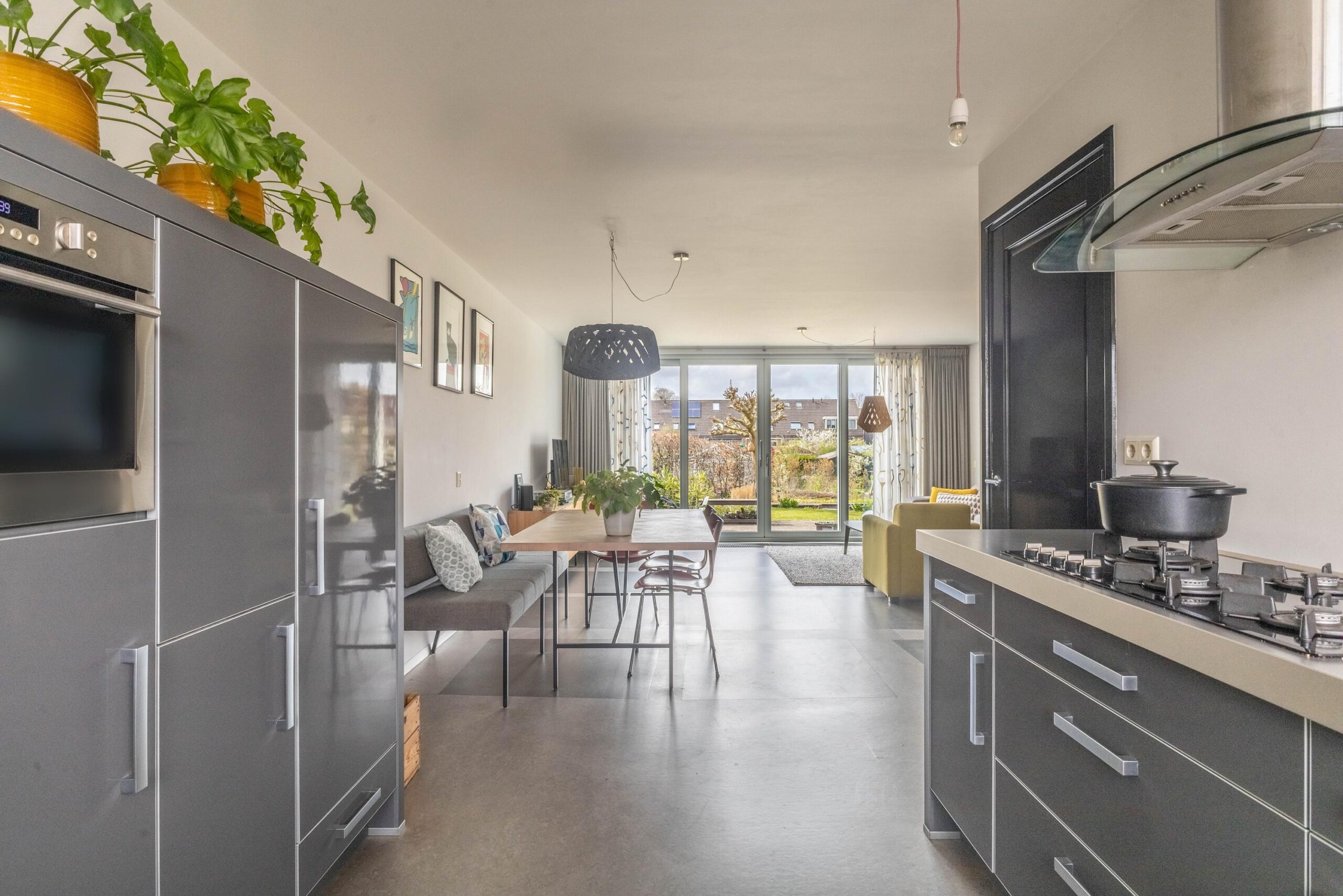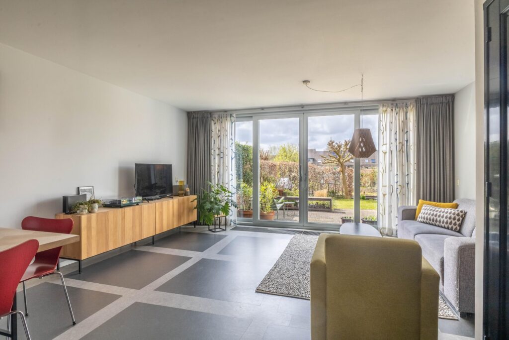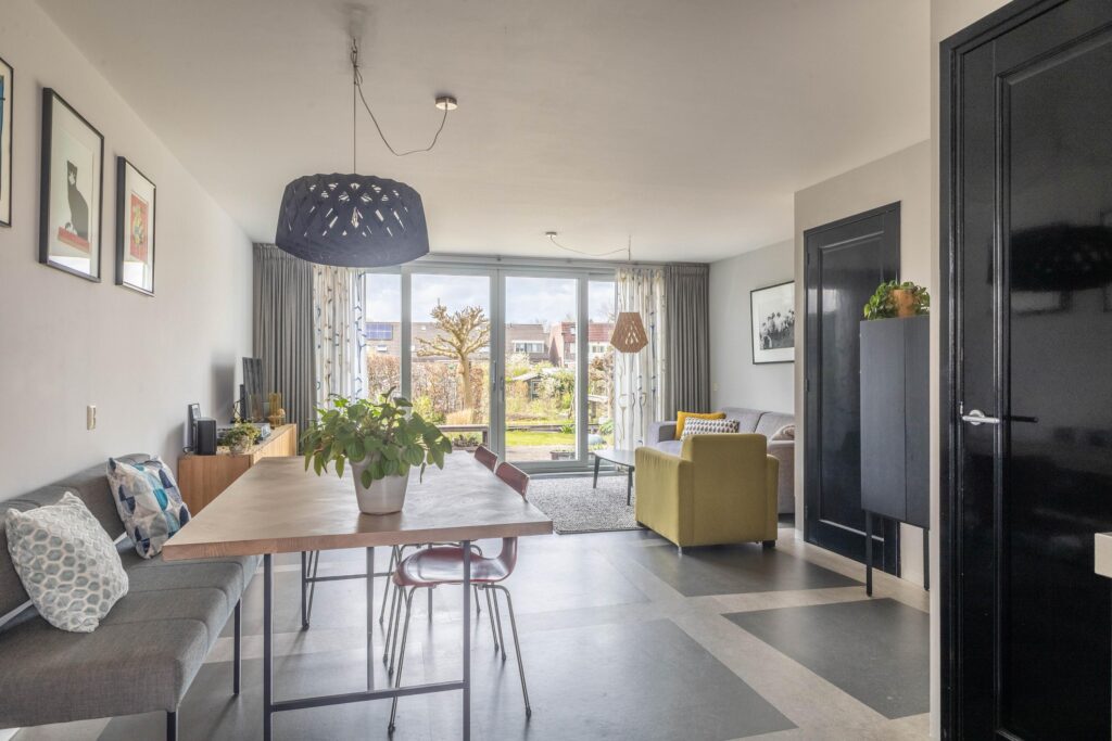Bij binnenkomst valt direct de prettige lichtinval en de verzorgde afwerking op. De woonkamer is ruim en sfeervol, met een fijne verbinding naar de tuin dankzij de grote schuifpui. De open keuken is functioneel ingericht en voorzien van diverse inbouwapparatuur, waardoor koken en samenzijn hier moeiteloos samenkomen. Op de begane grond is bovendien vloerverwarming aanwezig, wat zorgt voor extra comfort.