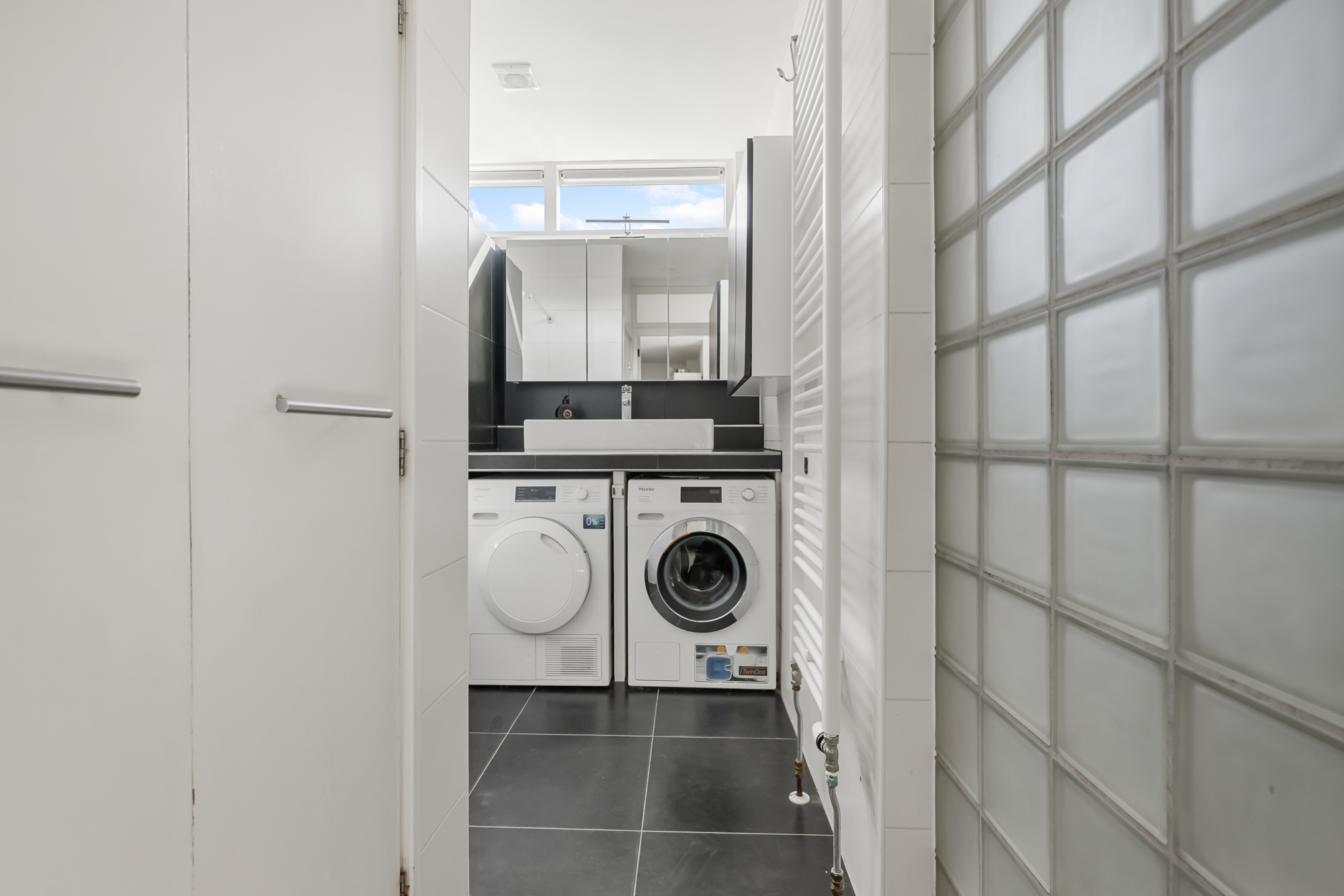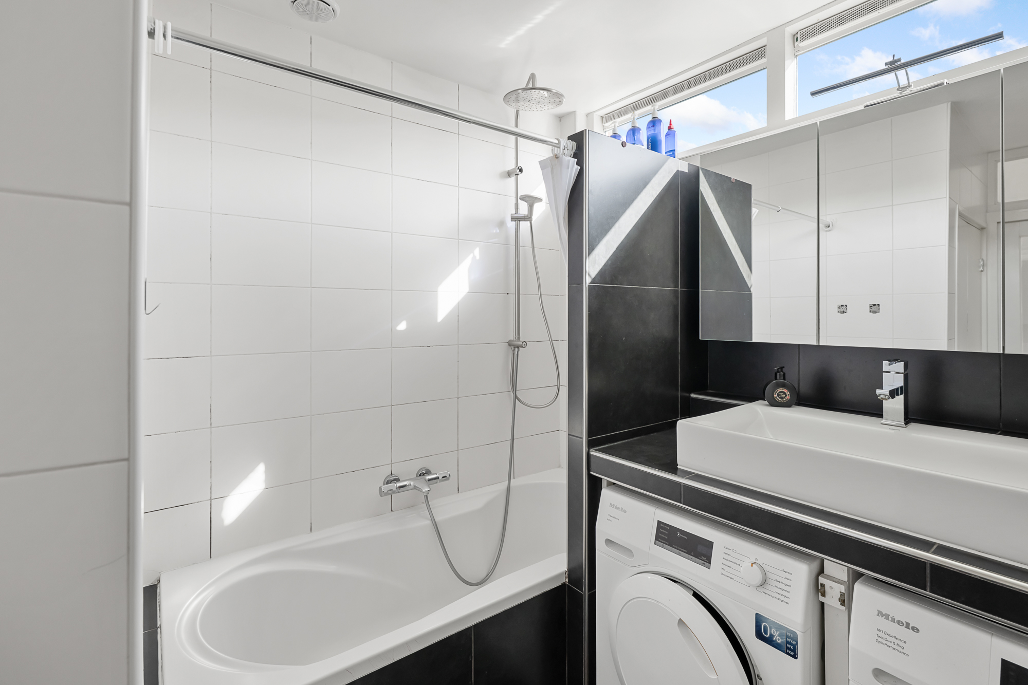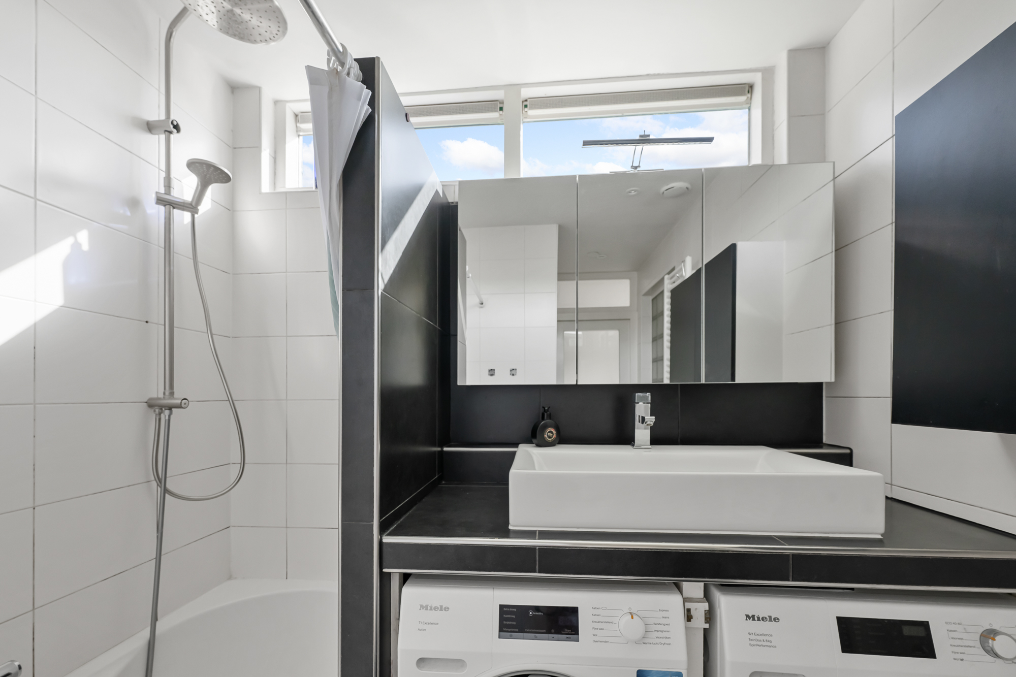 De keuken is praktisch ingericht en voorzien van diverse inbouwapparatuur, waaronder een inductiekookplaat, oven en vaatwasser. Vanuit de keuken zijn het toilet en de CV-opstelling bereikbaar, met een Intergas ketel uit 2020. Op de begane grond bevindt zich tevens de badkamer, die is uitgerust met een wastafel, een bad/douchecombinatie, elektrische vloerverwarming en mechanische ventilatie. Ook is hier een praktische wasmachine- en drogeropstelling aanwezig.