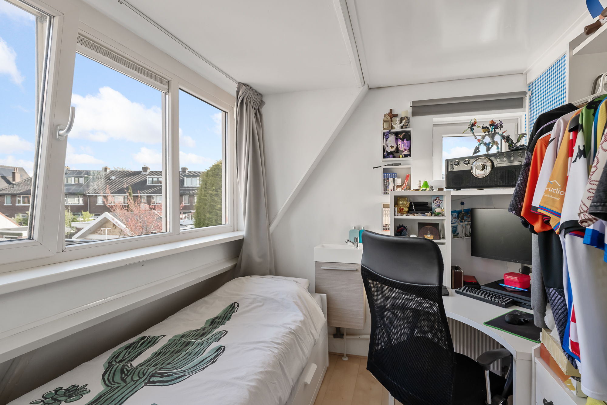 De overige slaapkamers zijn praktisch ingedeeld en bieden volop mogelijkheden. Twee kamers beschikken over kunststof kozijnen en dakkapellen, wat zorgt voor extra ruimte en een prettige lichtinval. Beide kamers zijn bovendien voorzien van een wastafel, wat ze extra functioneel maakt.