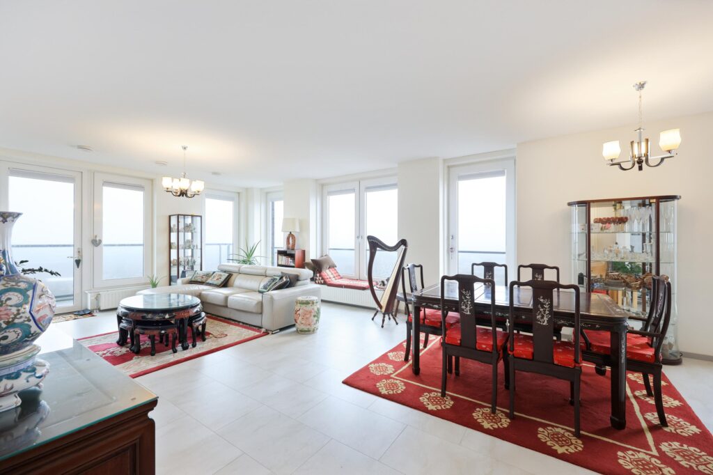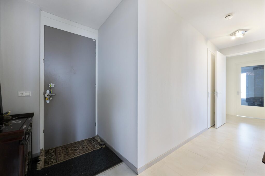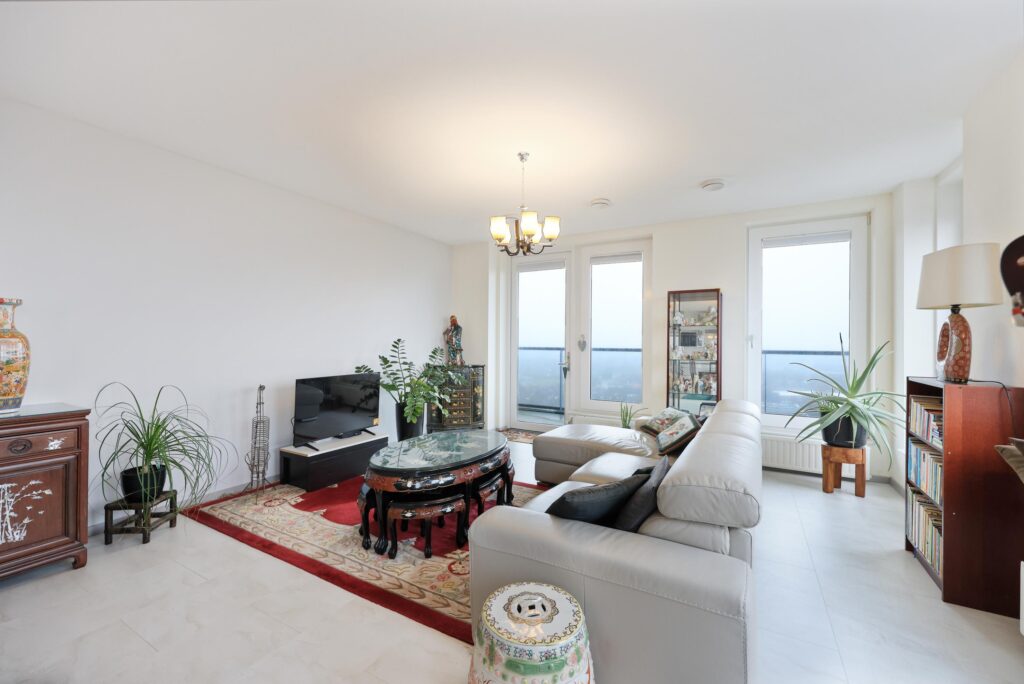 Via de verzorgde centrale entree met intercominstallatie en lift bereik je het appartement. Bij binnenkomst valt direct de ruime en lichte opzet op. De hal geeft toegang tot de verschillende vertrekken en biedt voldoende ruimte voor garderobe en opbergruimte. De royale woonkamer vormt het hart van de woning en profiteert van grote raampartijen waardoor er veel natuurlijk licht binnenvalt en je geniet van een prettig vrij uitzicht. De open indeling zorgt voor een ruimtelijk gevoel en maakt het een fijne plek om te ontspannen of gasten te ontvangen.