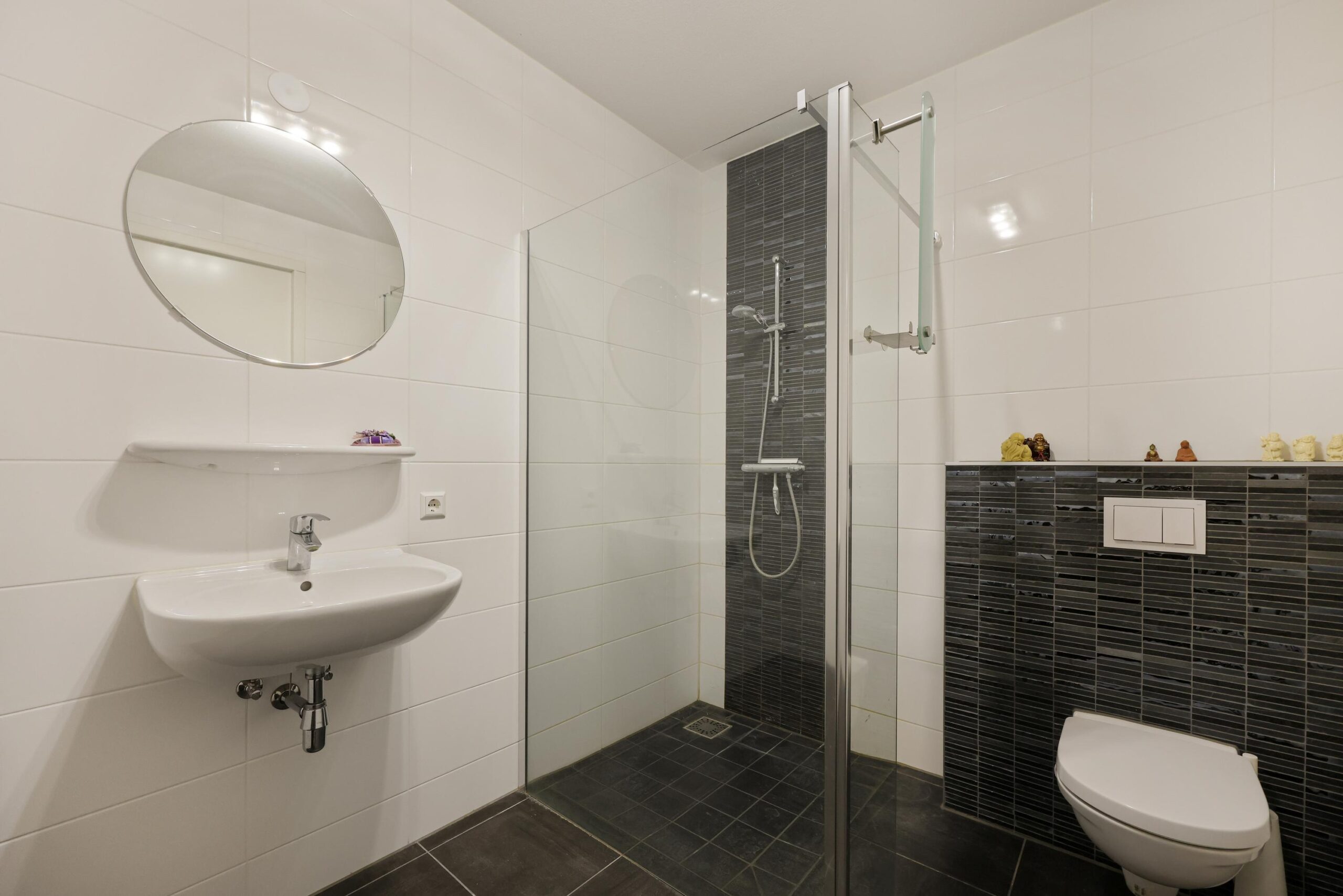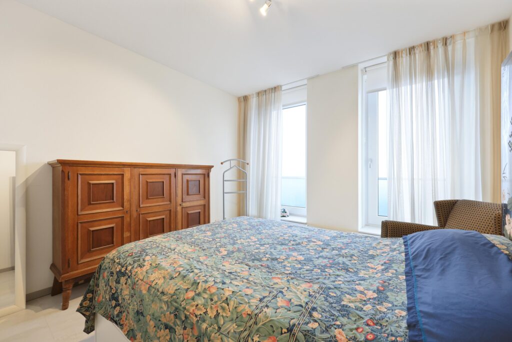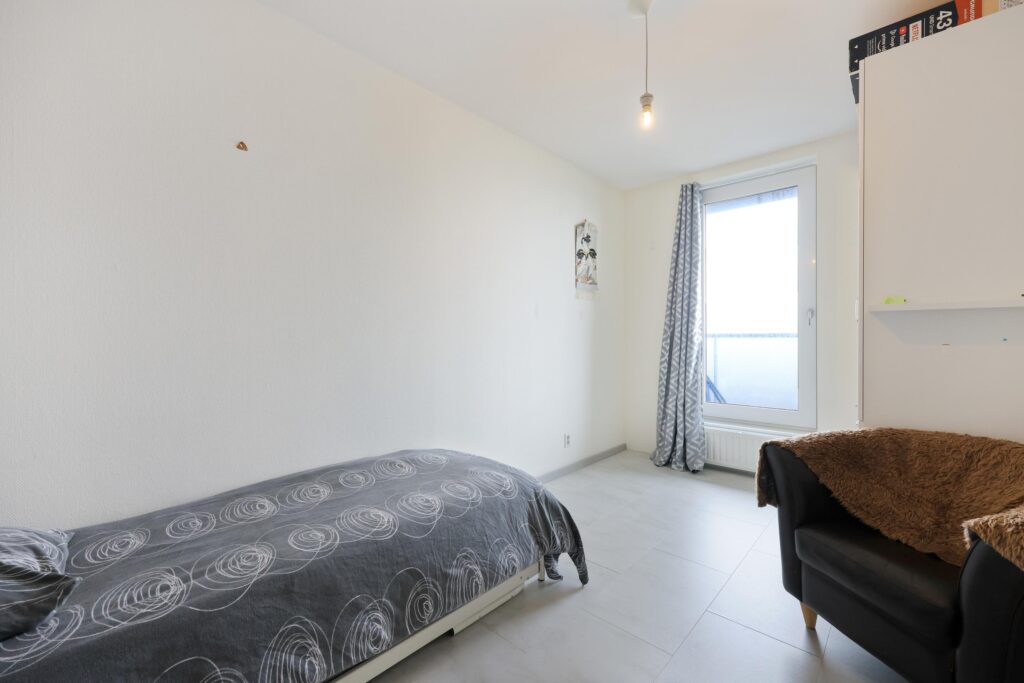 Het appartement beschikt over twee goed bemeten slaapkamers die flexibel te gebruiken zijn, bijvoorbeeld als hoofdslaapkamer, logeerkamer of werkruimte. De badkamer is modern uitgevoerd en voorzien van een douche, wastafel en tweede toilet. Daarnaast is er een separaat toilet met fonteintje.