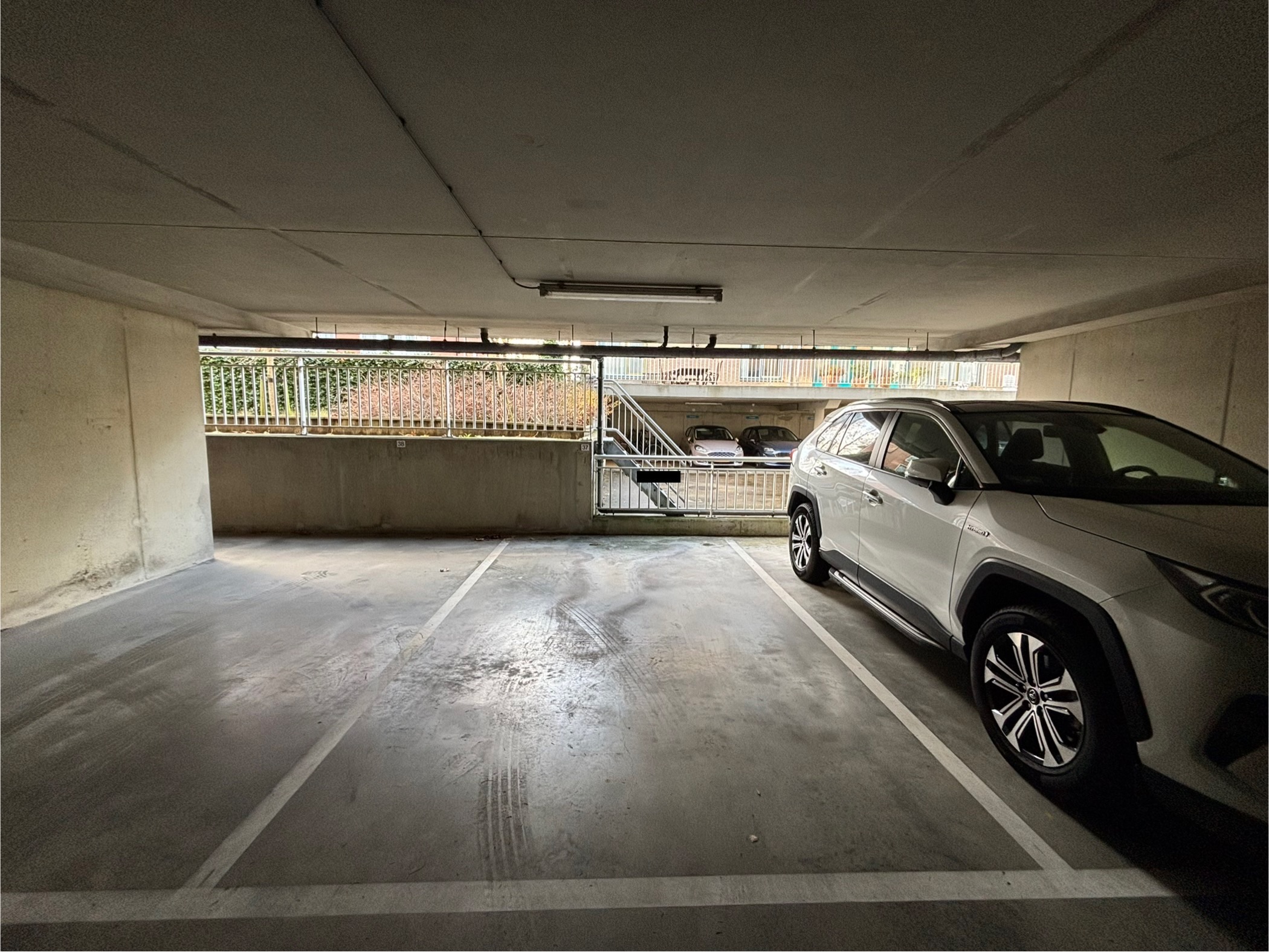 De parkeergarage is privé en toegankelijk via een elektrische overheaddeur. Deze is vanaf een afstand te bedienen met een eigen afstandsbediening.