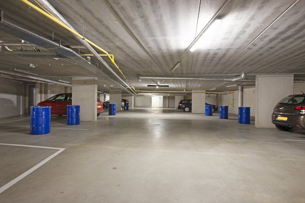 In het centrum gelegen parkeerplaats in een afgesloten parkeergarage, direct onder een appartementencomplex aan de Raadhuisstraat. De parkeergarage is toegankelijk via een elektrische overheaddeur.