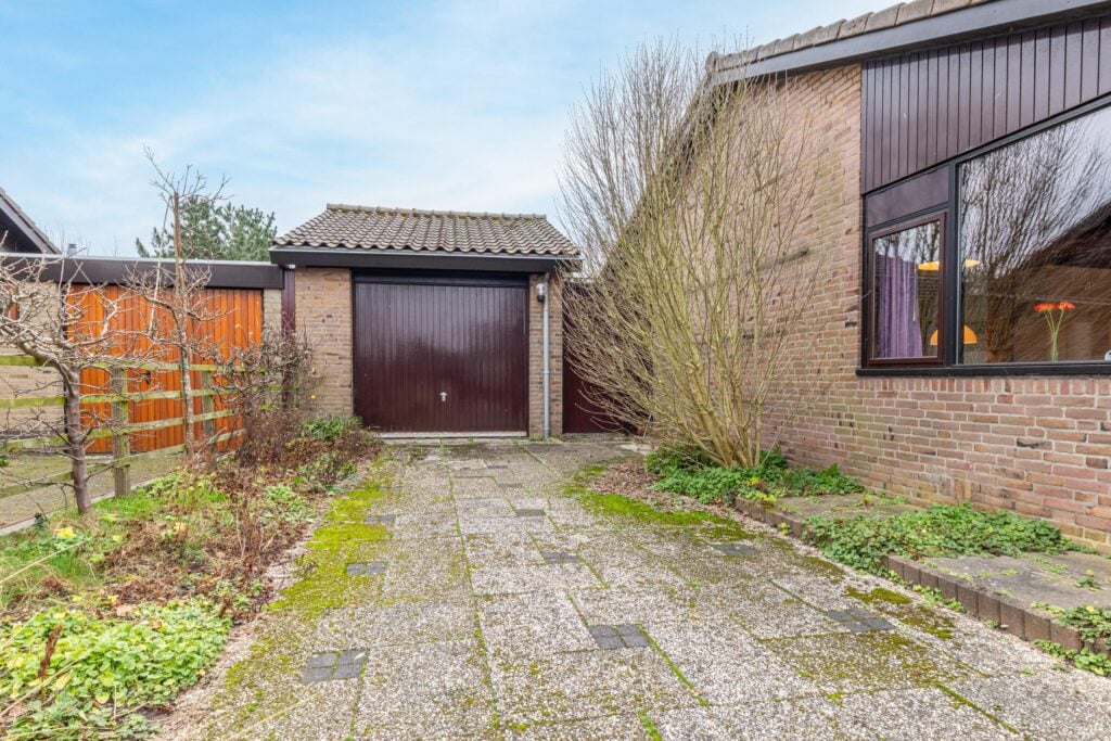 Extra fijn is parkeren op eigen terrein, de oprit biedt ruimte aan 2 auto’s. Liever de auto of motor droog hebben staan? De vrijstaande stenen garage biedt hier de oplossing voor, ideaal! Opbergruimte te kort? In de garage bevindt zich ook nog een vliering voor extra opbergmogelijkheden. De poortdeur tussen de woning en de garage geeft toegang tot de achtertuin.