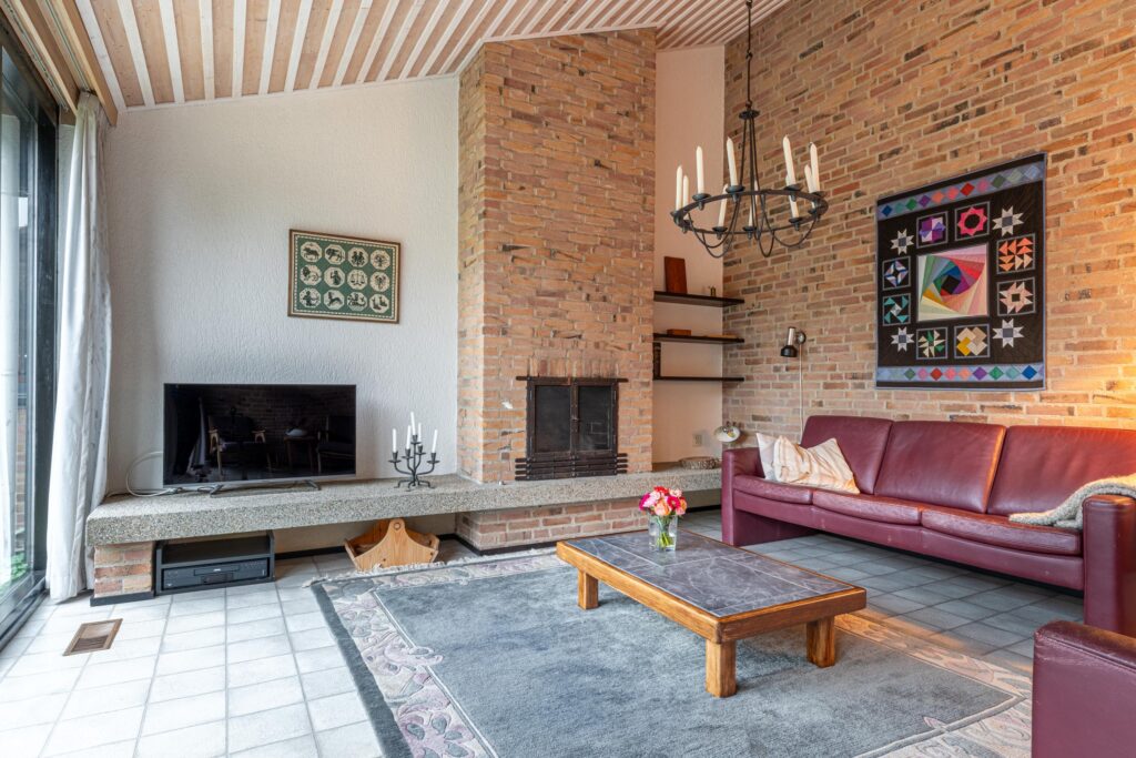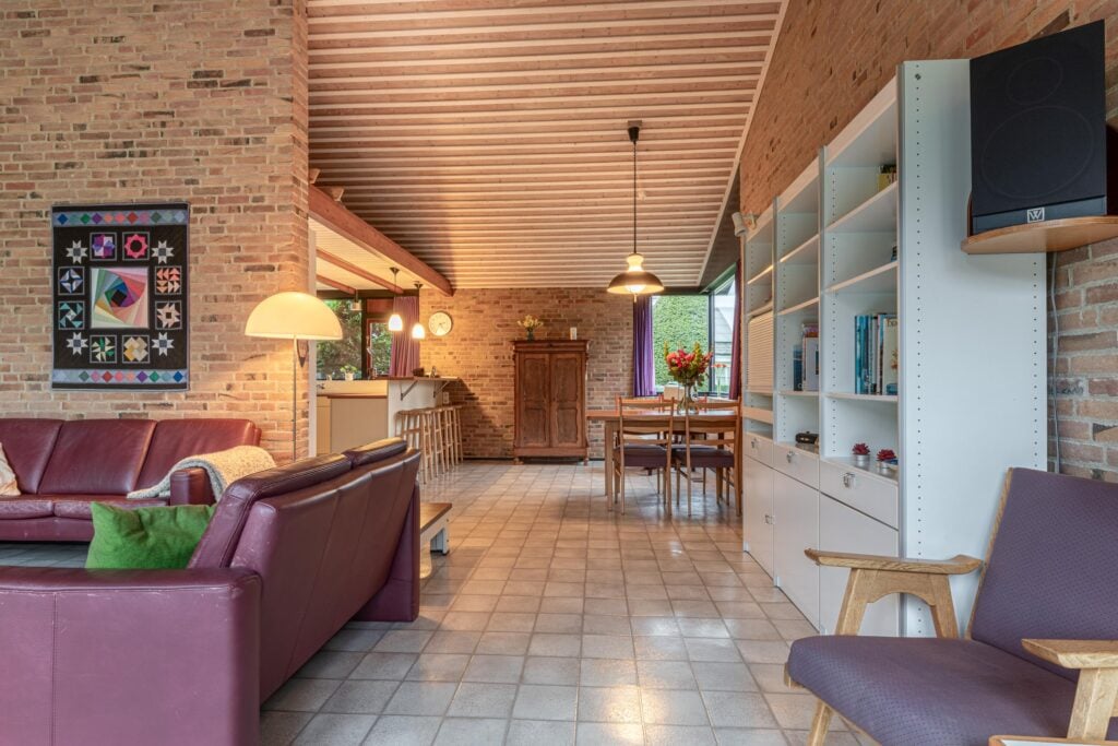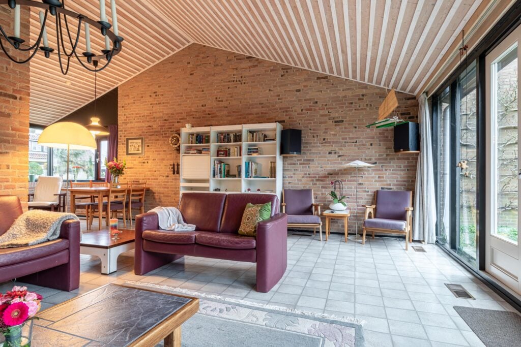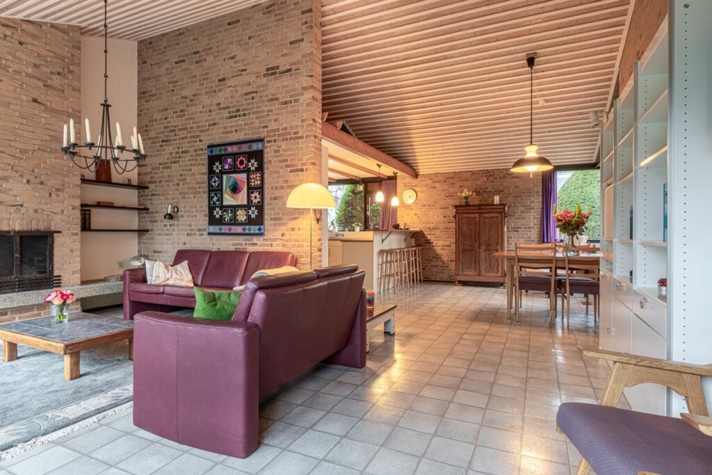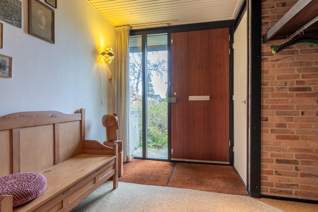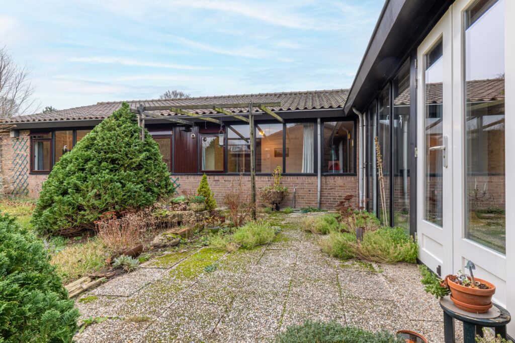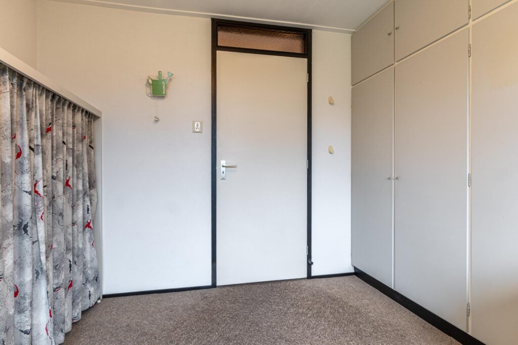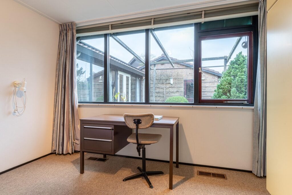 Via de entree kom je binnen in een ruime hal met garderobe, separaat toilet én toegang tot de eerste slaapkamer. Door de hal bereiken we de open keuken met zicht op het eetgedeelte en komen we in de ruime woonkamer. De woonkamer is breed van opzet, met heerlijk grote raampartijen én openslaande deuren, gericht op de royale achtertuin gelegen op het zuidoosten. De open haard vormt een sfeervol middelpunt en maakt de woonkamer tot een knusse ruimte, ideaal voor gezellige avonden thuis. De keuken is praktisch ingericht en biedt volop mogelijkheden om uit te breiden tot een echte woonkeuken of volledig te moderniseren naar eigen smaak. Door het kozijn in de hoek heb je hier een fantastisch zicht op het groen rondom de woning en fijn extra daglicht dat naar binnen valt.