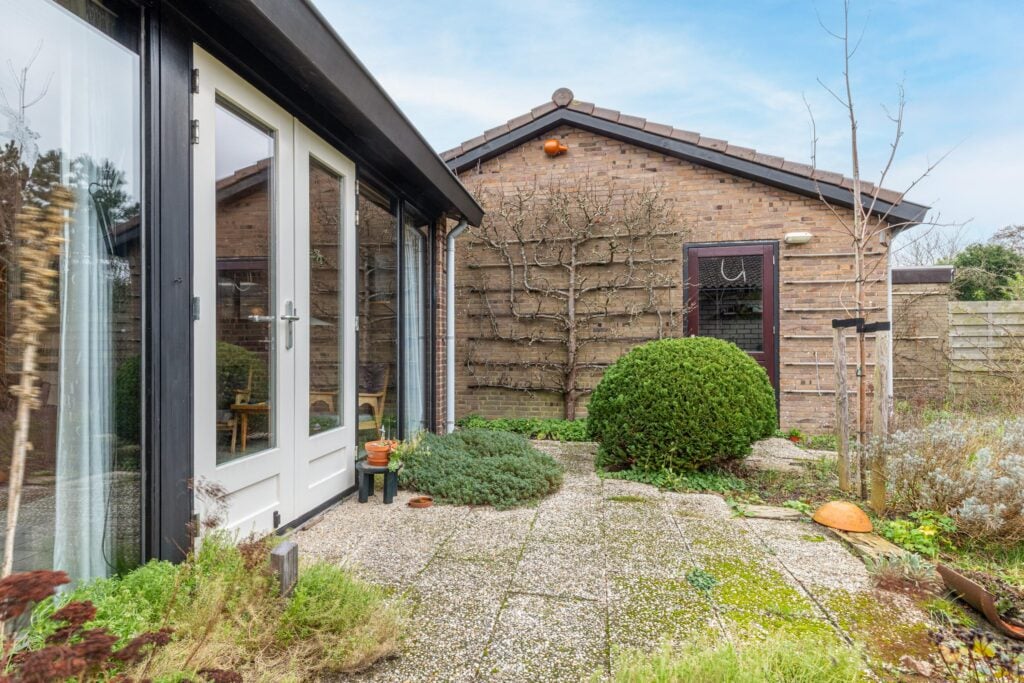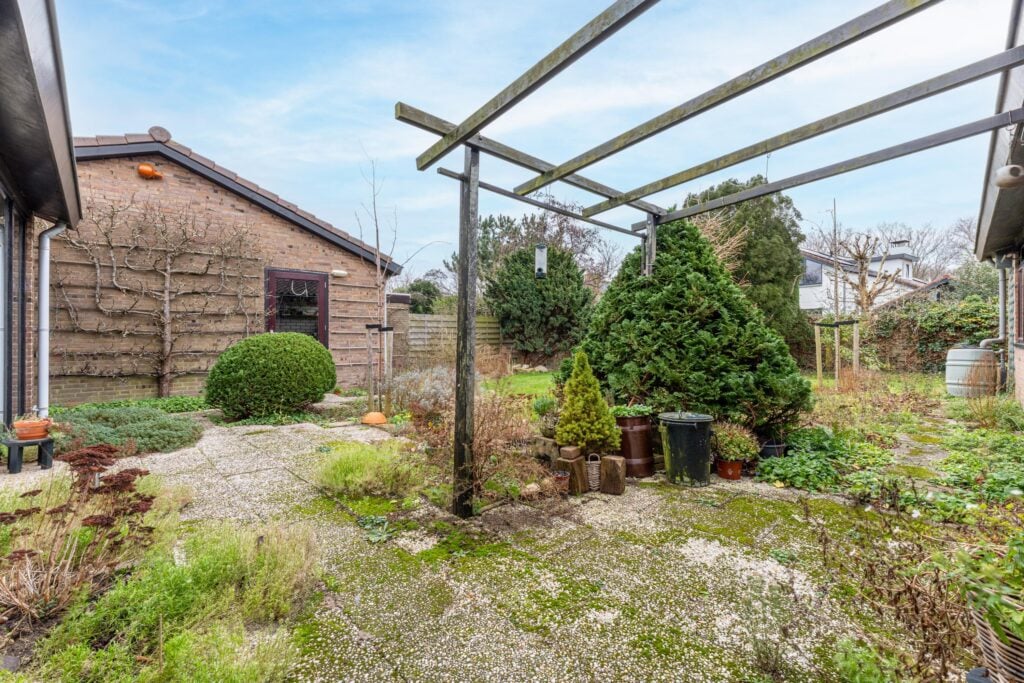Rondom de woning ligt een royale tuin op een perceel van maar liefst 544 m2. Daardoor is er altijd een plekje om te kunnen genieten van de zon of schaduw en biedt veel privacy. Hier geniet je in alle rust van het buitenleven.