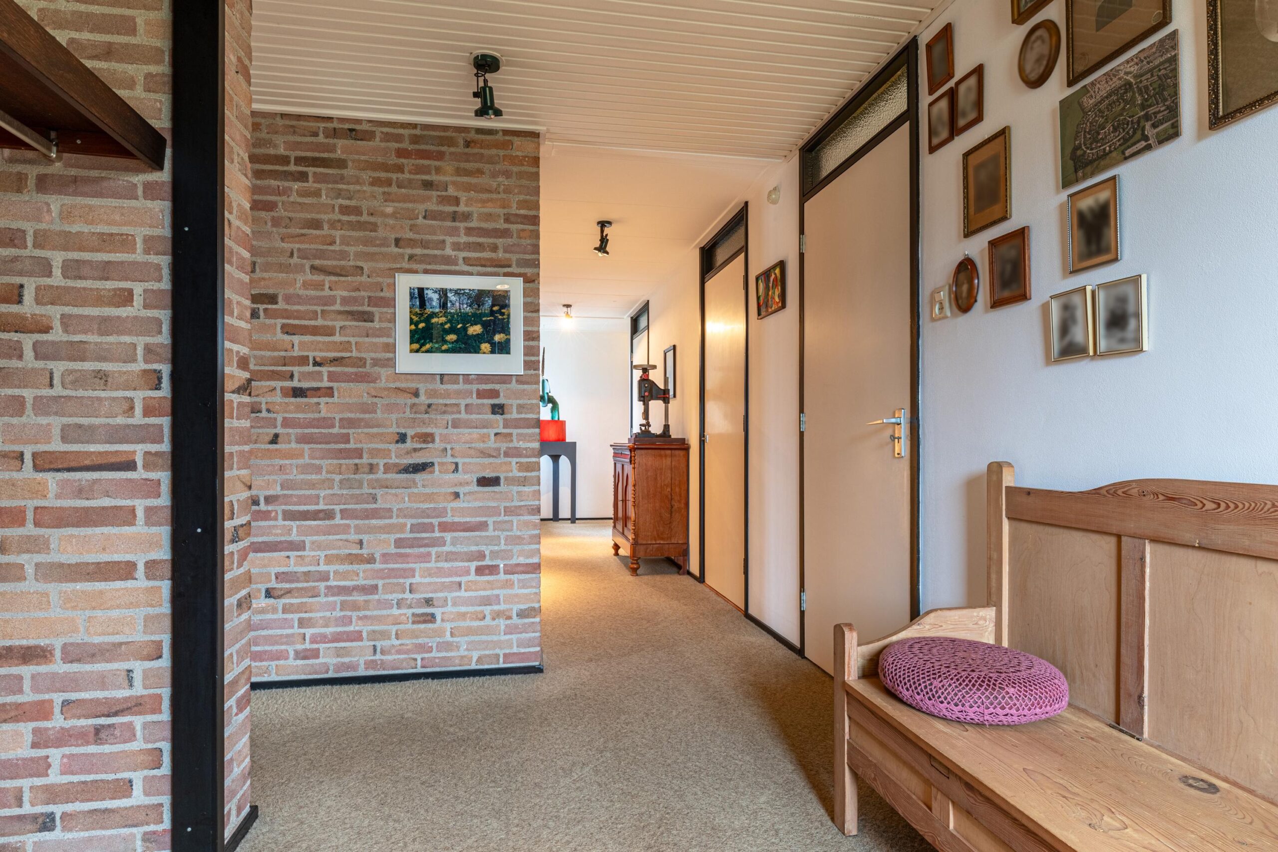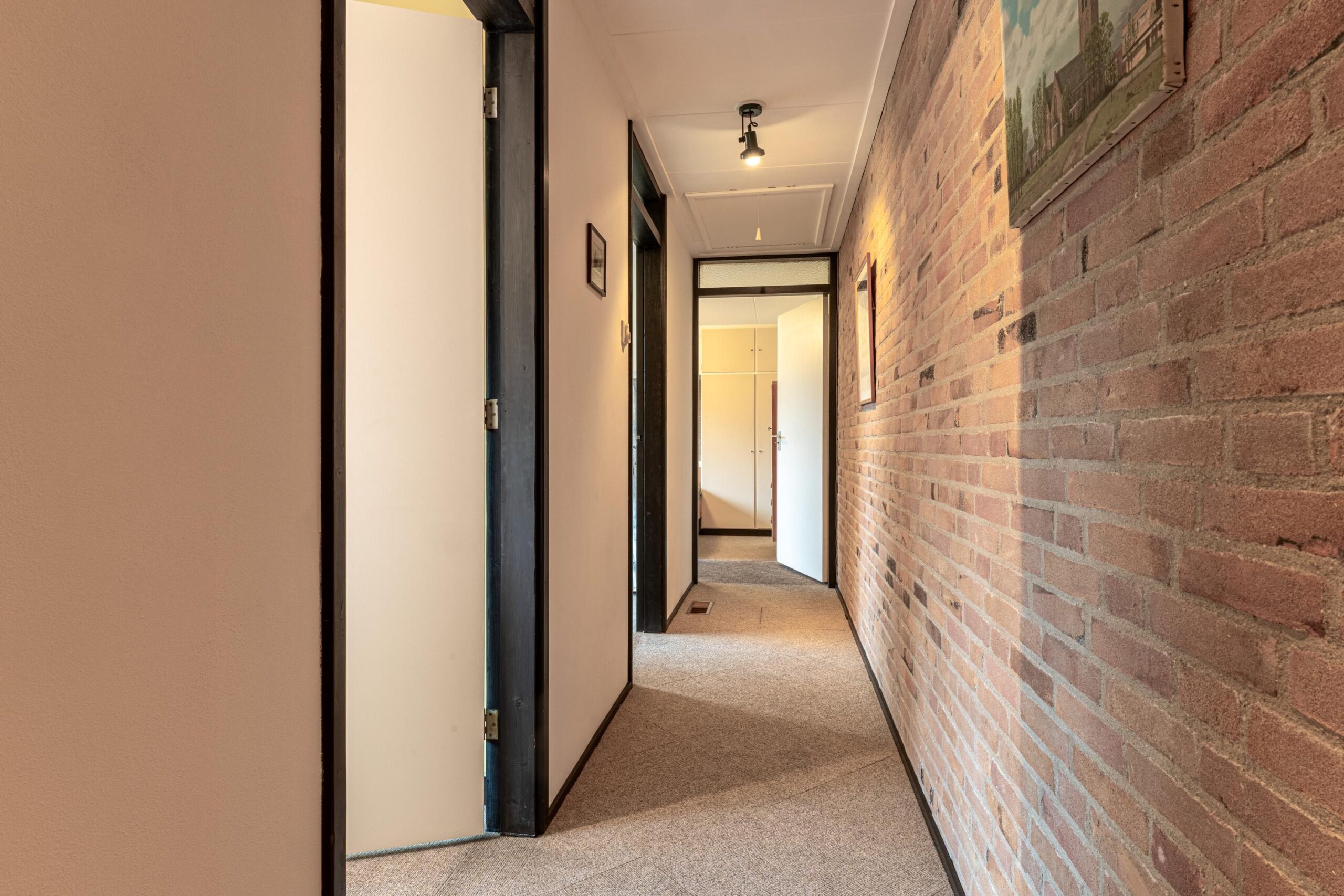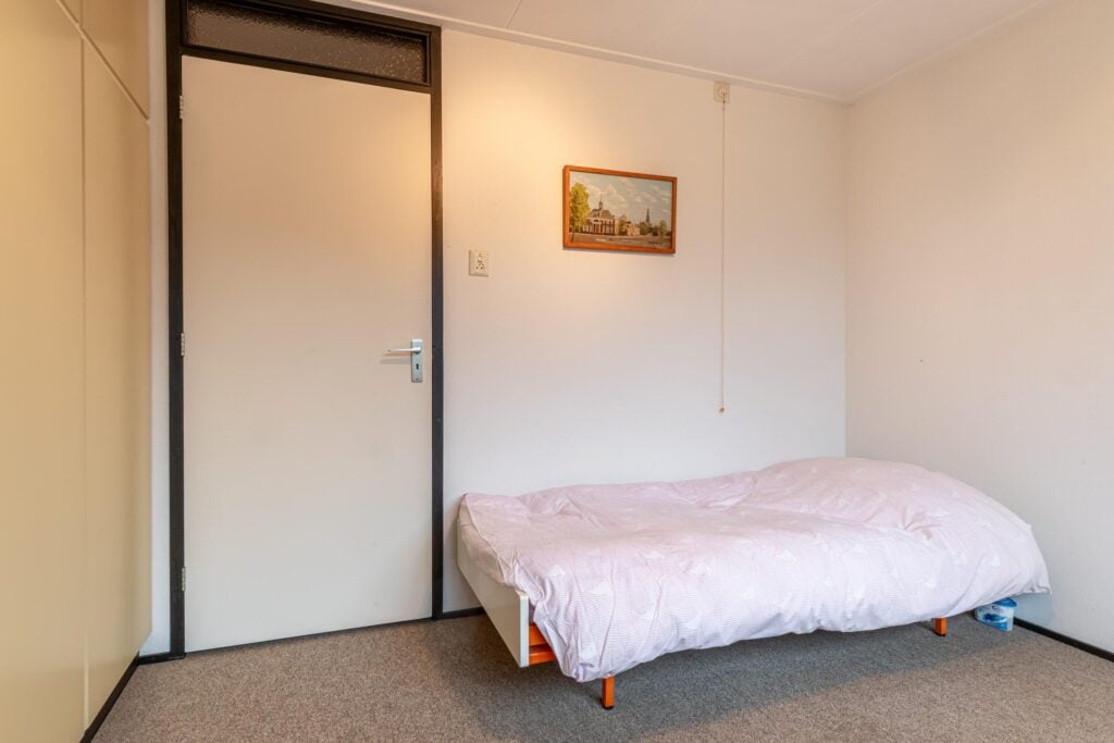 Terug naar de hal heeft men toegang tot diverse opbergruimtes, een loopdeur naar de achtertuin en de badkamer. De badkamer is compleet inclusief douche, bad, wastafelmeubel én wasmachineaansluiting. Door de gang bereikt men de 3 overige slaapkamers, allen van goed formaat. De vlizotrap in de gang geeft toegang tot de vliering waar je beschikt over een fantastische hoeveelheid bergruimte of misschien wel een ideale speelplek voor de kinderen!