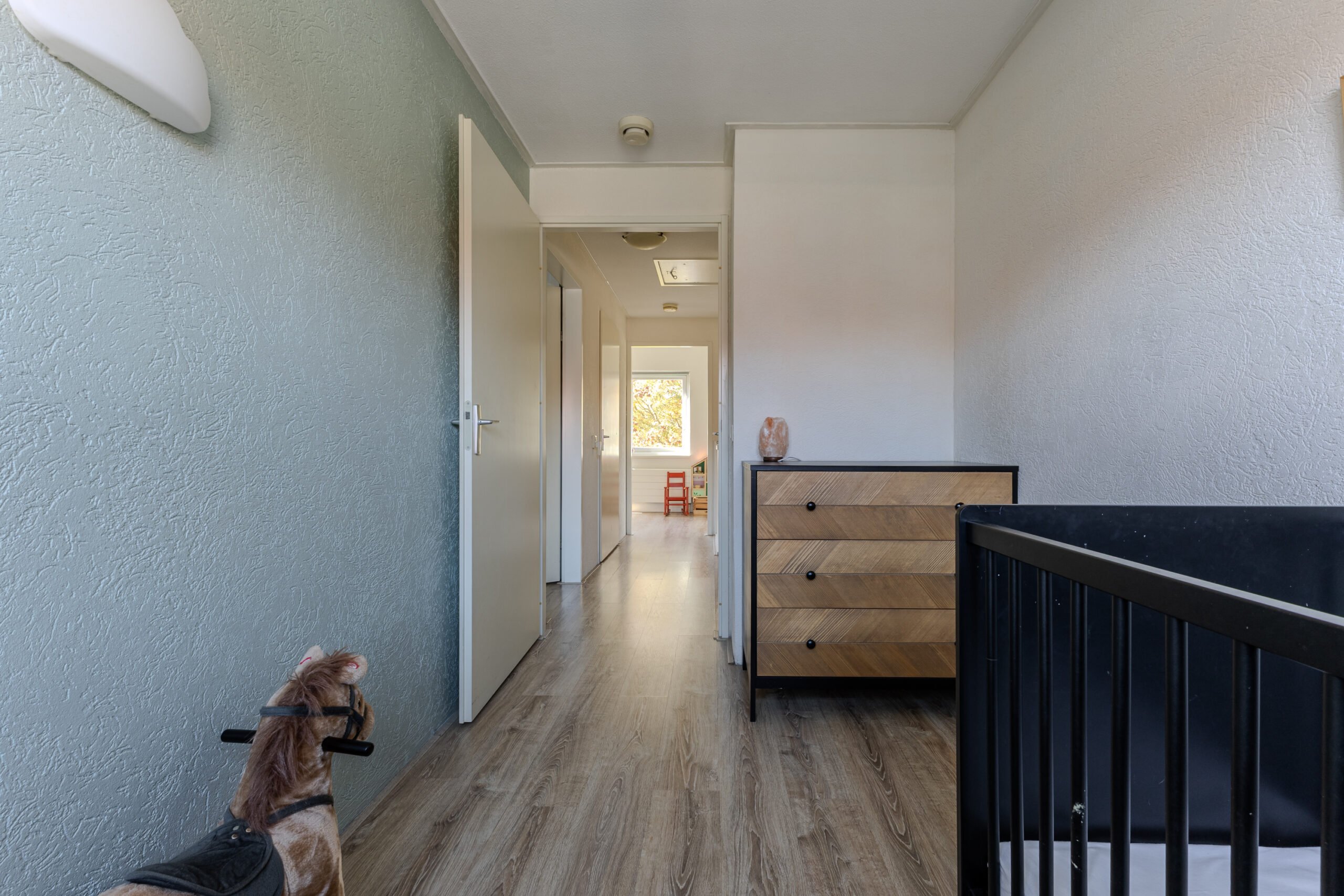 De vliering geeft toegang tot veel bergruimte.