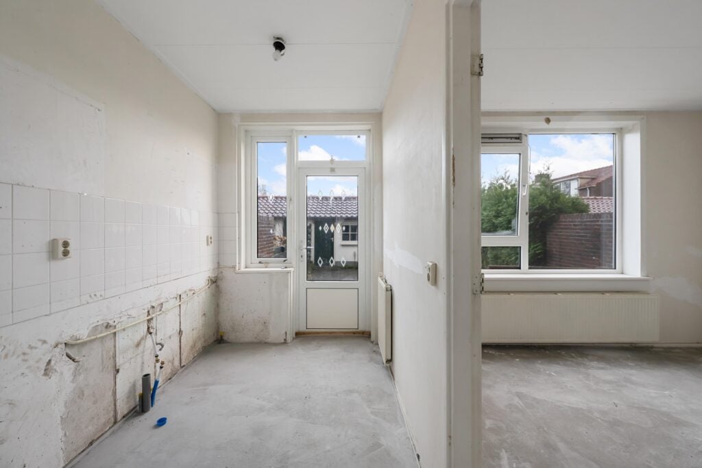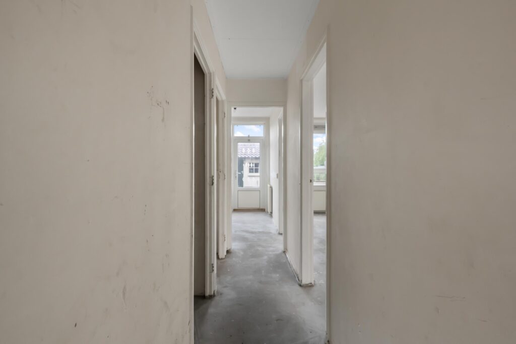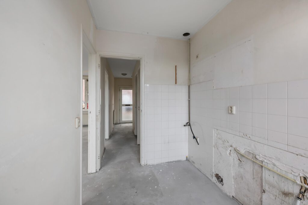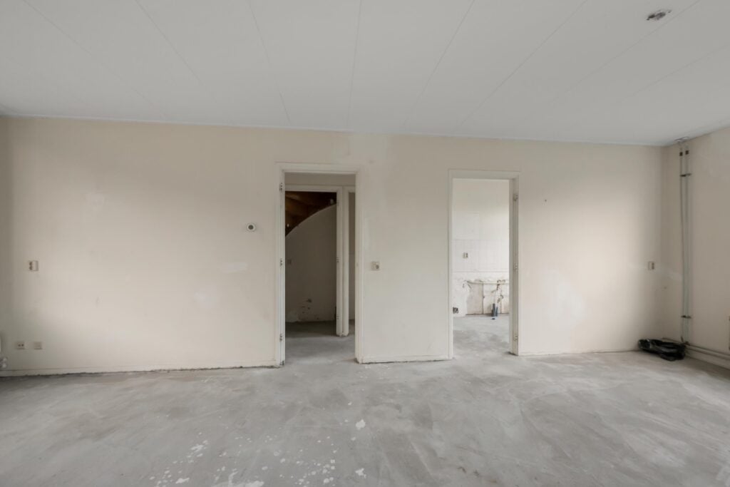 Laten we binnen een kijkje nemen. Via de hal betreden we de woning en komen we in de ruime doorzonwoonkamer. Dankzij de raampartijen aan zowel de voor- als achterzijde geniet deze ruimte van een prettige lichtinval gedurende de hele dag. De woonkamer vormt een fijne basis die geheel naar eigen wens is in te richten: van moderne leefruimte tot een warme, sfeervolle zithoek. Aan de achterzijde bevindt zich de keuken, die volledig naar eigen smaak te plaatsen is. Juist dit biedt een mooie kans om hier een keuken te realiseren die volledig aansluit bij jouw woonwensen — van strak en modern tot landelijk of industrieel.