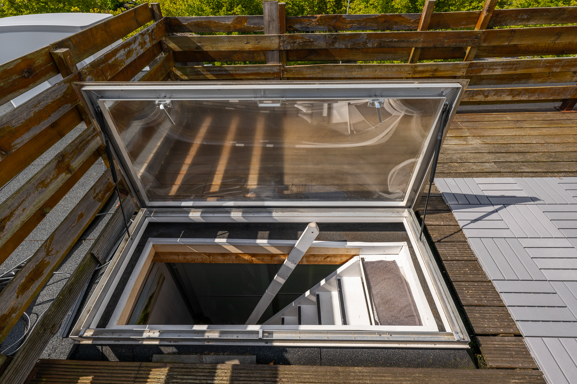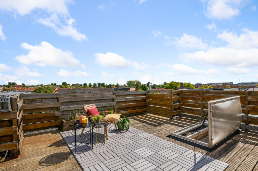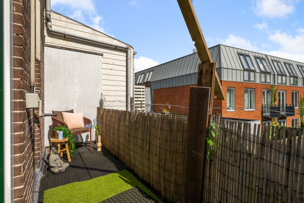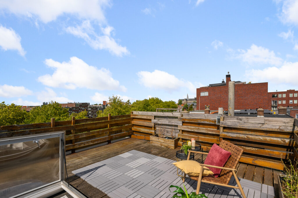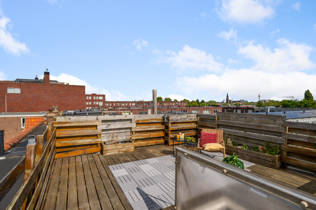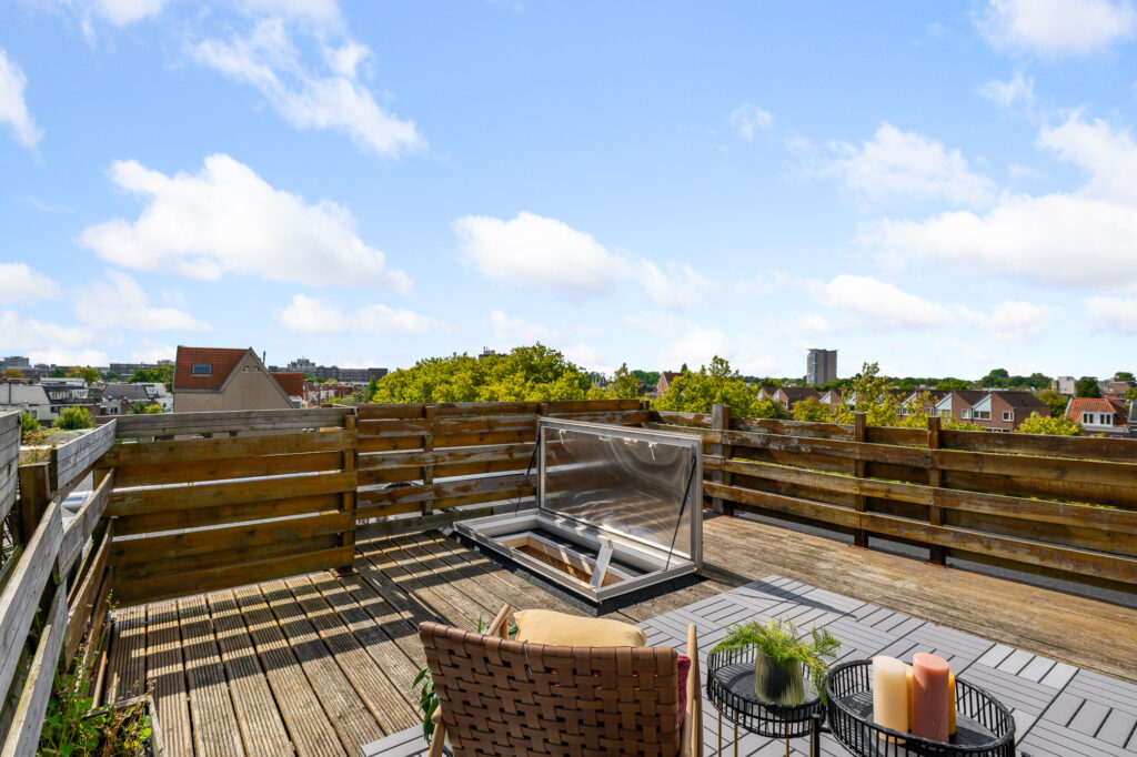 Het dakterras is de showstopper: volop zon en een wijds uitzicht over de stad en het Spaarne.