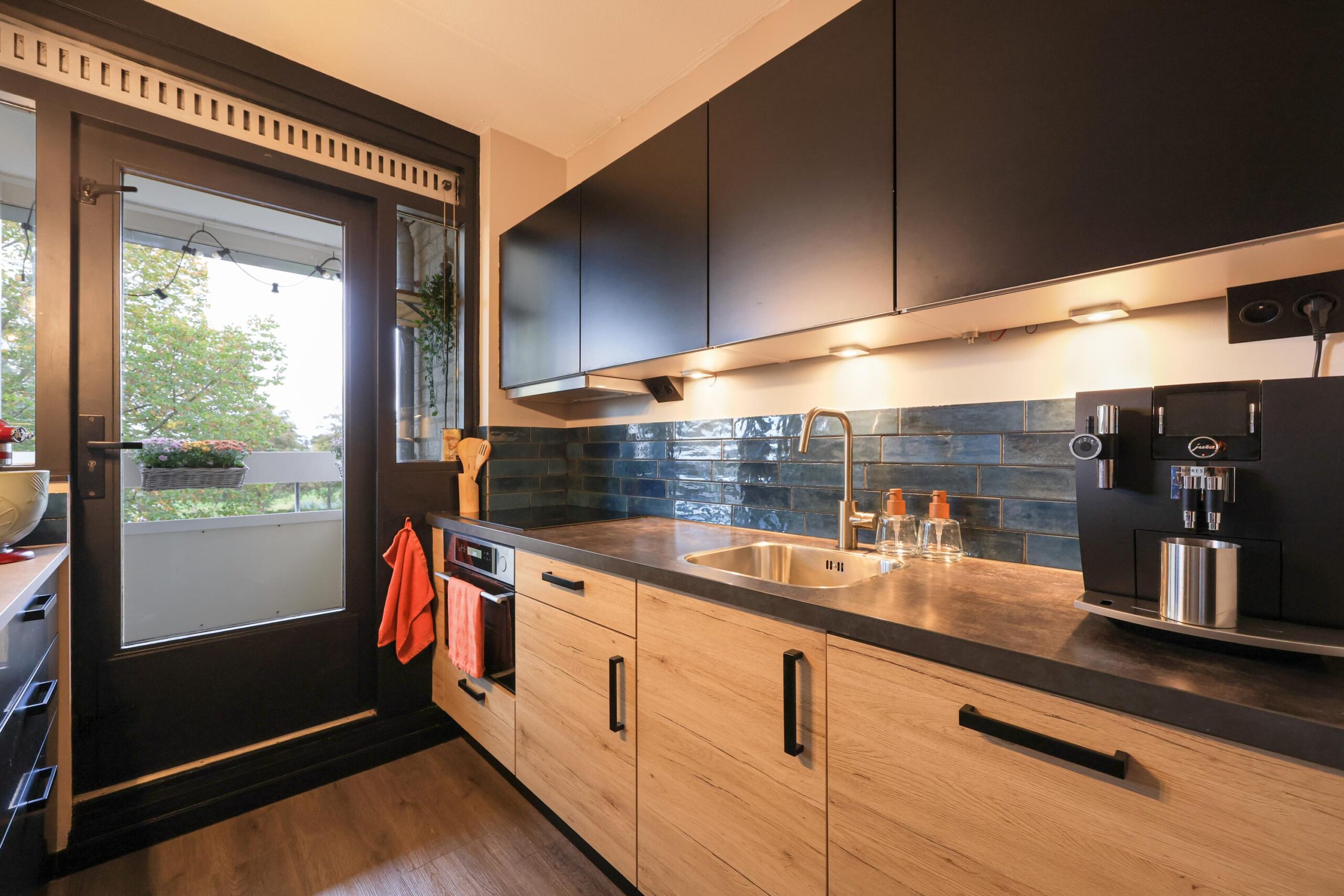 Het appartement ligt op de tweede verdieping en is door de vorige eigenaar nagenoeg geheel gemoderniseerd. De wanden zijn strak gestuukt, de badkamer is vernieuwd, het leidingwerk van cv en elektra is vervangen, er zijn nieuwe houten binnendeurkozijnen en -deuren geplaatst, en het geheel is voorzien van een prachtige pvc-vloer. De ruime en lichte woonkamer vormt samen met de open keuken het hart van de woning. De keuken is voorzien van inbouwapparatuur en sluit perfect aan op de gezellige leefruimte, en is betegeld door de huidige eigenaar. Daarnaast is er een goed bemeten slaapkamer, voorzien van een mooie houten lattenwand (ook geplaatst door de huidige eigenaar), een praktische was- en bergruimte en een moderne, smaakvol afgewerkte badkamer.