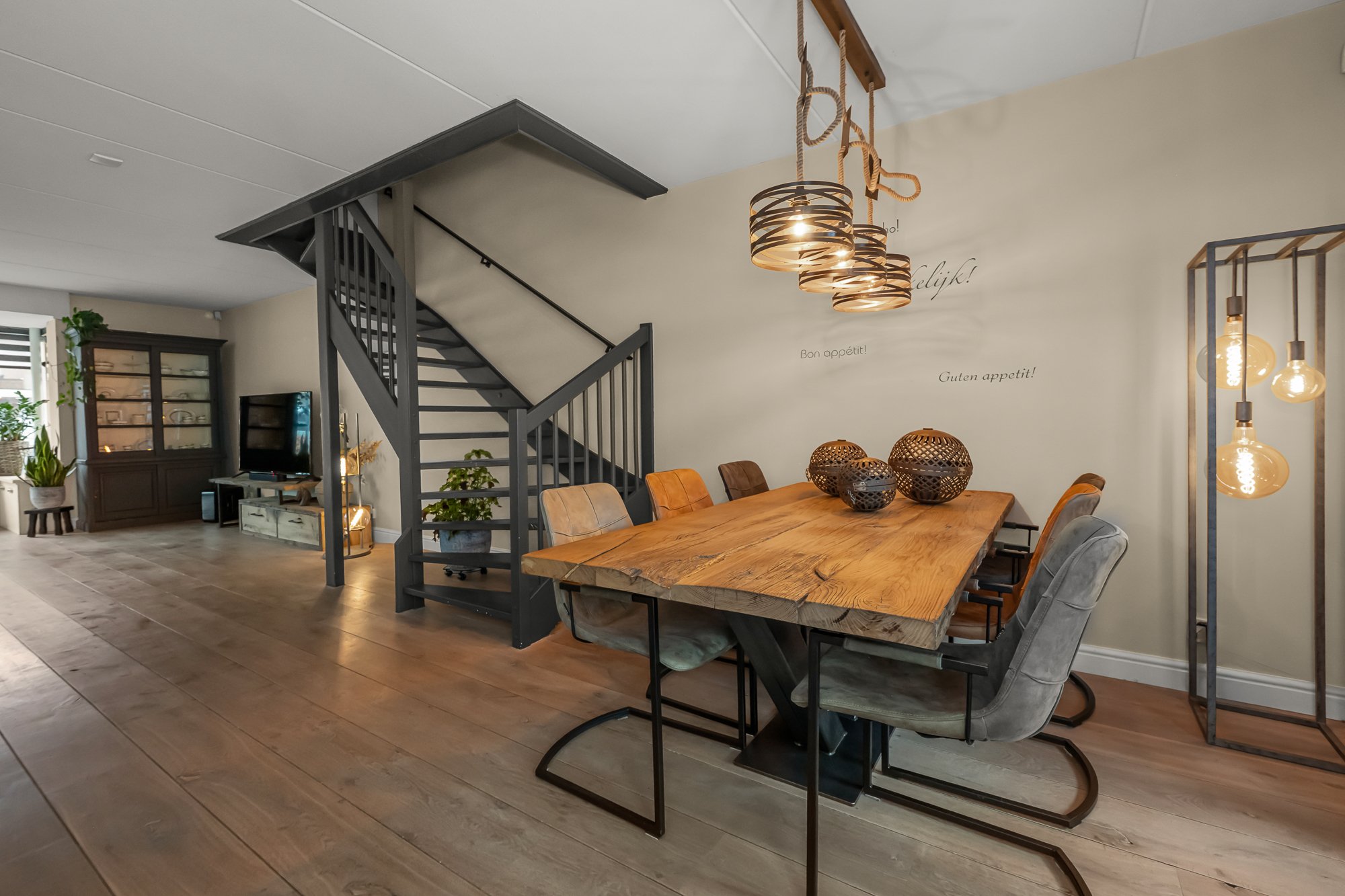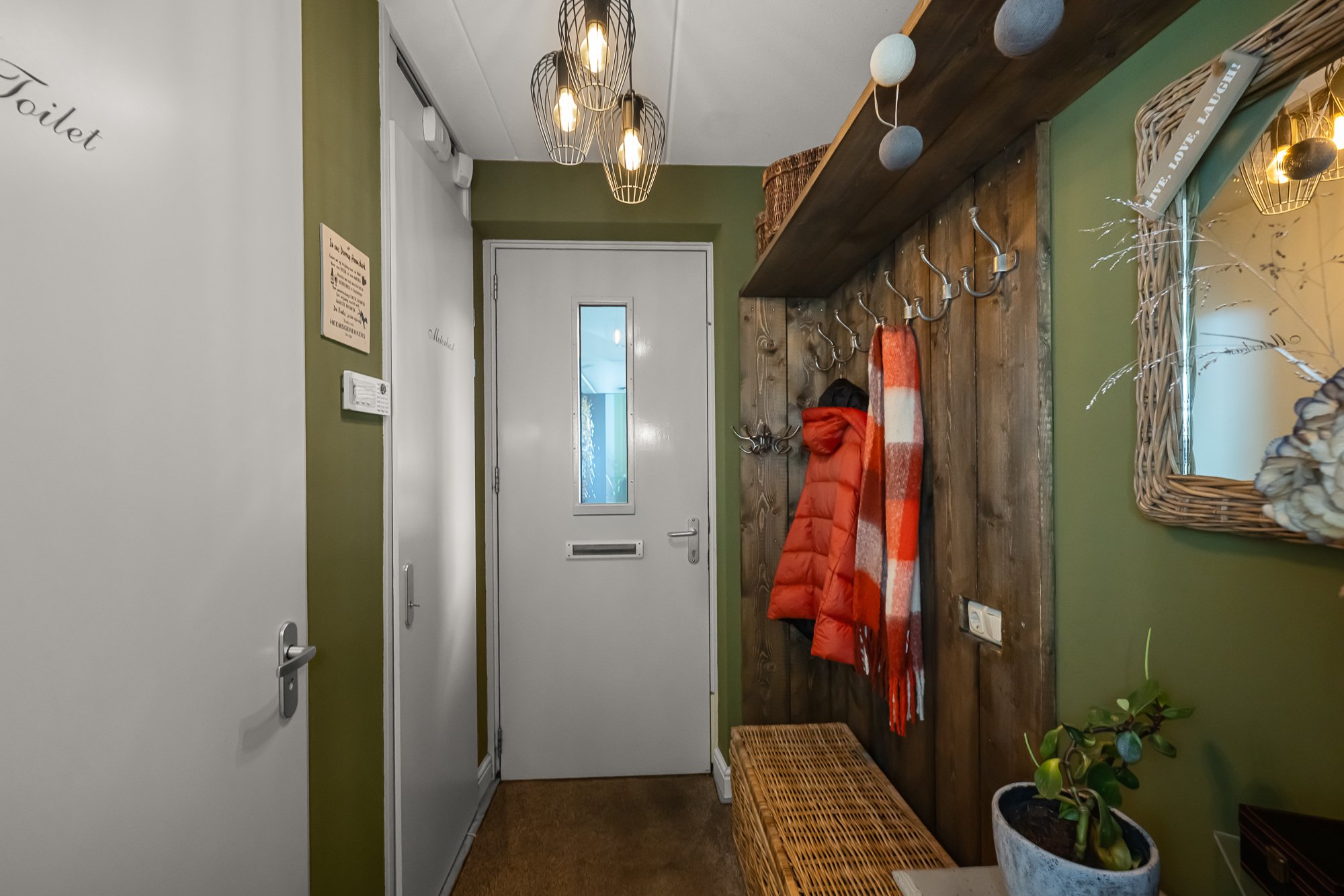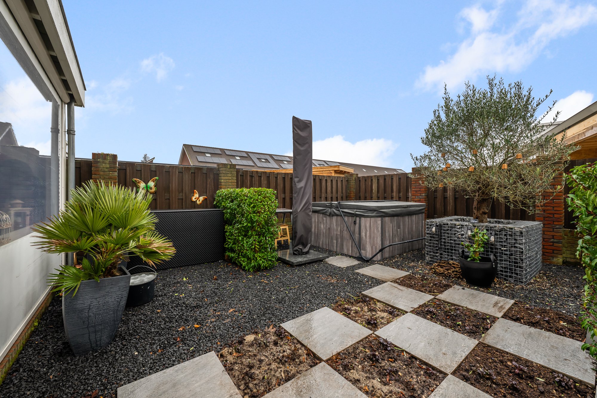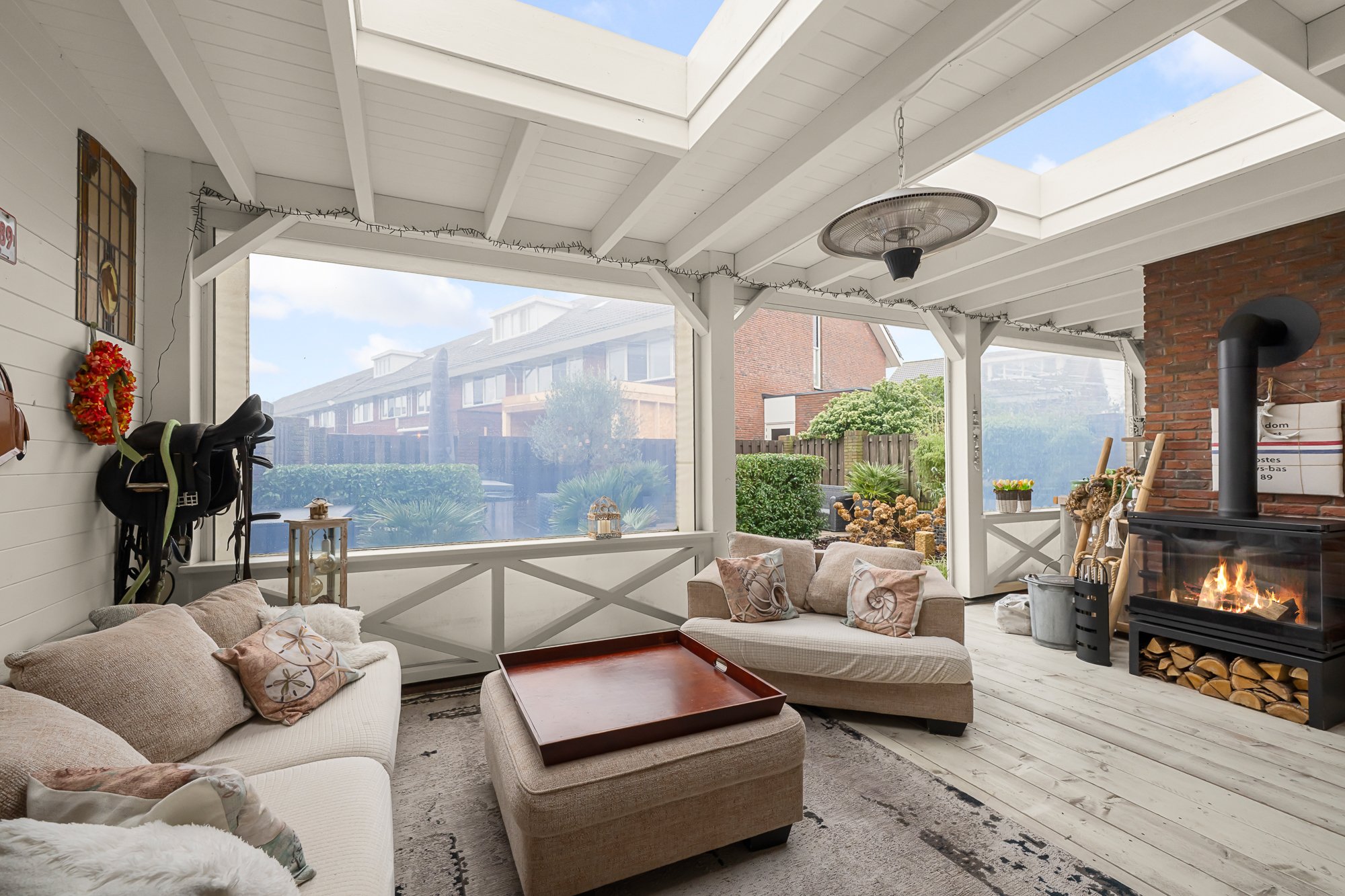 Aan de achterzijde is de woning in 2015 uitgebreid met een prachtige veranda. Deze overdekte buitenruimte voelt als een verlengstuk van de woonkamer en is voorzien van een houtkachel, waardoor je hier in alle seizoenen comfortabel kunt zitten. Dankzij de grote raampartijen en schuifdeuren is er een mooie verbinding met de tuin. De achtertuin is verzorgd aangelegd en biedt veel privacy. Er zijn meerdere zitplekken gecreëerd, waardoor je op elk moment van de dag een fijne plek kunt kiezen.