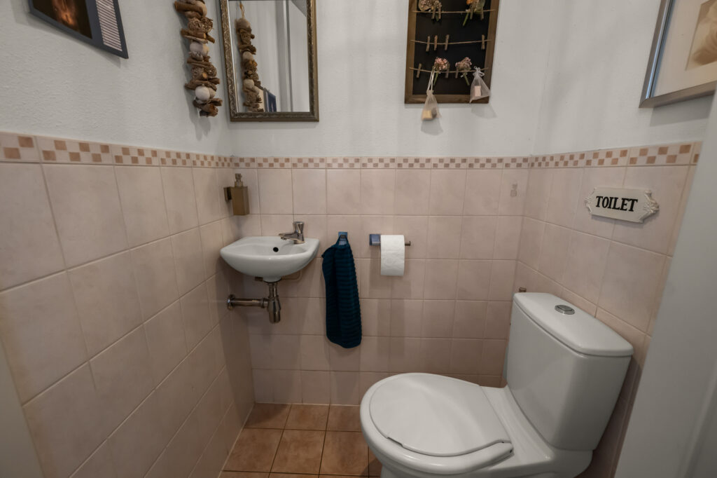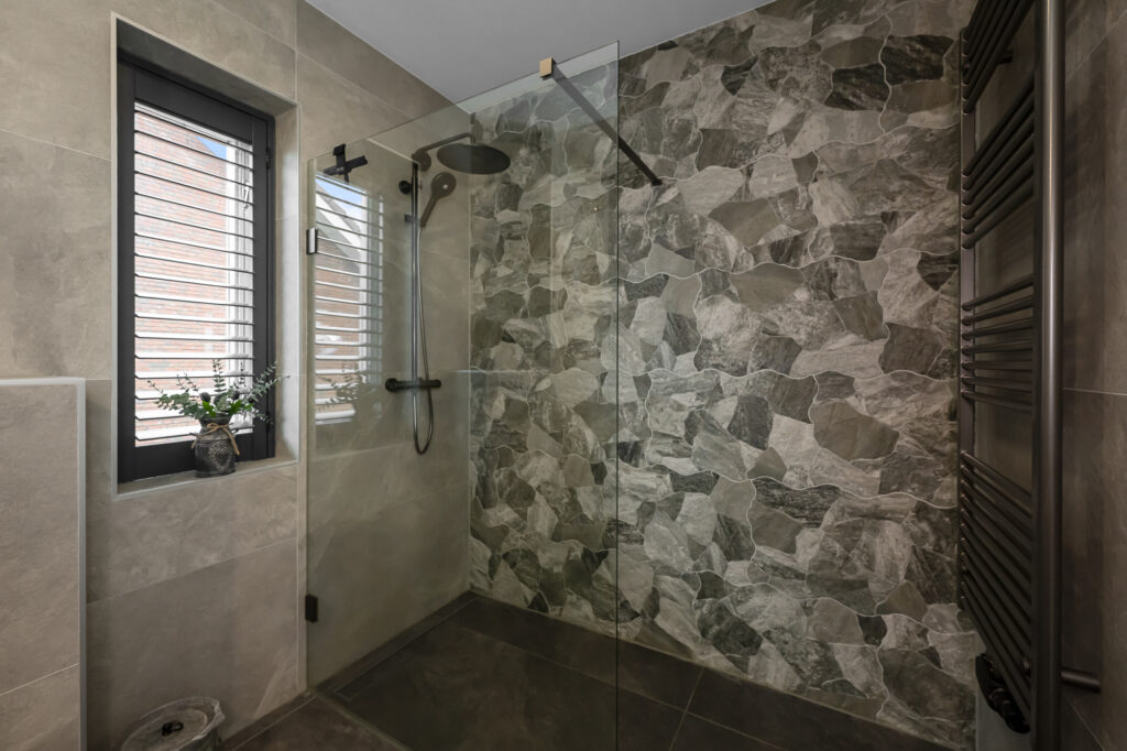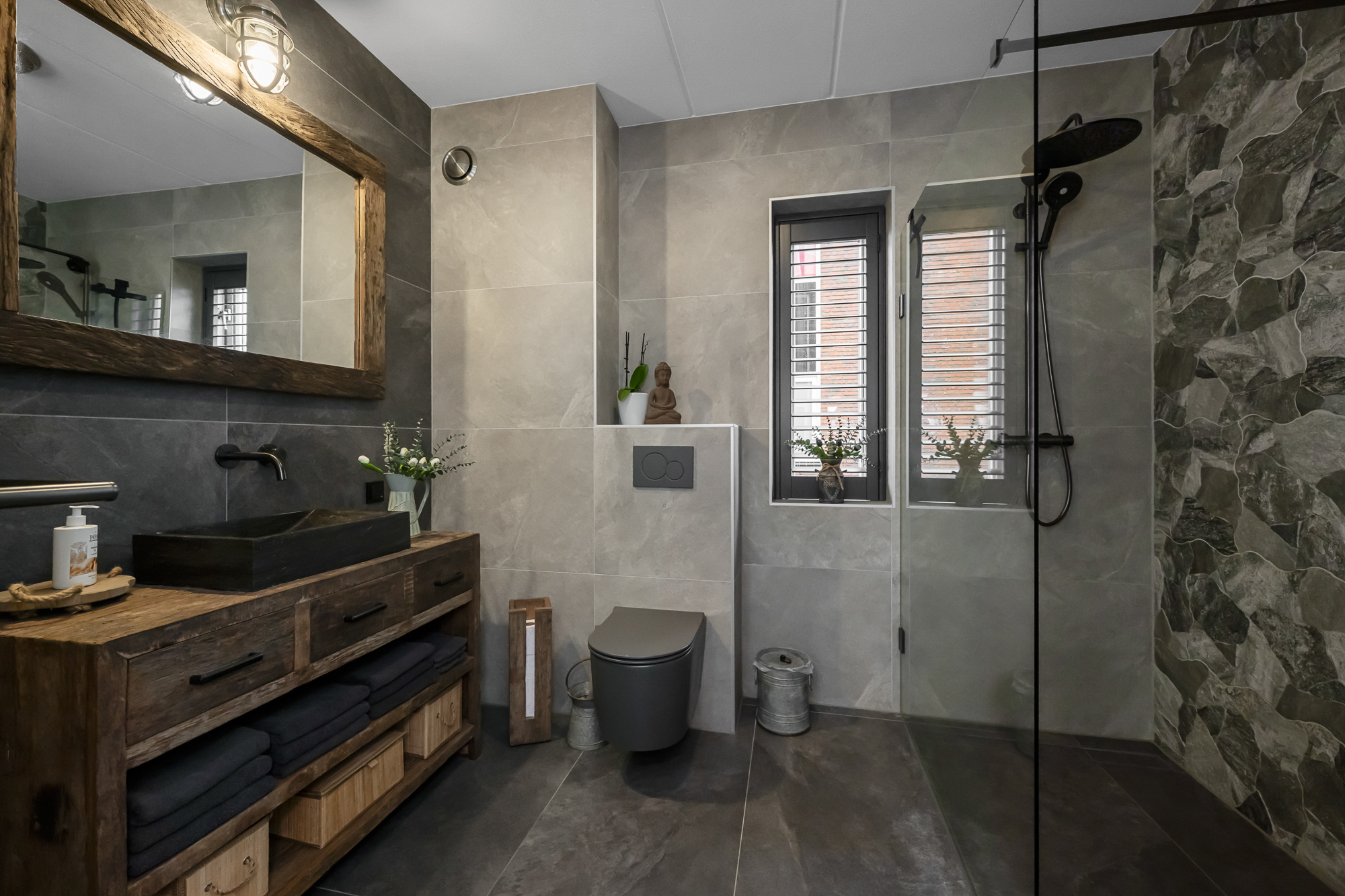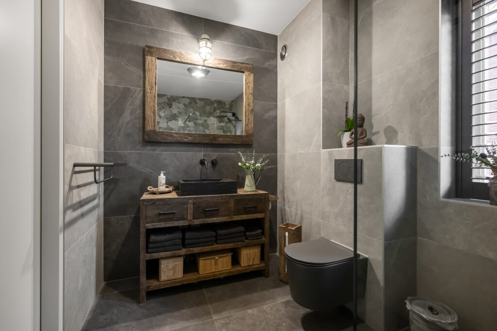 De badkamer is in januari 2024 volledig vernieuwd en uitgevoerd in een moderne, luxe stijl. Je vindt hier een ruime inloopdouche, een stijlvol wastafelmeubel en een tweede toilet.