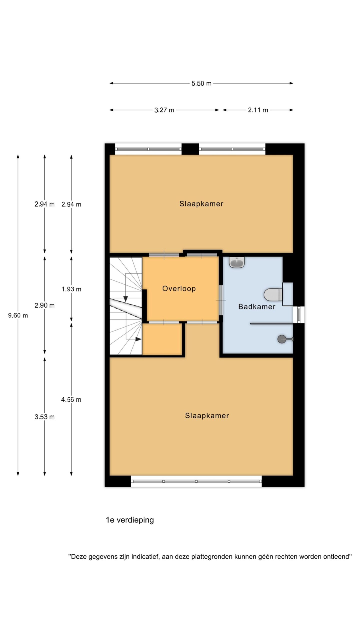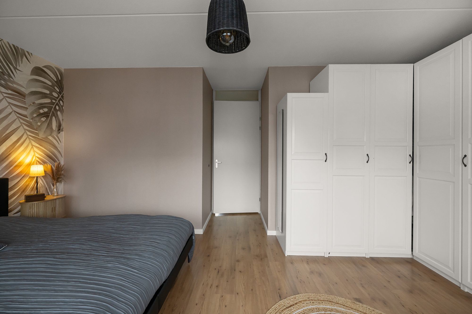 Op de eerste verdieping bevinden zich momenteel twee goed bemeten slaapkamers. De hoofdslaapkamer is ruim en rustig gelegen en biedt voldoende plaats voor een grote kledingkast. Met een kleine aanpassing kan de slaapkamer aan achtergevel weer opgedeeld worden naar twee ruime slaapkamers.