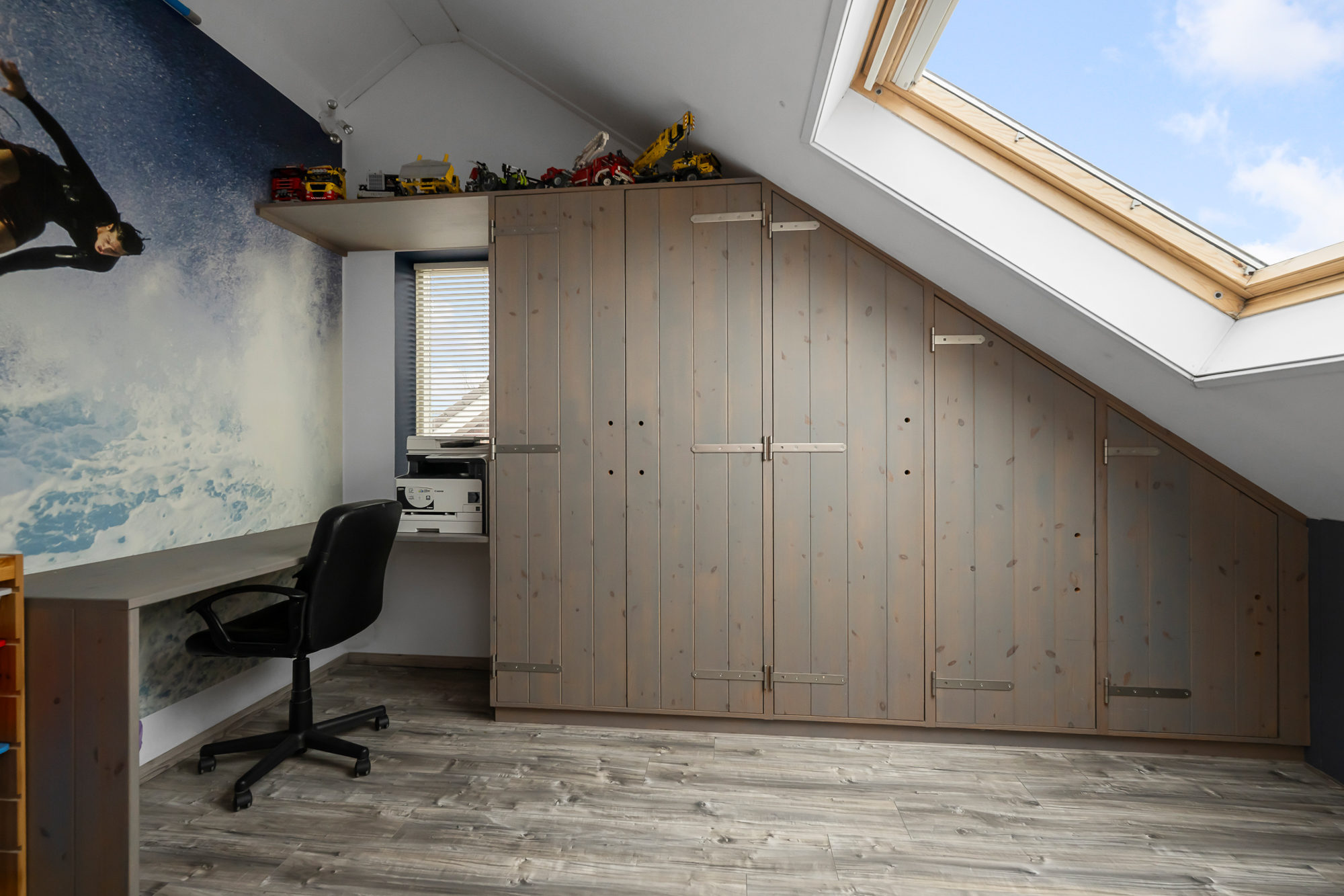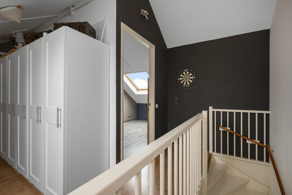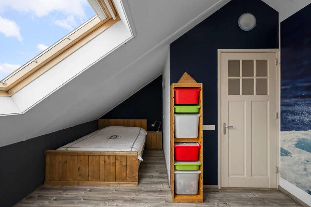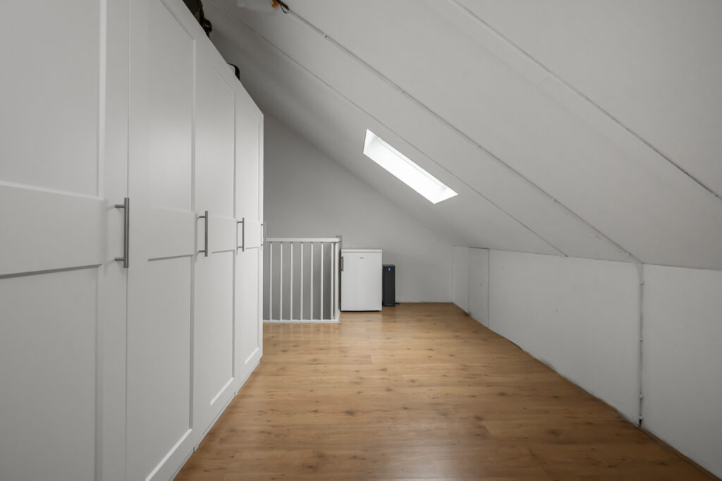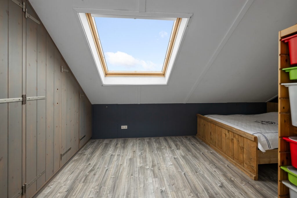 Via een vaste trap bereik je de volwaardige tweede verdieping. Deze verrassend ruime verdieping is multifunctioneel en dankzij de dakramen heerlijk licht. Ook op deze verdieping is nog een riante slaapkamer aanwezig, volop bergruimte en ruimte voor wasmachine en droger.