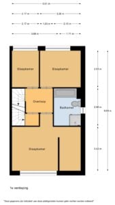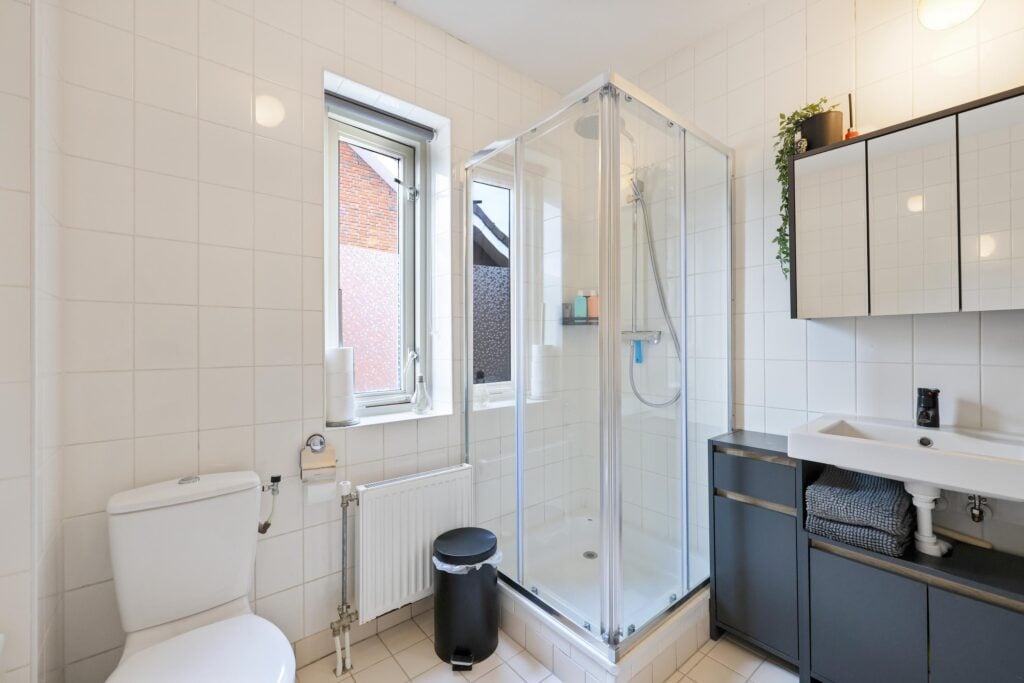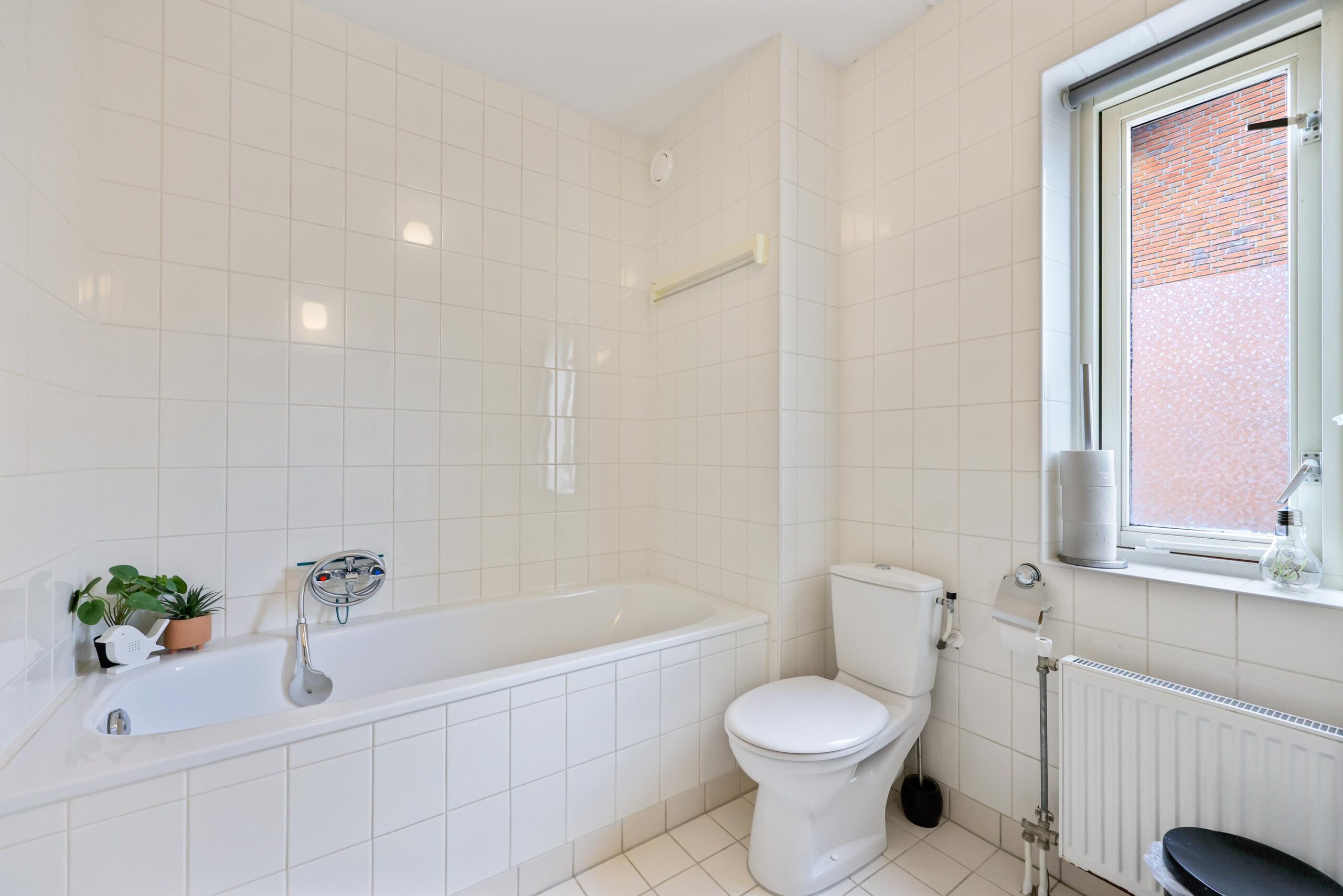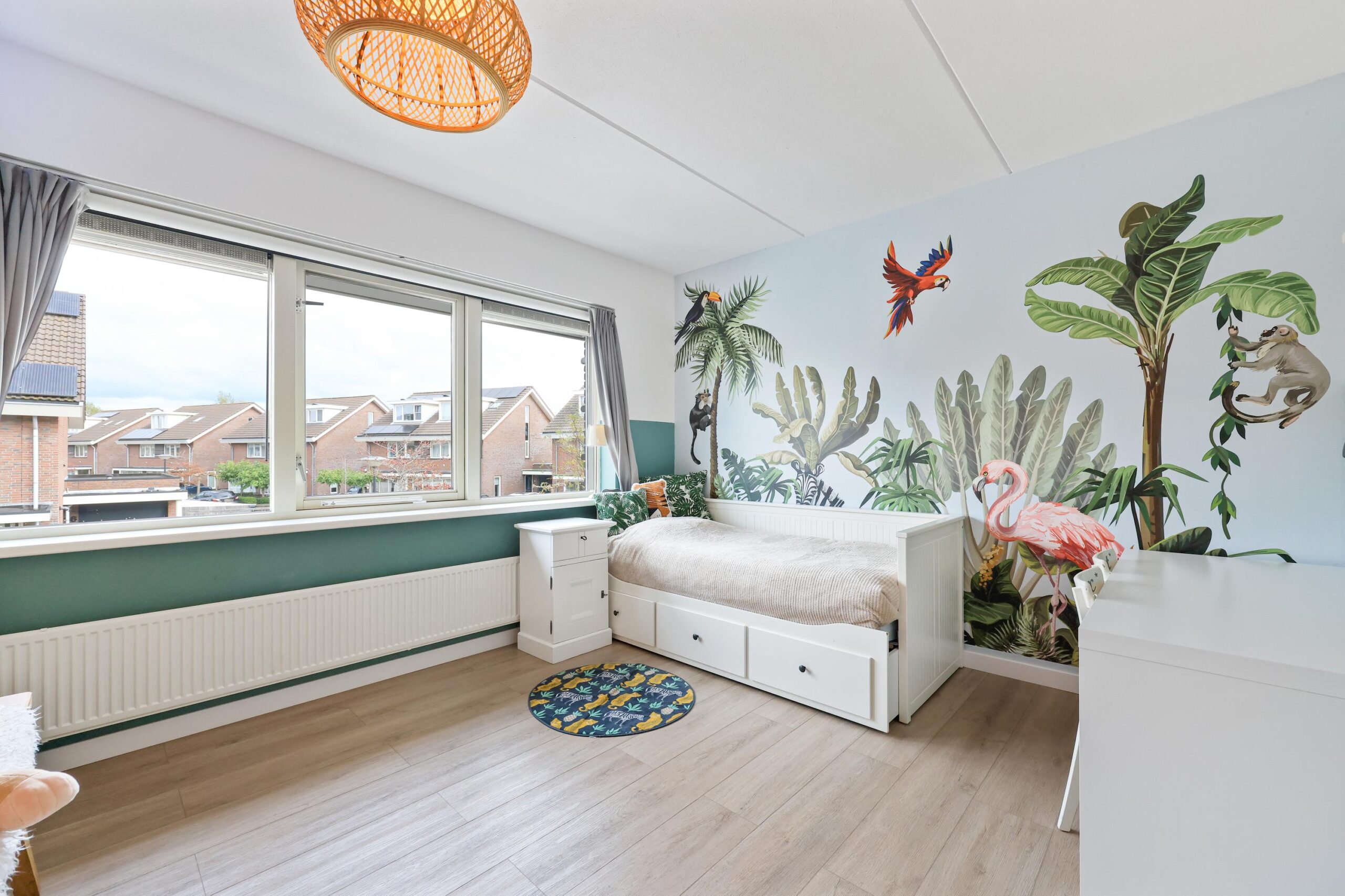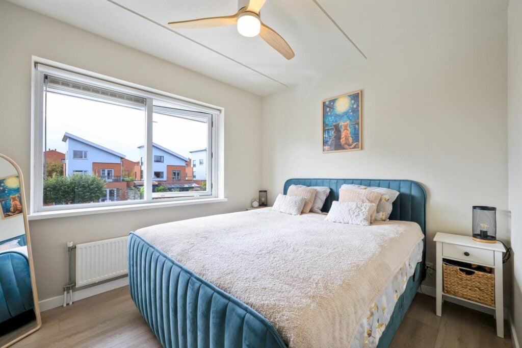 De overloop leidt naar drie ruime slaapkamers, stuk voor stuk met een eigen sfeer. De ouderslaapkamer ligt aan de voorzijde en biedt een vrij uitzicht over de wijk. De badkamer is ruim en uitgevoerd met ligbad, douche, wastafelmeubel en tweede toilet.