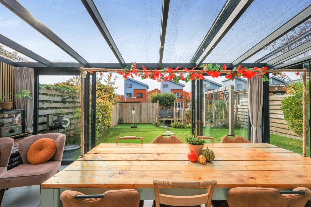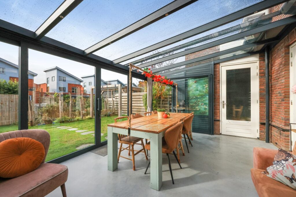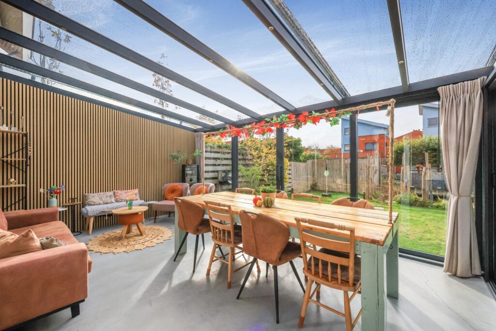 • Serre (2023) met glazen schuifwanden en zonnescherm