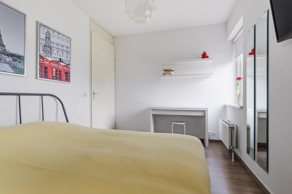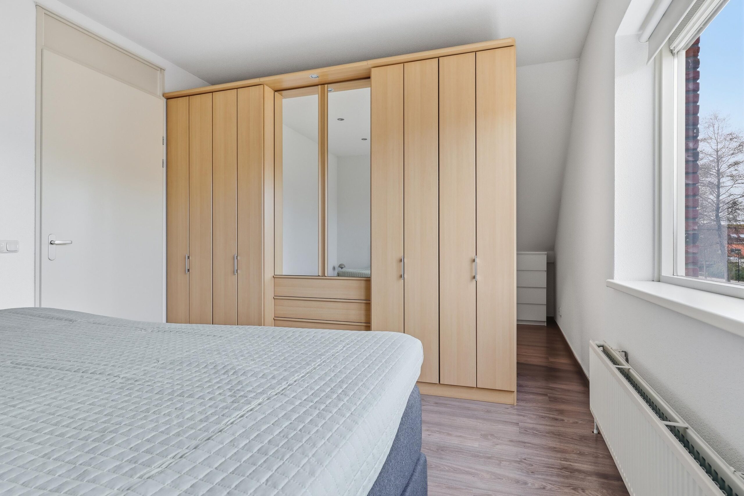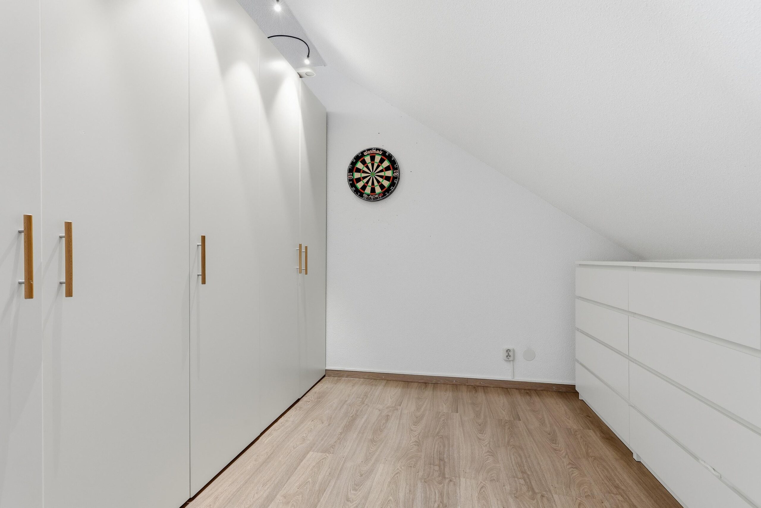 Op de tweede verdieping treft u een extra slaapkamer, aangevuld met een overloop waar ruimte is voor een werkplek. Deze verdieping biedt extra flexibiliteit, bijvoorbeeld als extra/of logeerkamer of een studeerruimte.