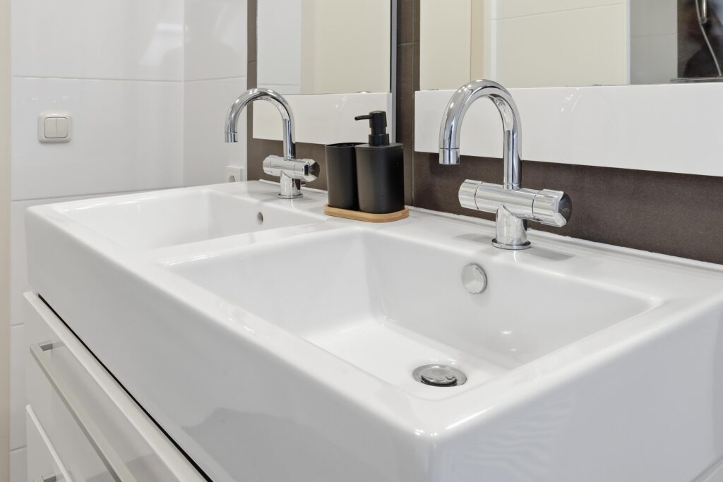 – Moderne grote badkamer voorzien van dubbel wastafelmeubel, douche en 2e toilet