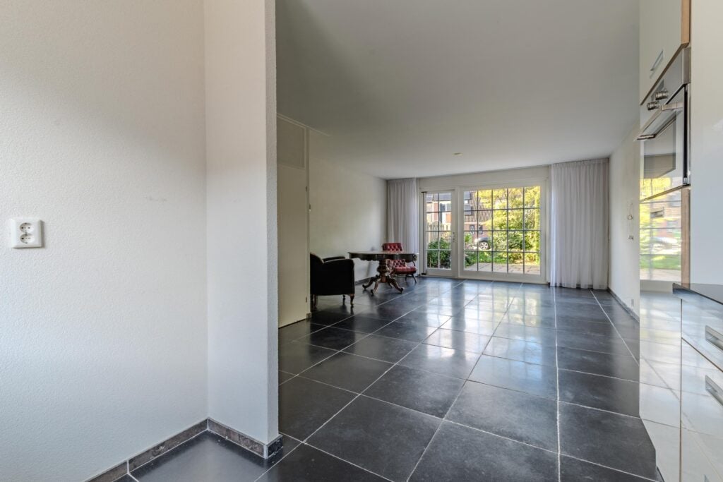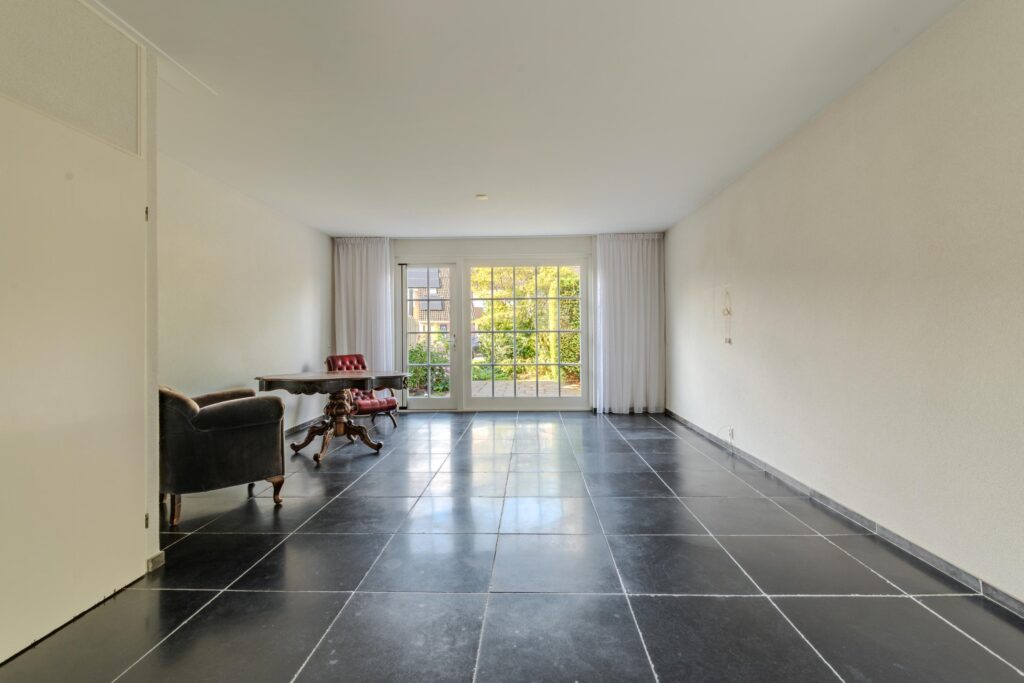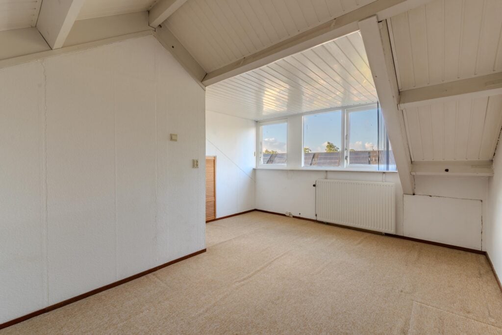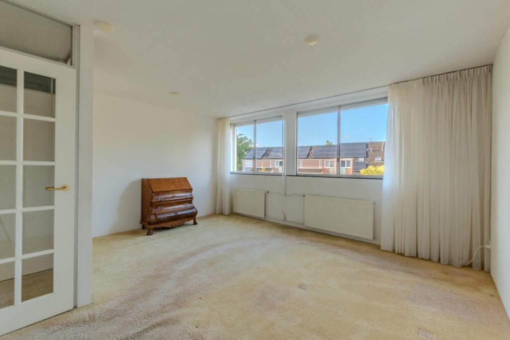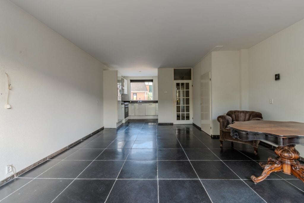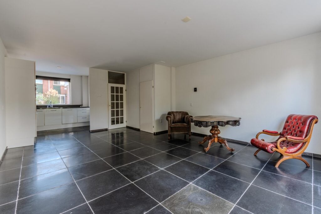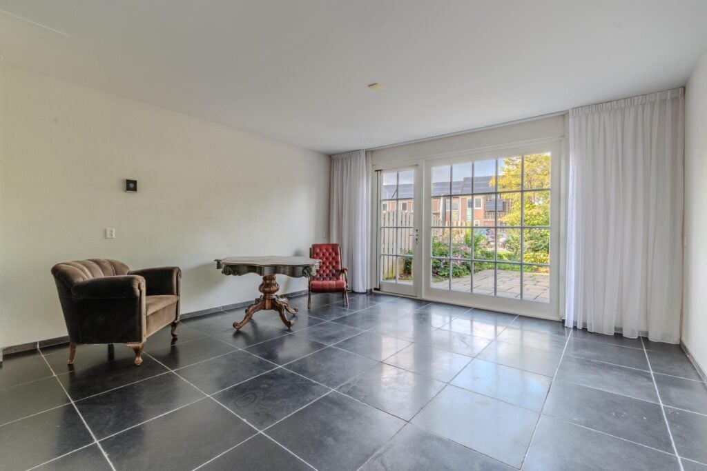 Bij binnenkomst stap je de woonkamer binnen, waar de grote raampartijen aan de achterzijde van de woning zorgen voor veel lichtinval. In de woonkamer is er genoeg plek voor een royale zithoek én een eettafel. Aan de voorzijde ligt de keuken met uitzicht op het pleintje. Deze ruimte is functioneel, maar biedt vooral veel potentie: van een moderne keuken met kookeiland tot een open verbinding met de woonkamer – de keuzes zijn aan jou.