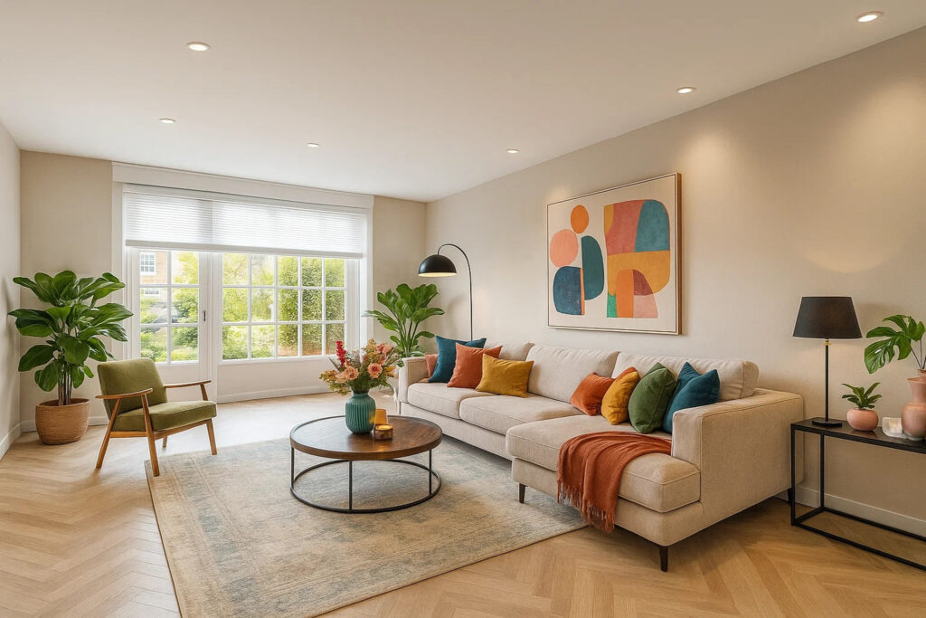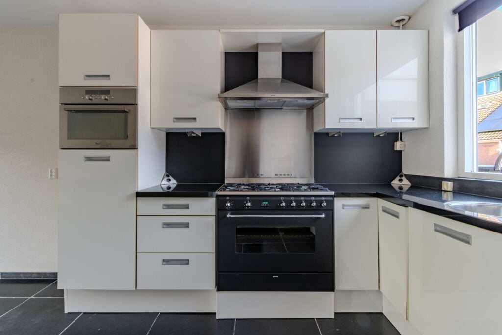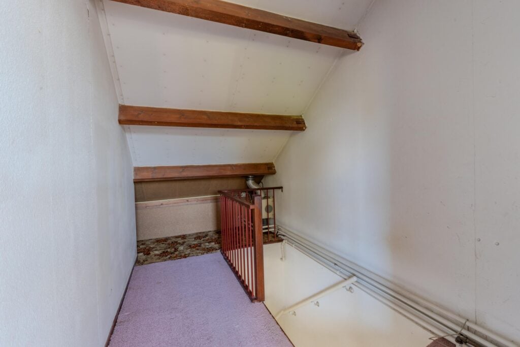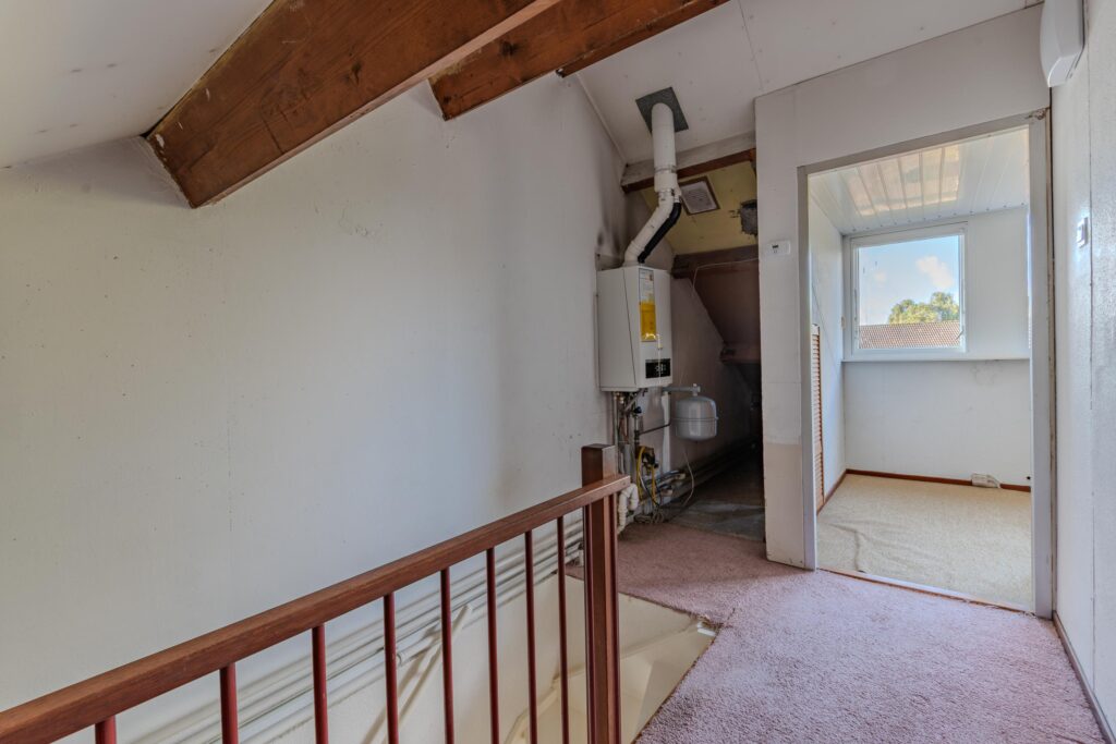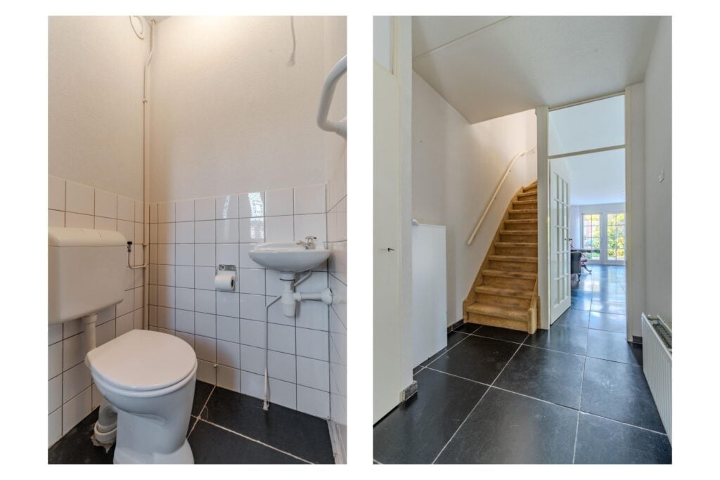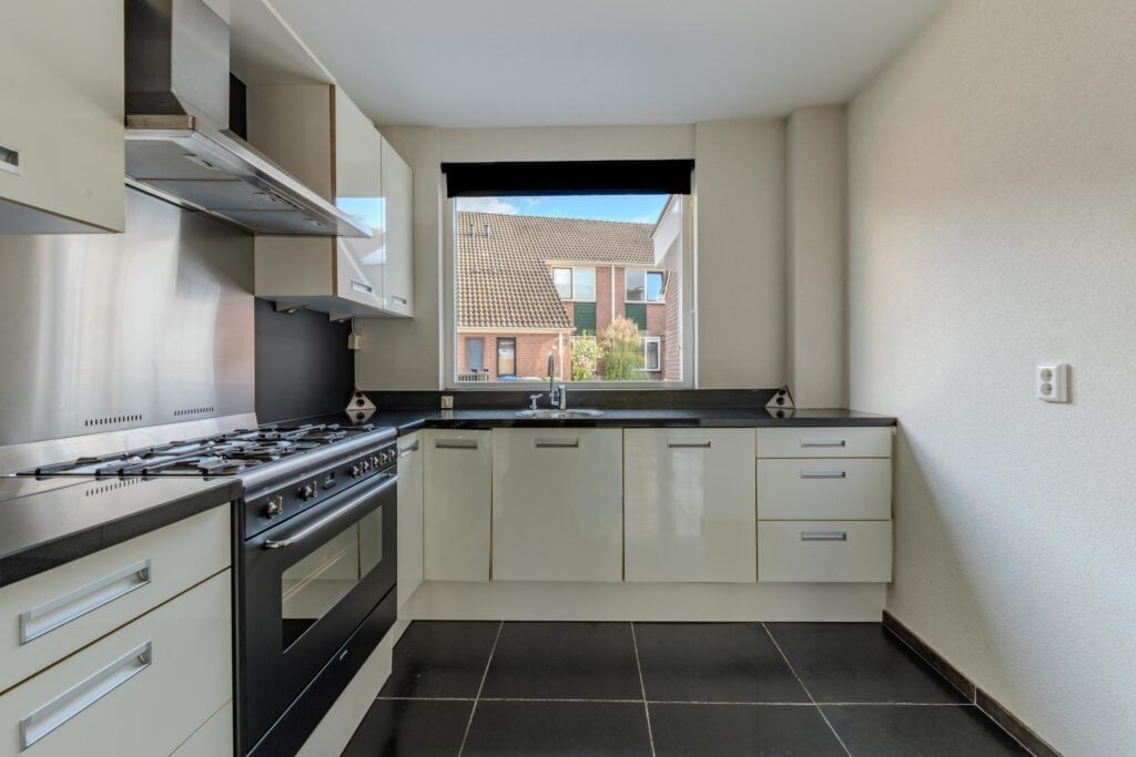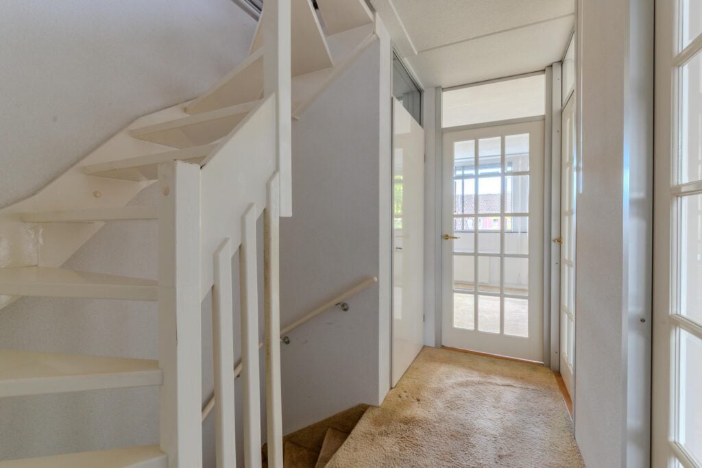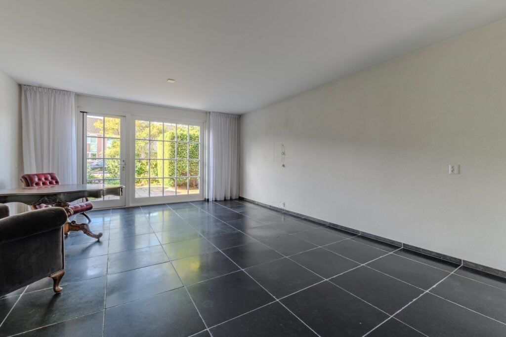 Bij binnenkomst stap je de woonkamer binnen, waar de grote raampartijen aan de achterzijde van de woning zorgen voor veel lichtinval. In de woonkamer is er genoeg plek voor een royale zithoek én een eettafel. Aan de voorzijde ligt de keuken met uitzicht op het pleintje. Deze ruimte is functioneel, maar biedt vooral veel potentie: van een moderne keuken met kookeiland tot een open verbinding met de woonkamer – de keuzes zijn aan jou.