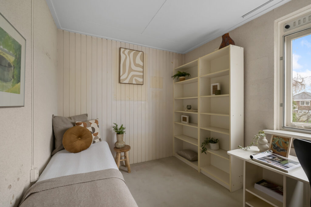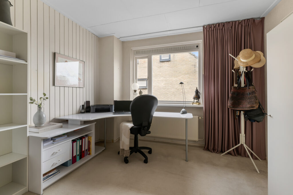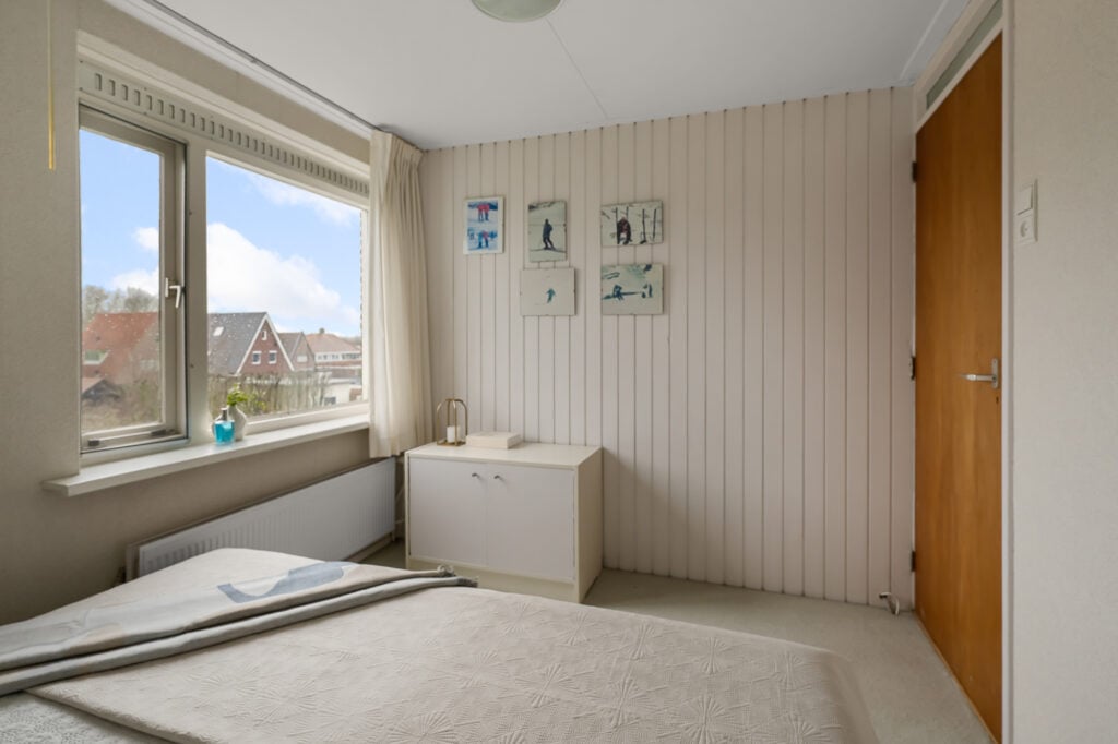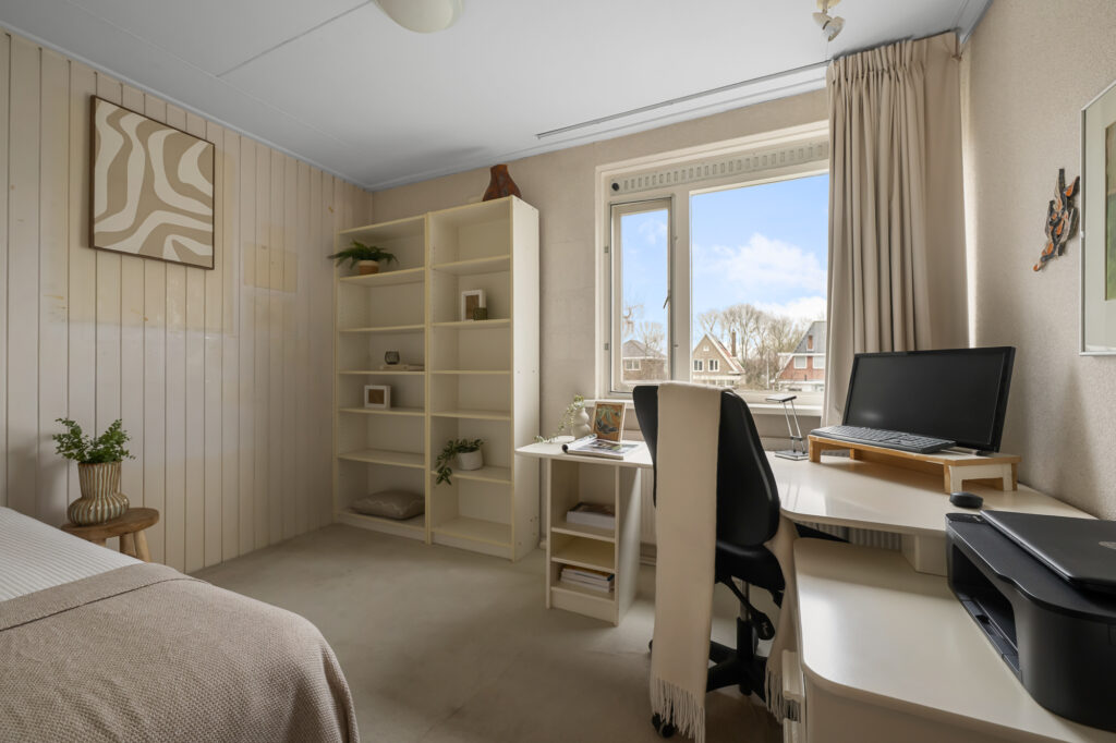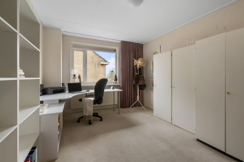 Deze woning is gebouwd in 1969 en heeft een praktische indeling met in totaal zes kamers. De woonkamer is ruim opgezet en biedt een prettige leefruimte met veel lichtinval. De gesloten keuken is gelegen aan de achterzijde en zou door het maken van een doorgang verbonden kunnen worden met de woonkamer indien gewenst.