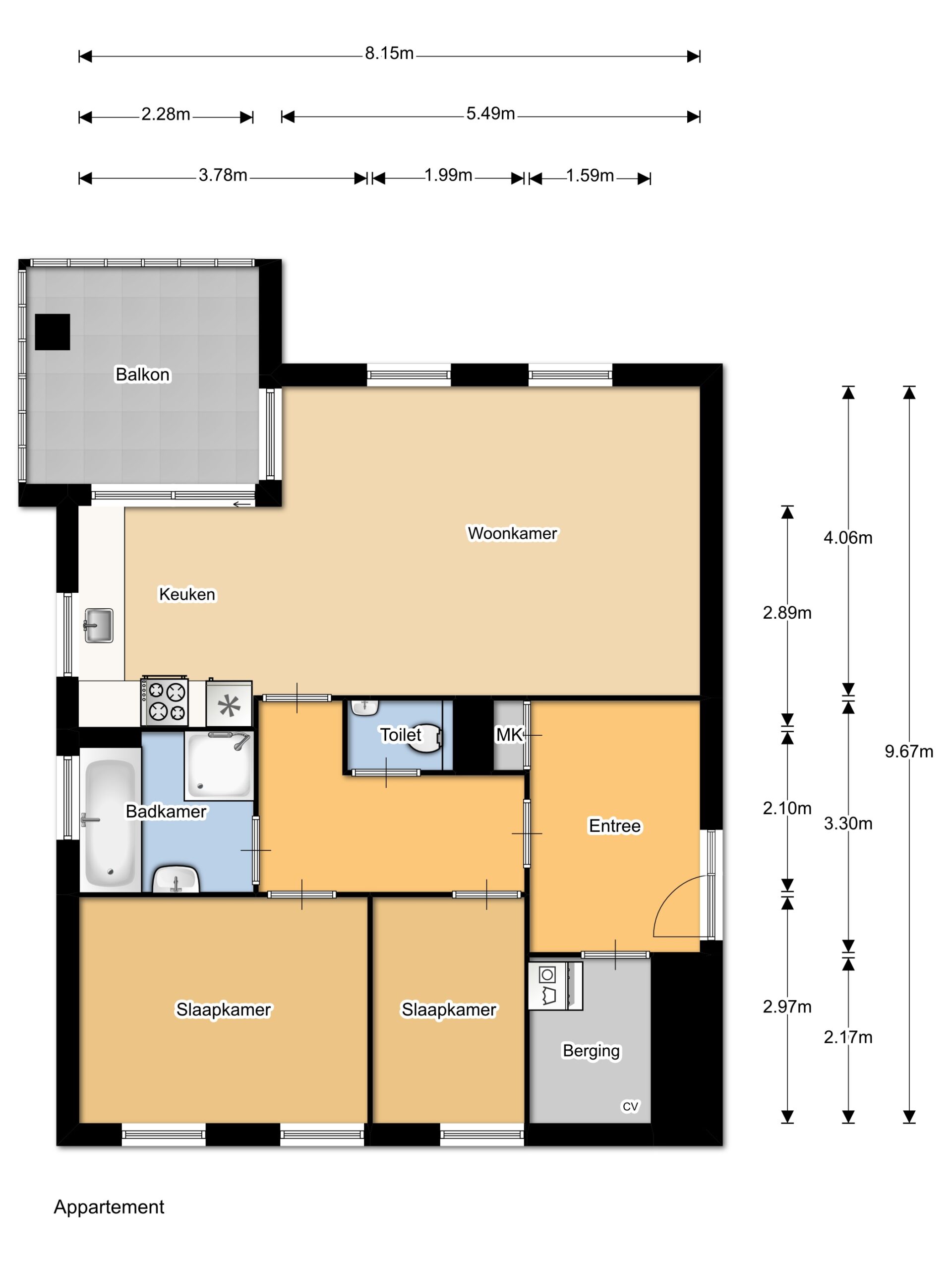– Ruim 3-kamerhoekappartement met veel lichtinval;