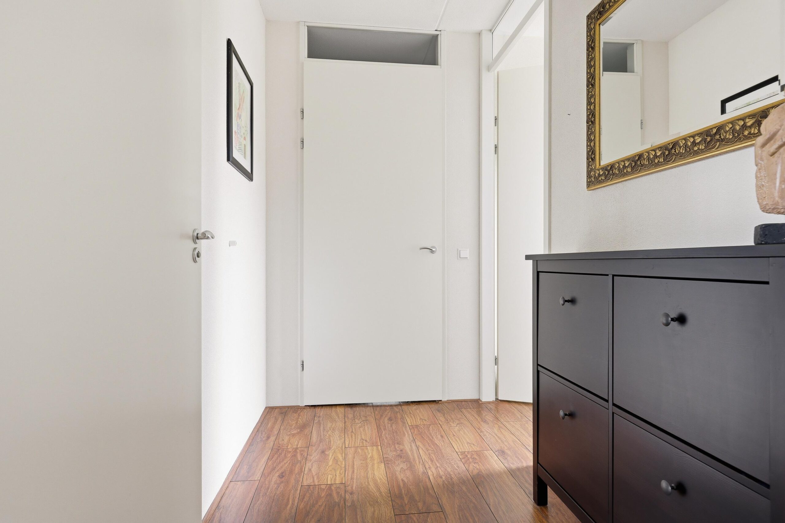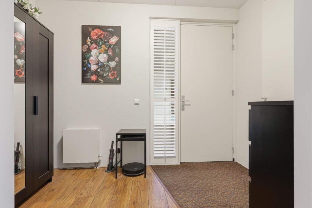 Via de nette, afgesloten entree met lift bereik je het appartement op de tweede woonlaag. Bij binnenkomst valt direct de verzorgde afwerking op, met een doorlopende laminaatvloer en lichte wanden die zorgen voor een frisse en moderne uitstraling. De hal geeft toegang tot alle vertrekken.
