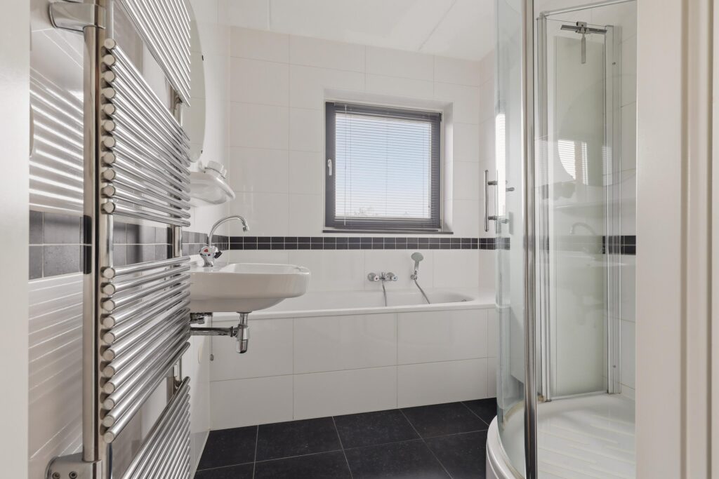Het appartement beschikt over twee goed bemeten slaapkamers, beide netjes afgewerkt en voorzien van prettige lichtinval. De badkamer is ruim en neutraal uitgevoerd en beschikt over een ligbad, douche, wastafel en een handdoekenradiator, aangevuld met comfortabele vloerverwarming. Daarnaast is er een separaat toilet en een praktische was- en stookruimte aanwezig.