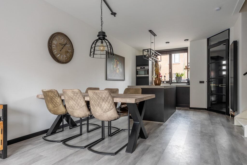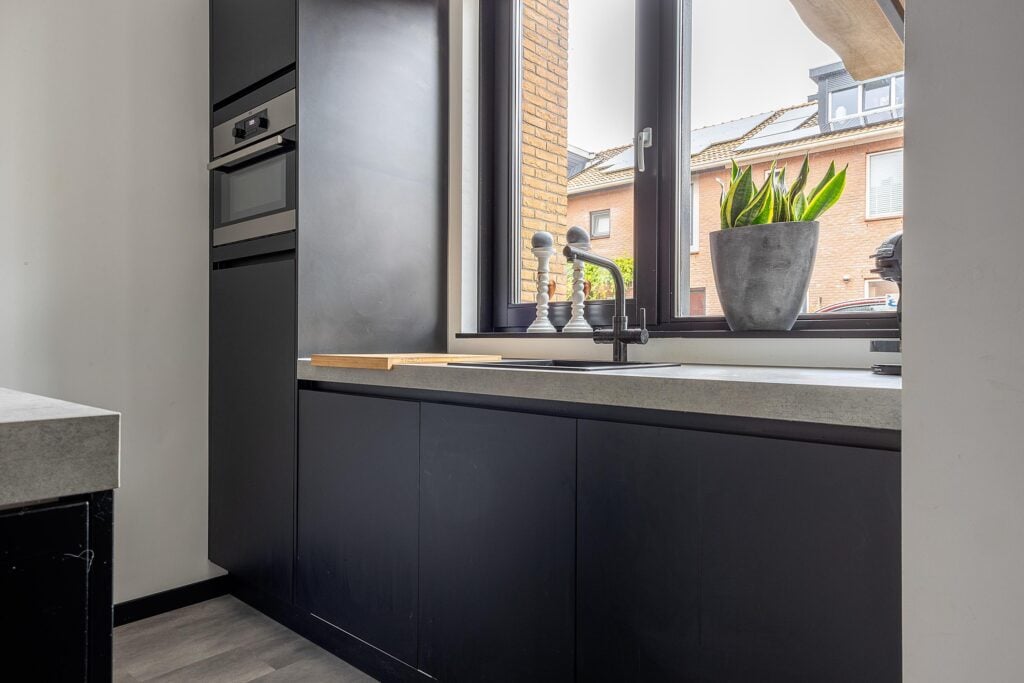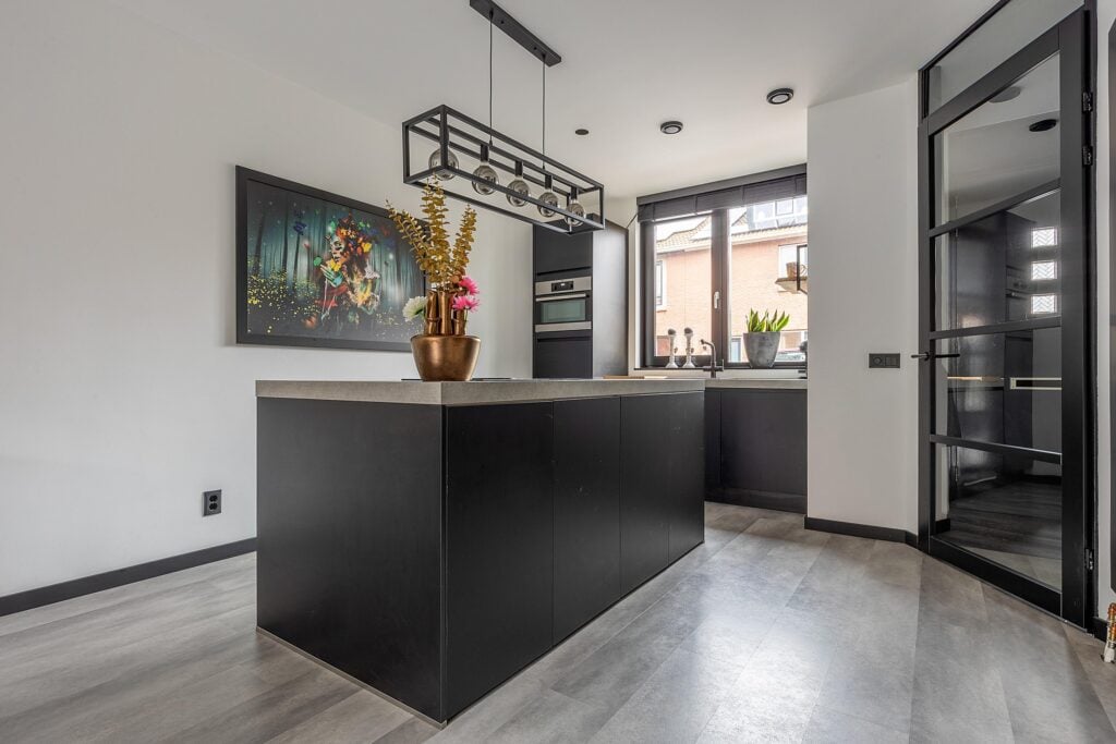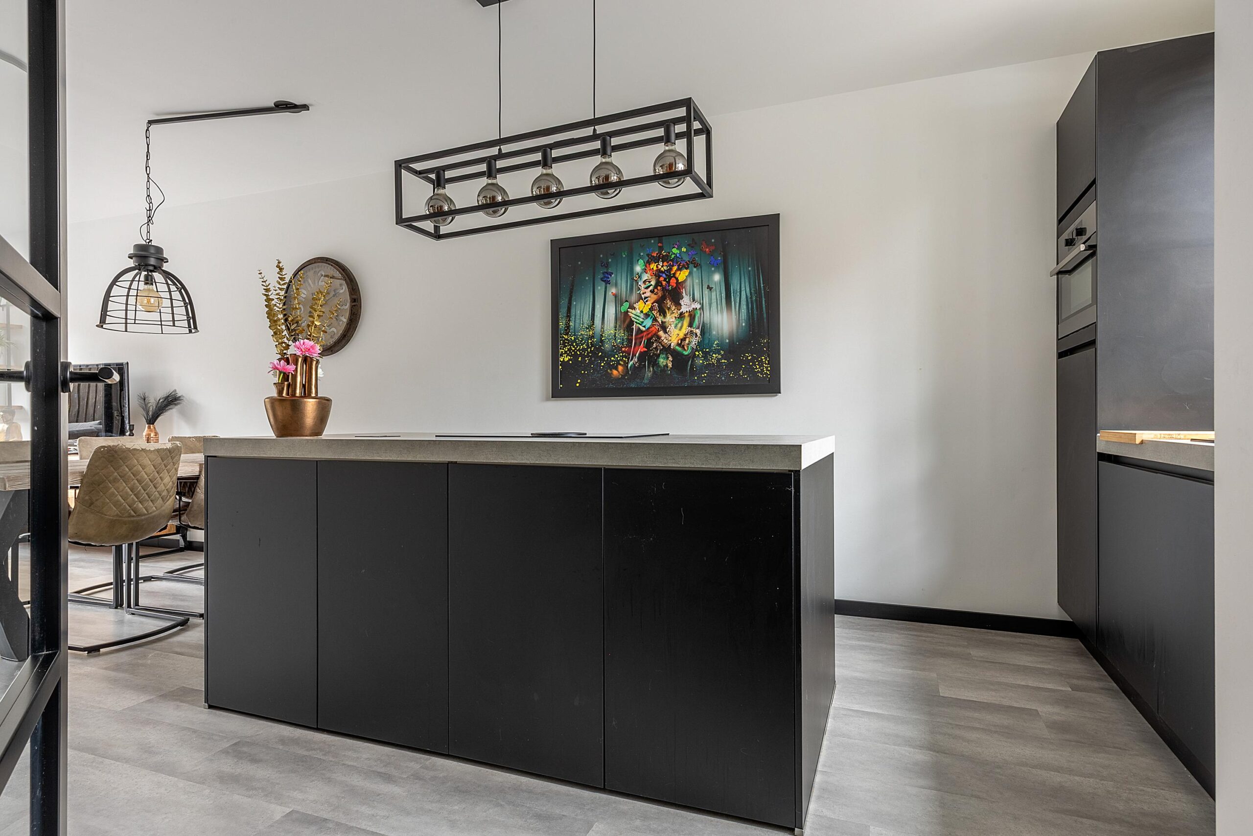 De blikvanger beneden is de stijlvolle matzwarte keuken (2023) met kookeiland, voorzien van een BORA-inductieplaat met geïntegreerde afzuiging, daarnaast veel Miele en AEG apparatuur, veel kastruimte en een royaal werkblad. Tevens ook voorzien van een AQUA HOT – direct Kokend waterkraan. Terwijl je kookt kijk je uit over de straat, en in de woonkamer is volop plek voor een grote eettafel en een gezellige zithoek. Dankzij de openslaande deuren stroomt het daglicht rijkelijk binnen en ontstaat er een lichte, warme leefruimte waar je direct een thuisgevoel ervaart.