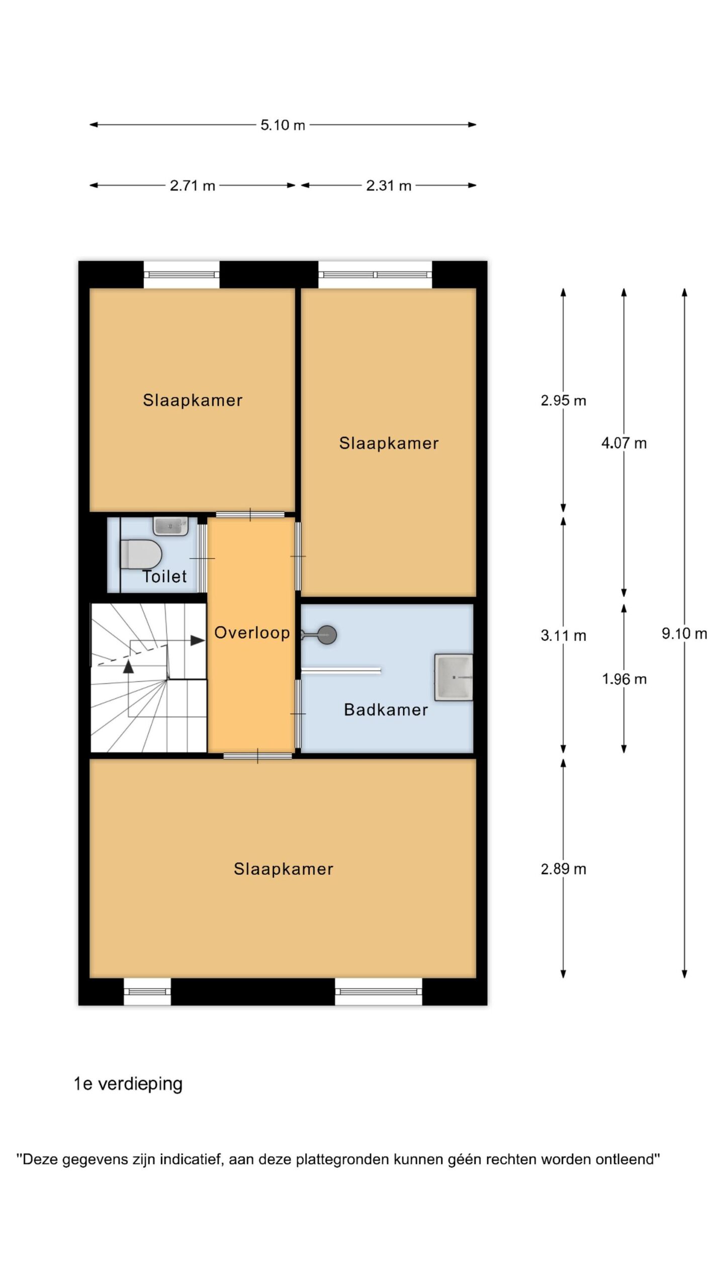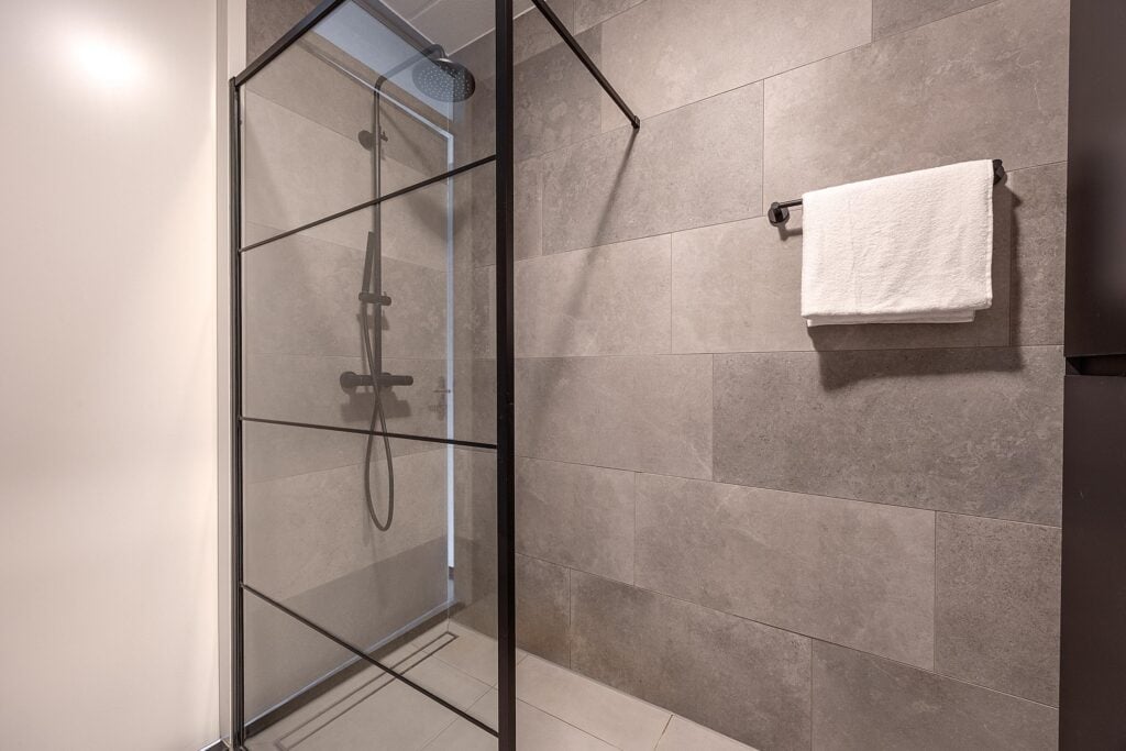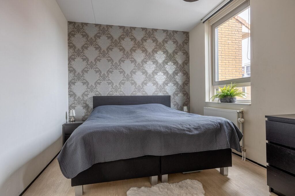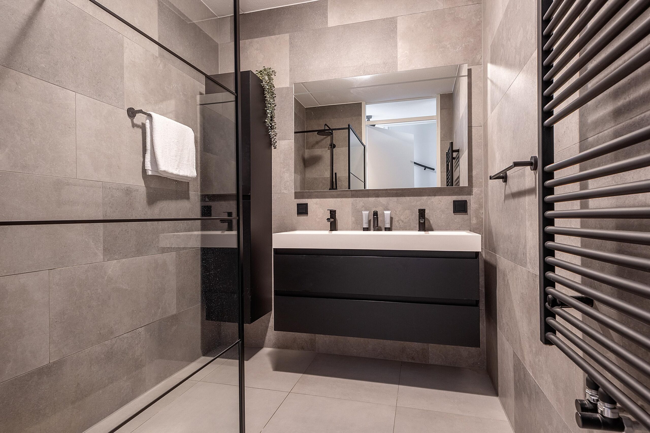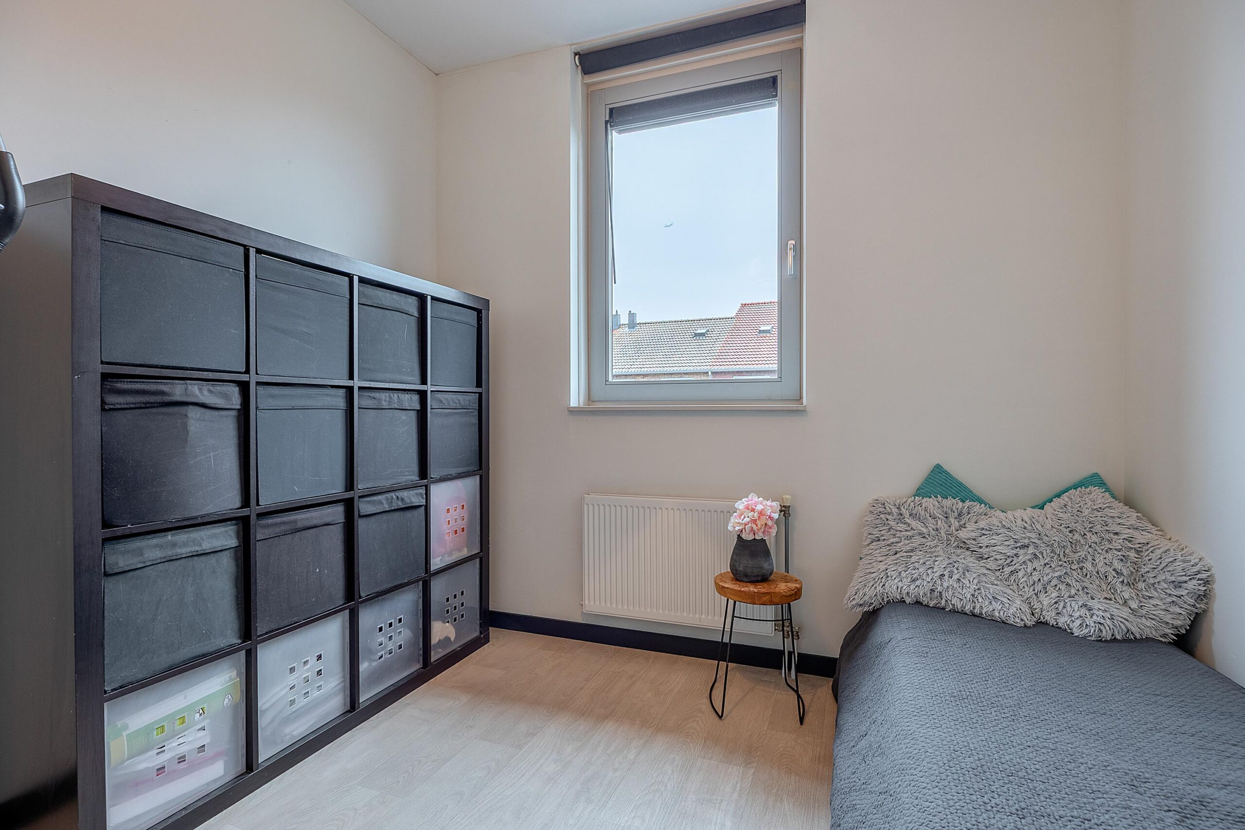 Op de eerste verdieping bevinden zich drie slaapkamers, elk met een prettige lichtinval en een praktische indeling. De ruime masterbedroom aan de voorzijde biedt moeiteloos plek aan een tweepersoonsbed én een grote kastenwand, waardoor je hier een volwaardige en comfortabele ouderslaapkamer kunt inrichten. De twee slaapkamers aan de achterzijde zijn iets compacter, maar juist daardoor ideaal als kinderkamer, werkkamer of logeerkamer. De badkamer werd in 2022 volledig vernieuwd en heeft sindsdien een moderne, luxe uitstraling. Hier geniet je van een royale inloopdouche, een stijlvol wastafelmeubel en hoogwaardige afwerking. Extra prettig is dat het toilet (2023) apart op de overloop te vinden is, wat in het dagelijks gebruik veel gemak biedt.