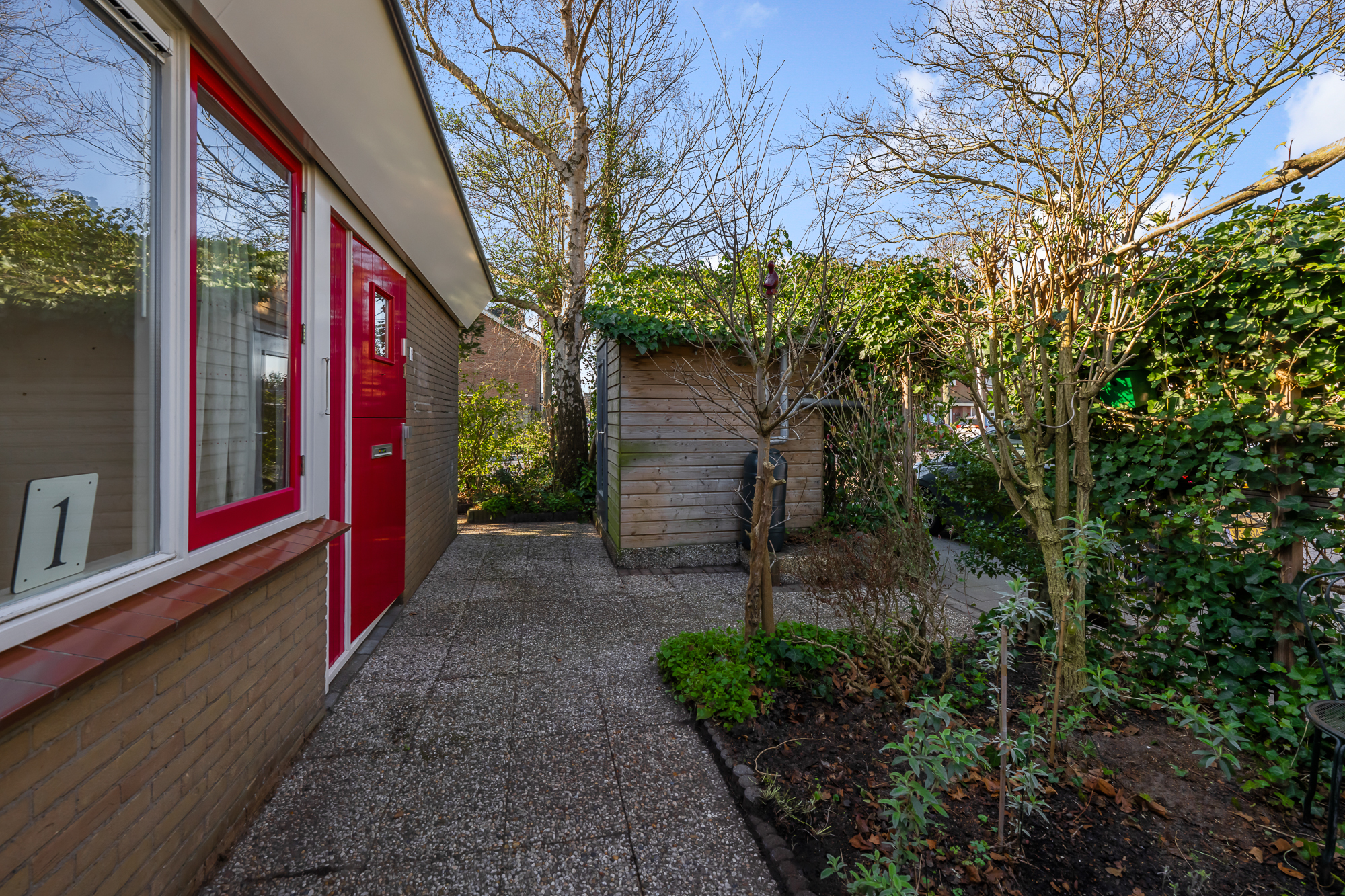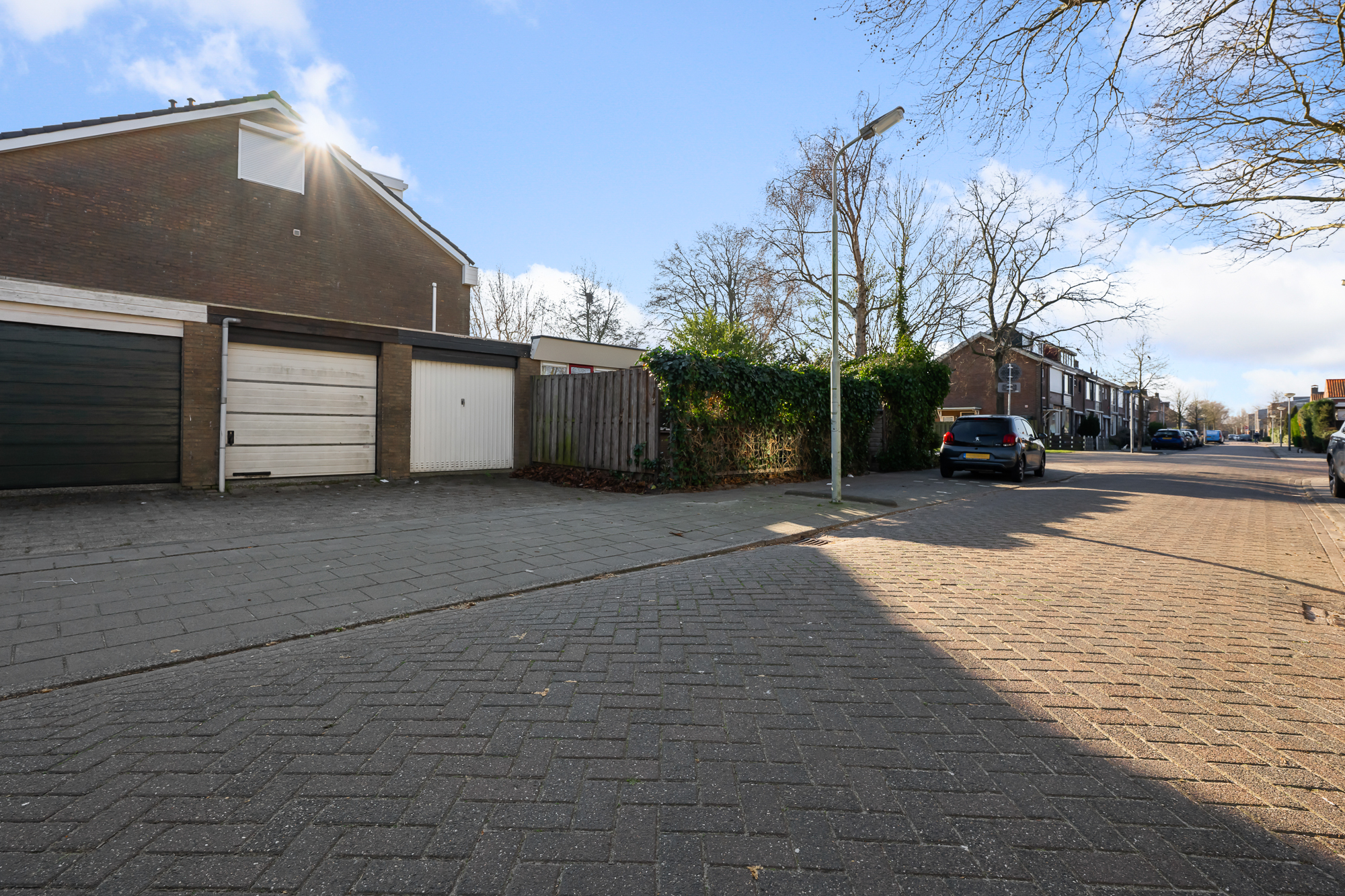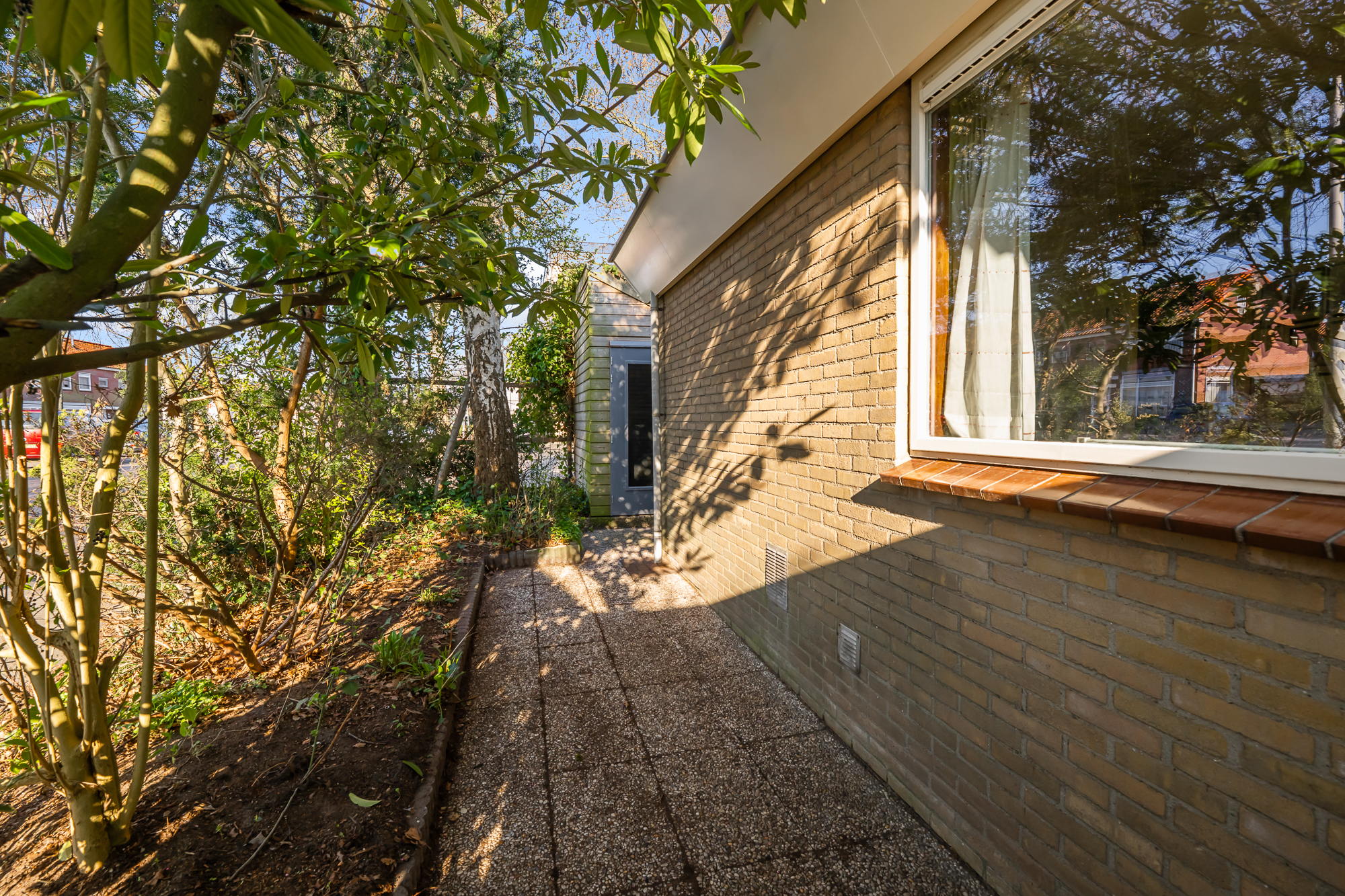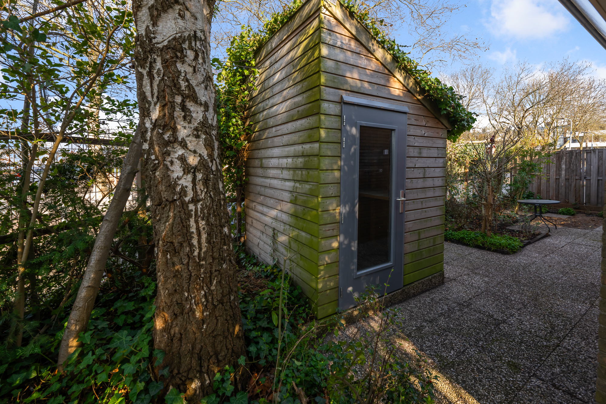Buiten geniet je van een fijne voortuin en een zijtuin, waar je op verschillende momenten van de dag kunt kiezen voor zon of schaduw. De tuin biedt voldoende ruimte om gezellig te zitten of groen aan te leggen. Door de hoekligging ervaar je hier extra privacy en vrijheid. Direct naast de woning bevindt zich een garage die eigendom is van een andere partij, maar mogelijk separaat bij te kopen is, wat extra kansen biedt voor opslag of parkeren.