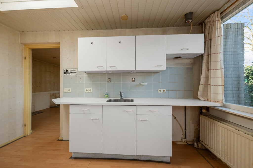 Op zoek naar comfortabel en praktisch wonen met de mogelijkheid om het helemaal naar eigen smaak te maken? Deze charmante hoekbungalow biedt gelijkvloers gemak, een fijne tuin en volop potentie in een rustige woonwijk. Via de voortuin bereik je de entree van deze compacte maar efficiënt ingedeelde bungalow. Bij binnenkomst kom je in de hal die toegang geeft tot de verschillende vertrekken. De lichte woonkamer vormt het hart van de woning en biedt een prettig uitzicht op de tuin, waarbij de hoekligging zorgt voor extra lichtinval en een ruimtelijk gevoel. De aangrenzende keuken is praktisch ingericht en vormt een goede basis voor wie hier een eigentijdse invulling aan wil geven.
