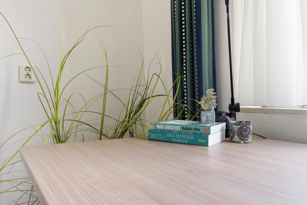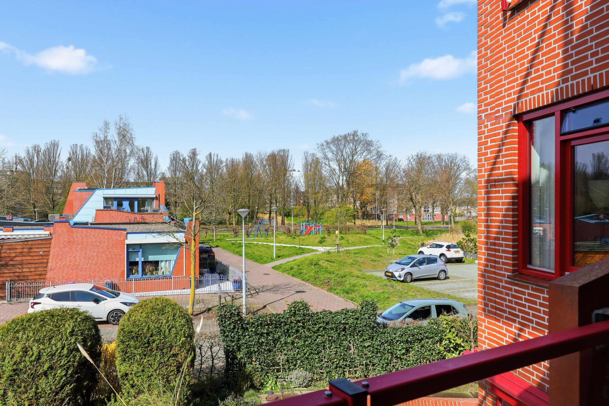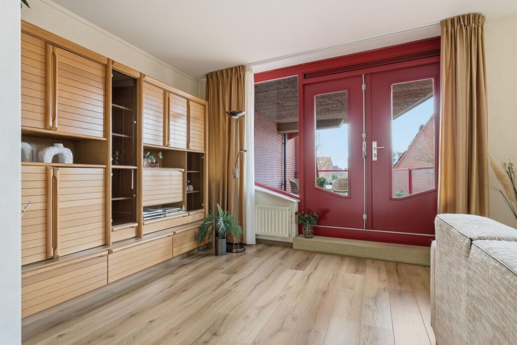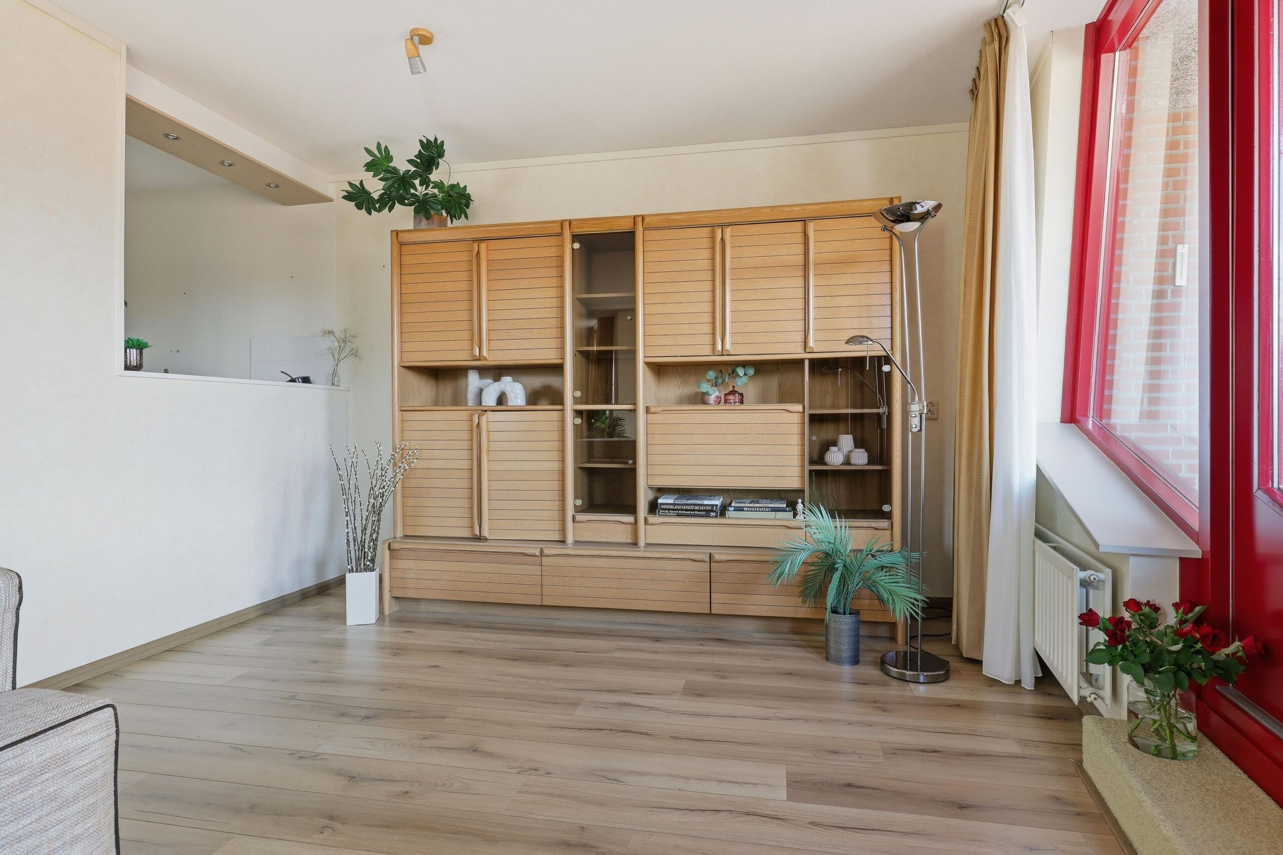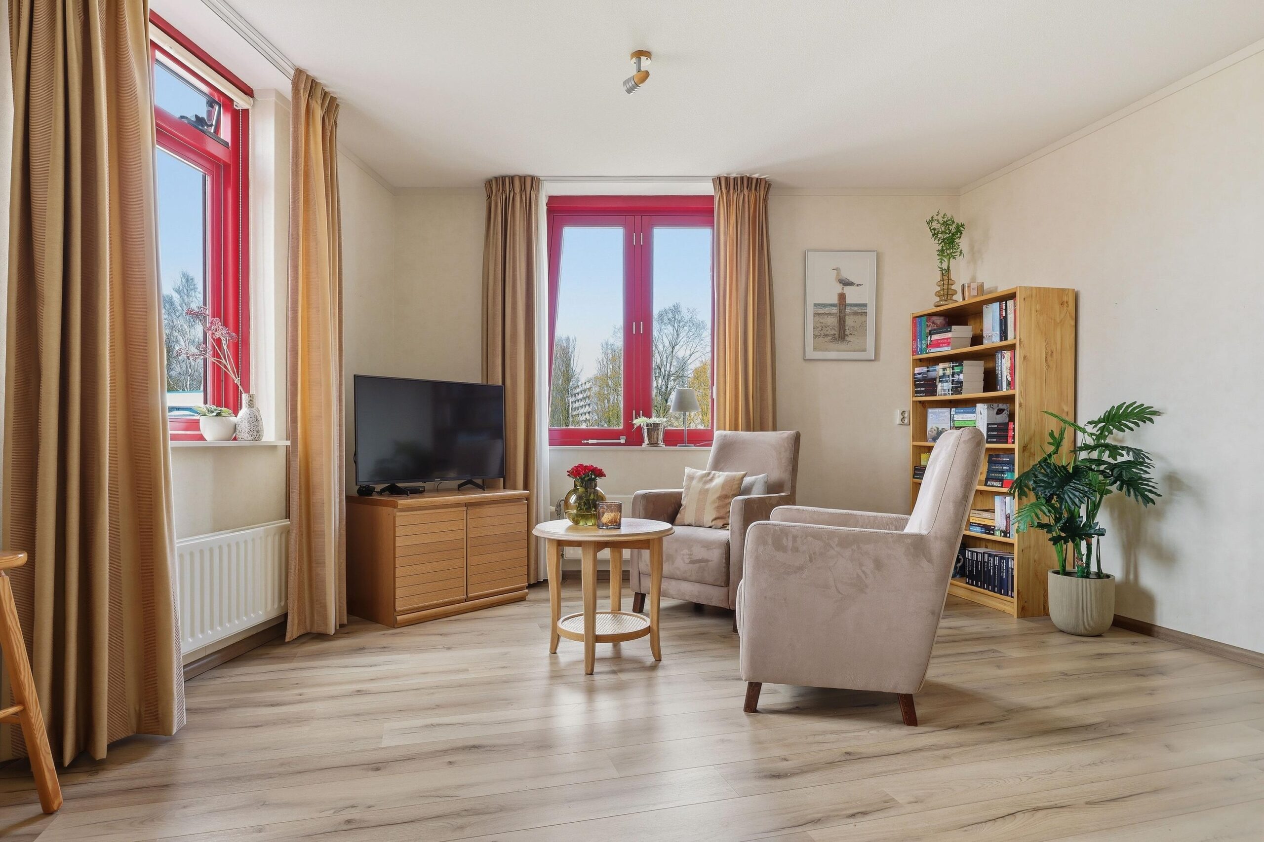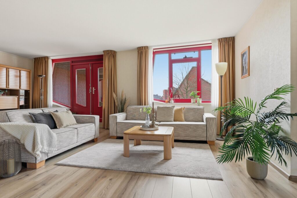 De woonkamer is opvallend ruim en heeft een fijne verbinding naar het balkon. De nette laminaatvloer en rustige afwerking geven het geheel een warme uitstraling en maken het eenvoudig om hier een comfortabele zit- en eethoek te creëren. Het balkon is ruim opgezet en biedt een vrij uitzicht over de omgeving, een fijne plek om te ontspannen.