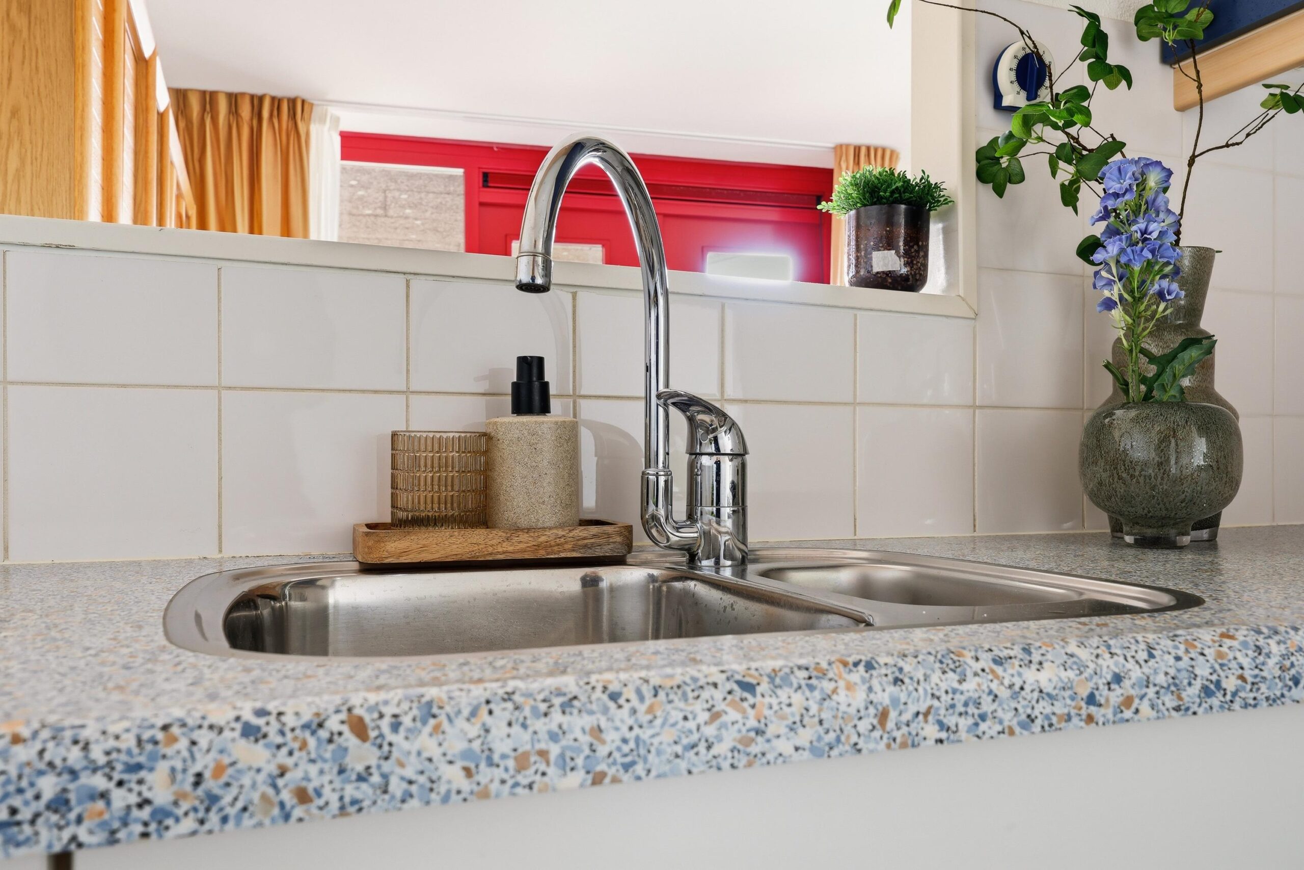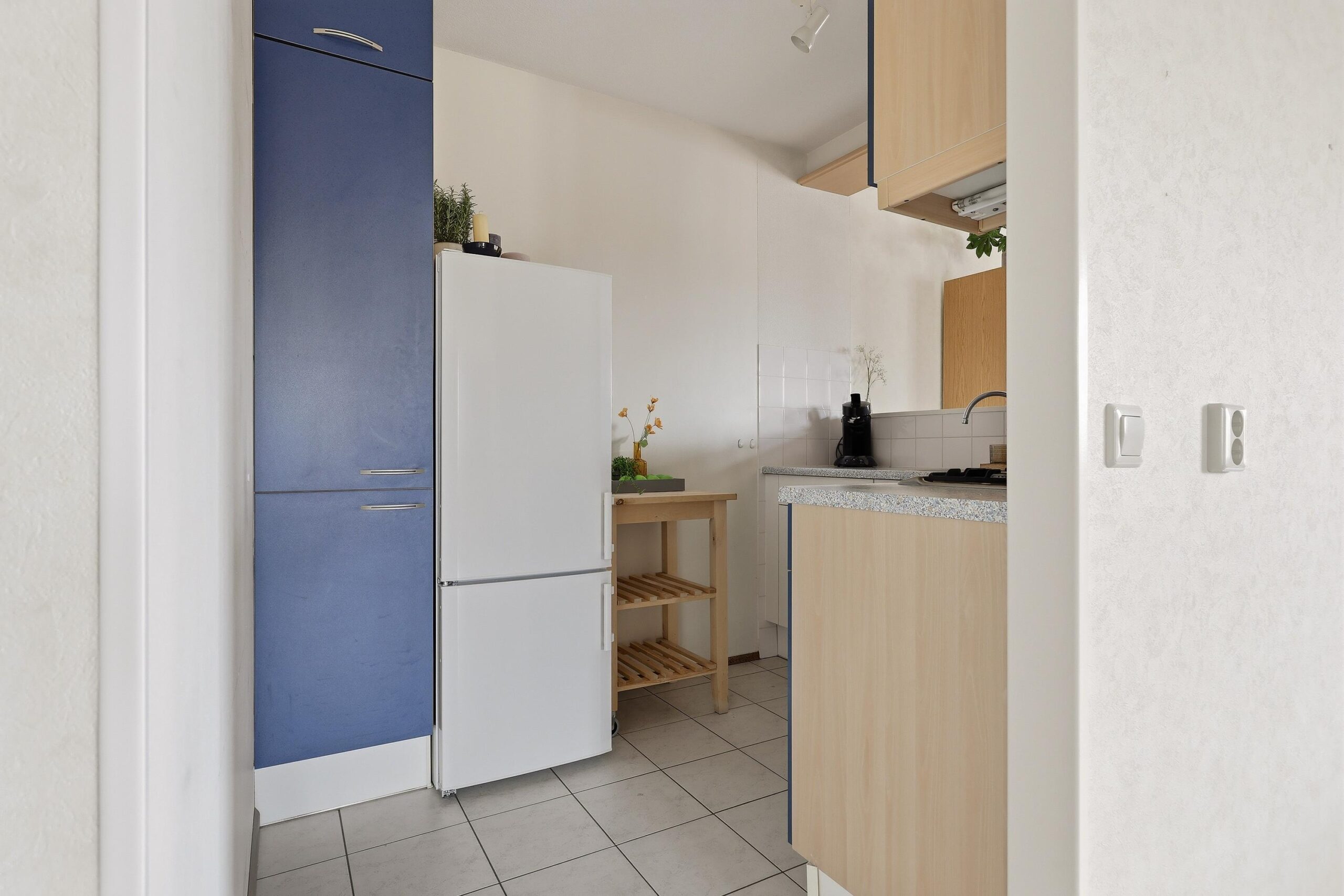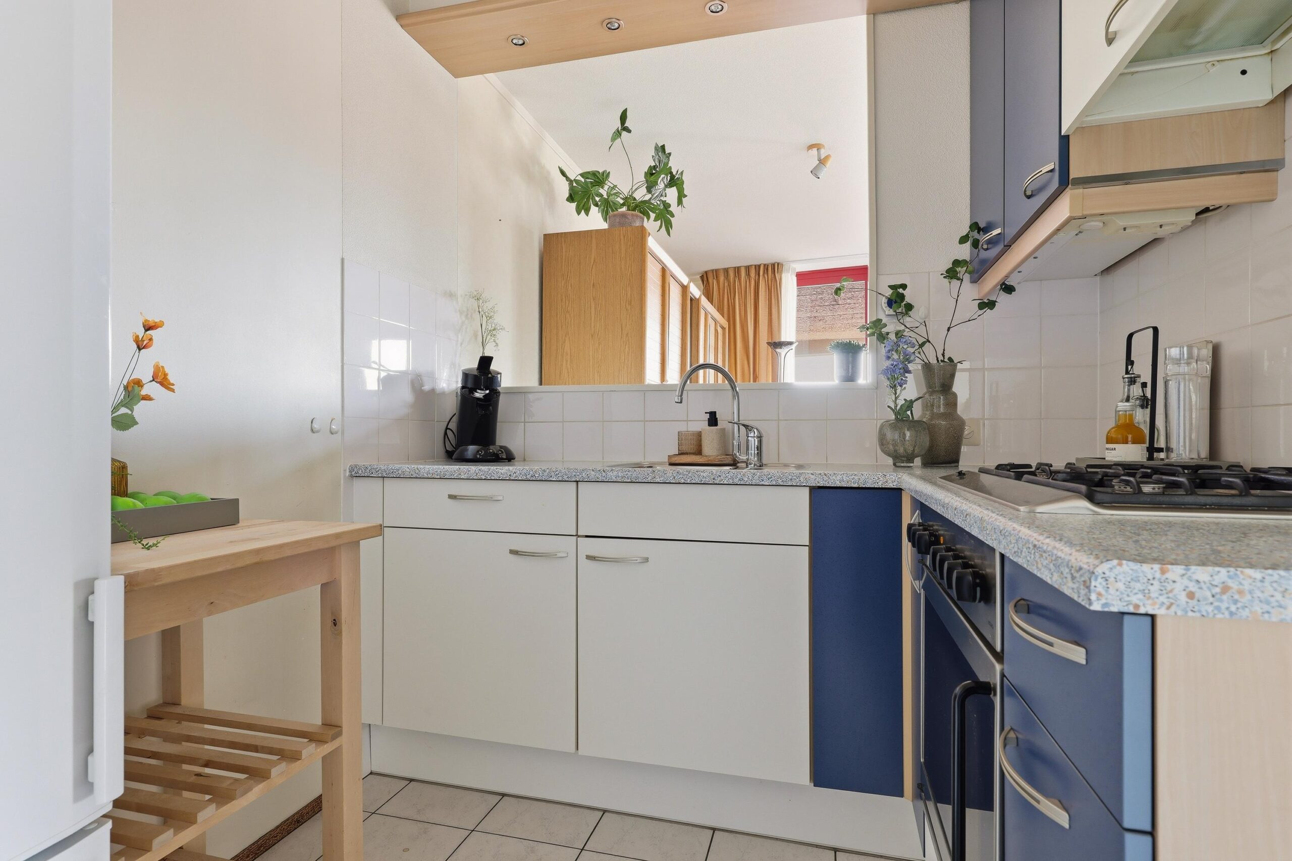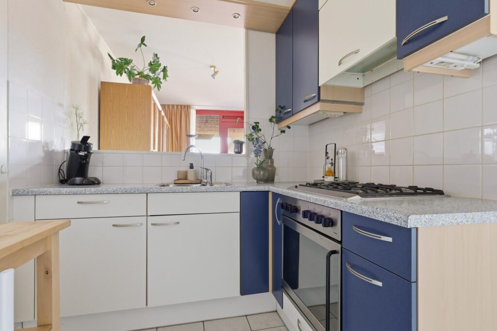 De halfopen keuken is functioneel ingericht en beschikt over diverse inbouwapparatuur en voldoende werkruimte.