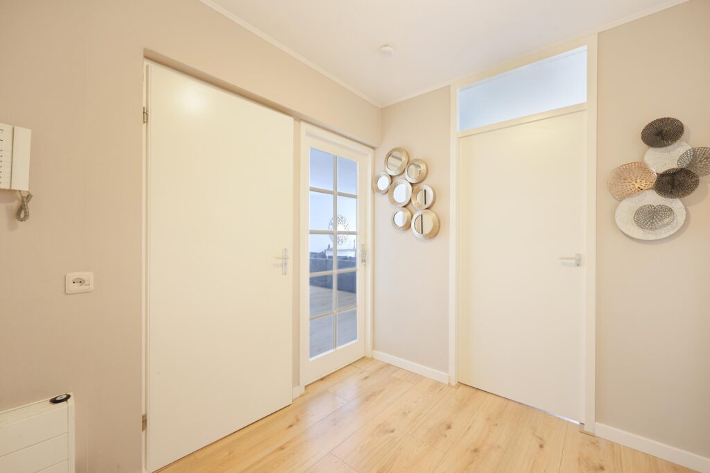 Via de afgesloten entree met videofooninstallatie en lift bereik je de eerste verdieping. Bij binnenkomst valt direct de prettige indeling en de verzorgde afwerking op.