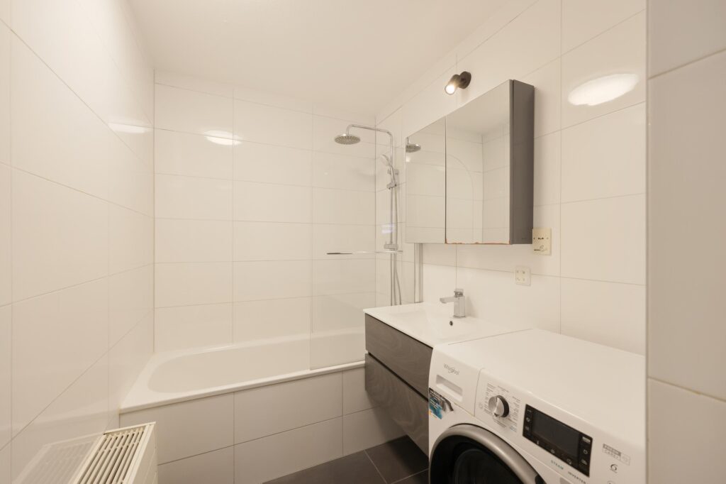 De badkamer is netjes uitgevoerd en voorzien van een ligbad, nieuw wastafelmeubel en wasmachineaansluiting. Daarnaast is er een vernieuwd separaat toilet.