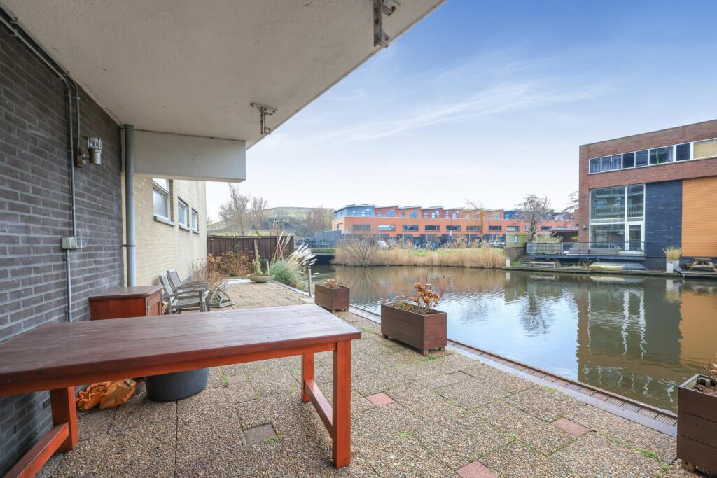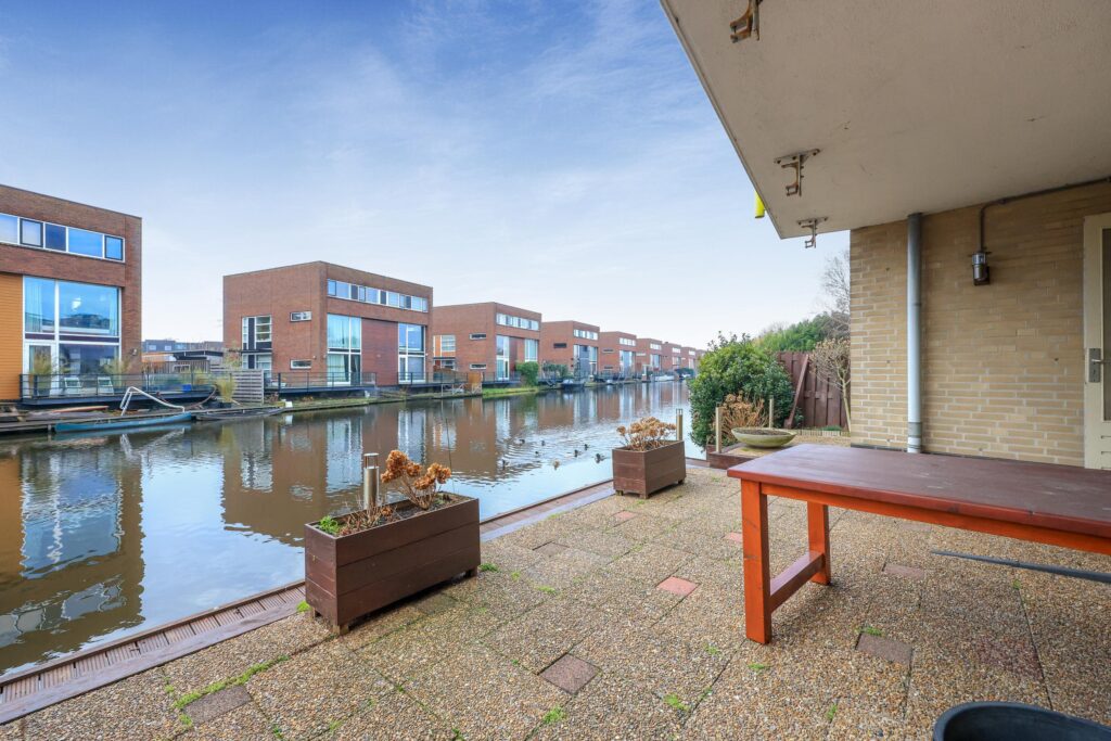 Op de begane grond bevindt zich een eigen berging in de onderbouw, ideaal voor fietsen en extra opslag. Daarnaast is er een gemeenschappelijk terras direct aan het water, een heerlijke plek om buiten te zitten en te genieten van de rustige omgeving.