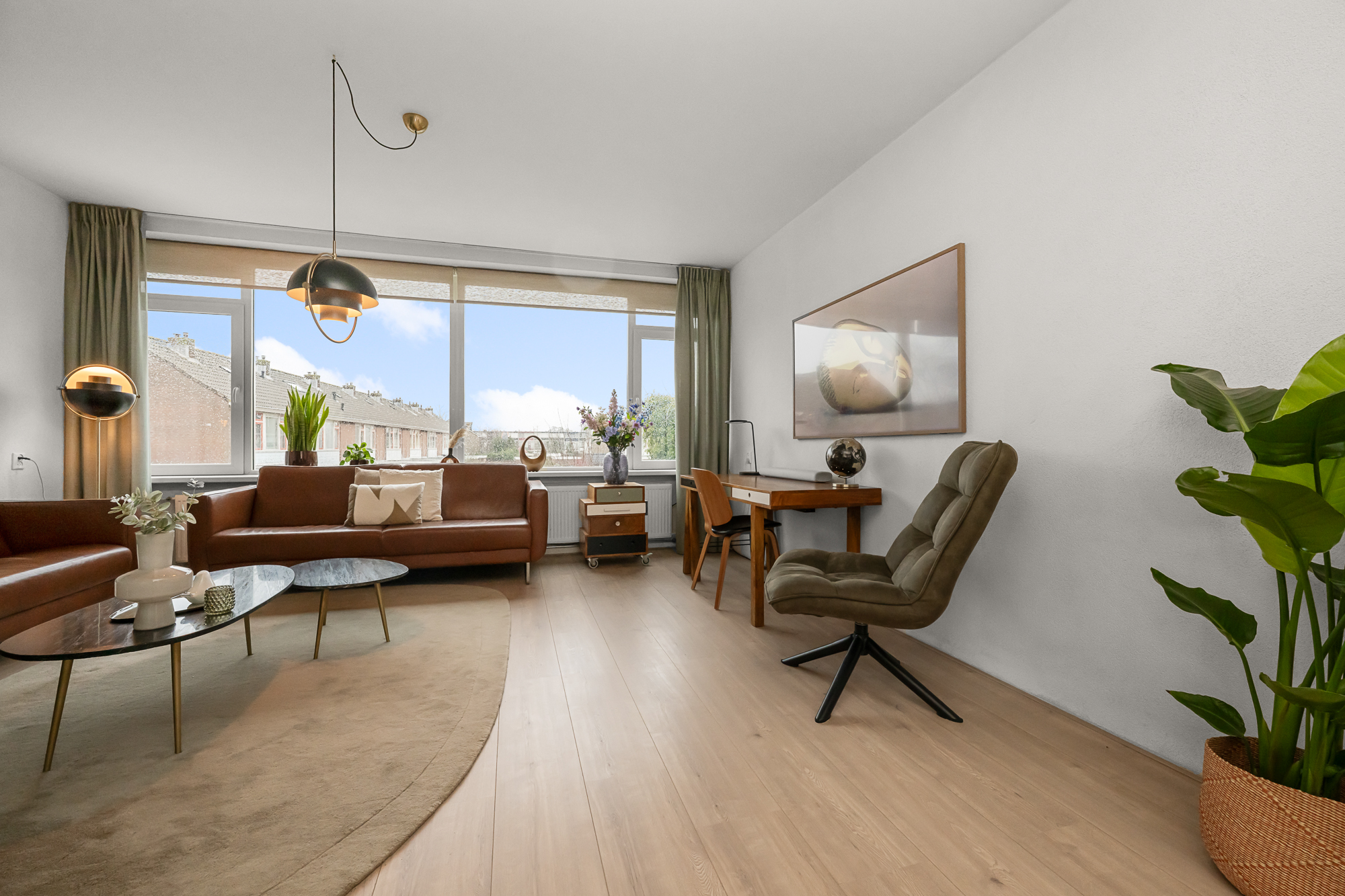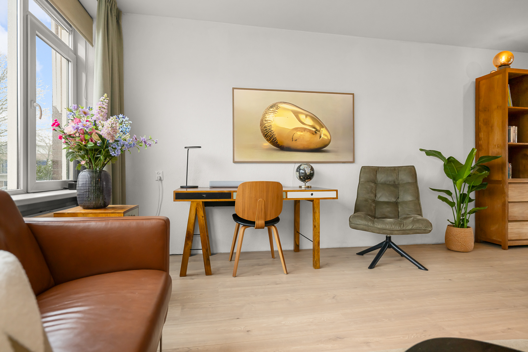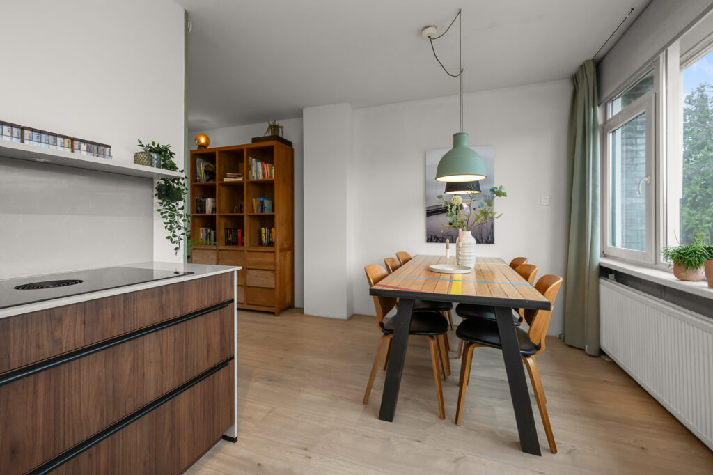 De woonkamer en de keuken bevindt zich op de eerste verdieping. De fraaie keuken is in 2023 vernieuwd en voorzien van diverse inbouwapparatuur en een kokend water kraan.