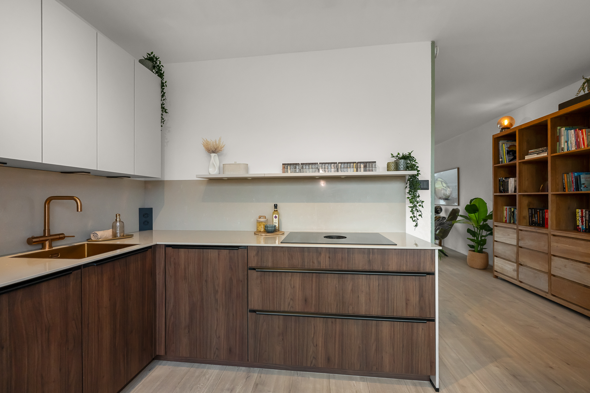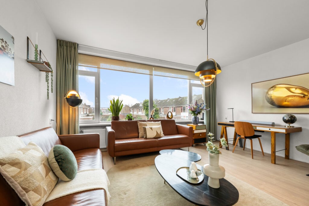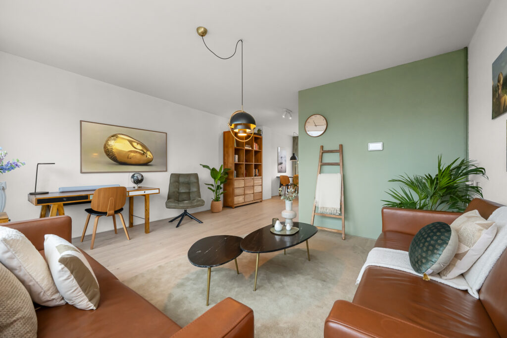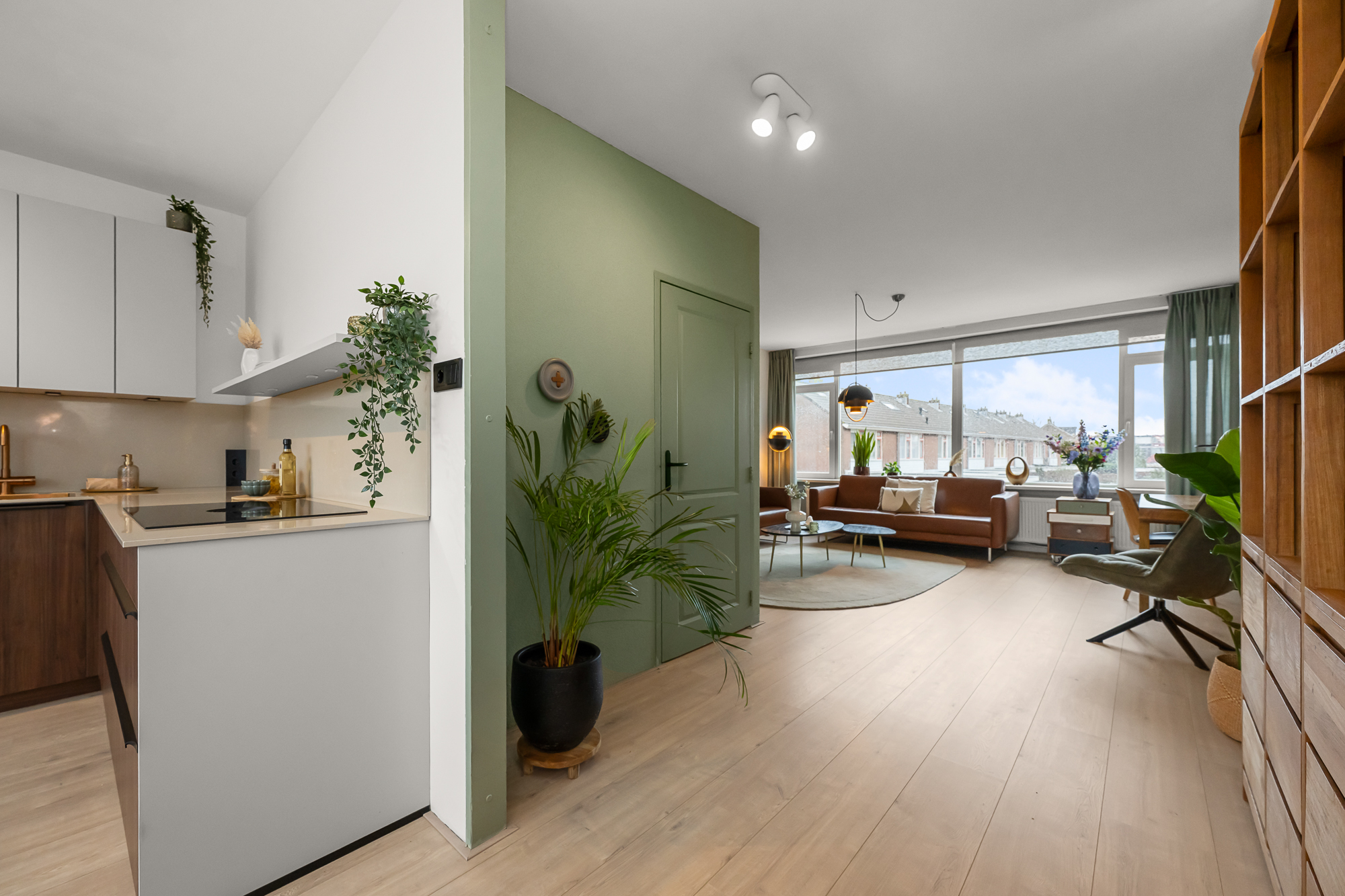 De woonkamer en de keuken bevindt zich op de eerste verdieping. De fraaie keuken is in 2023 vernieuwd en voorzien van diverse inbouwapparatuur en een kokend water kraan.