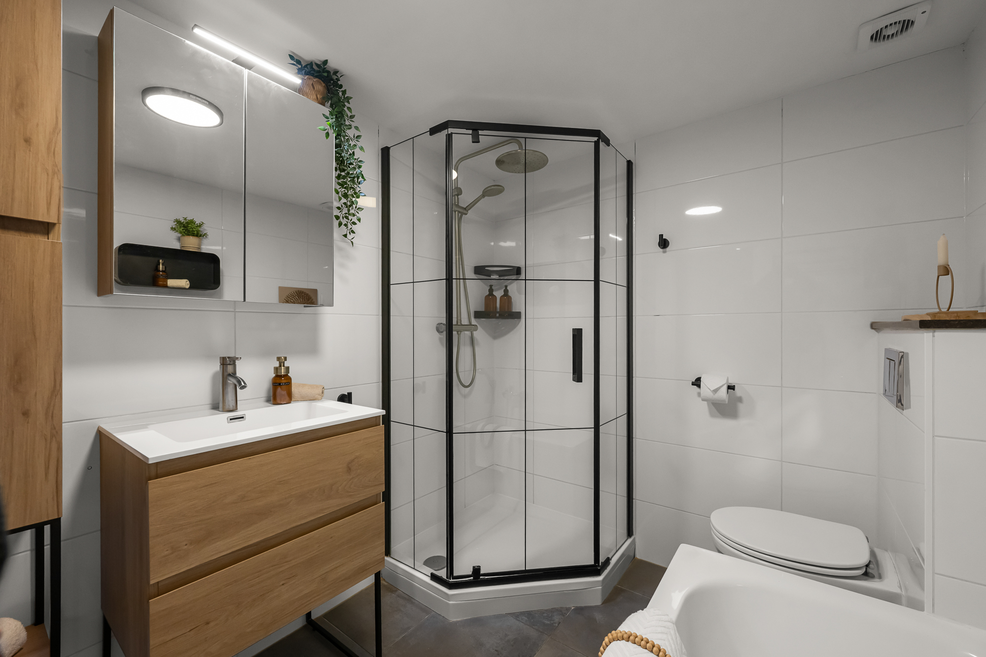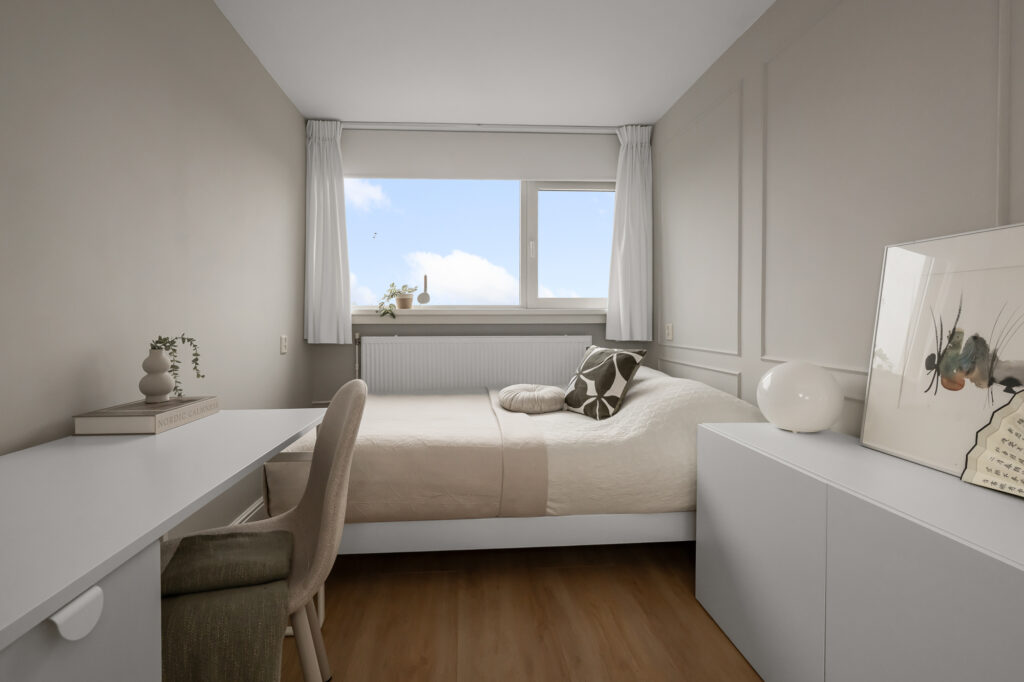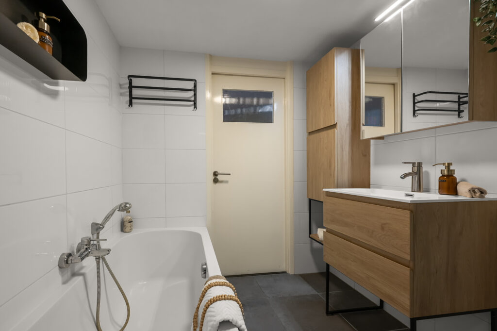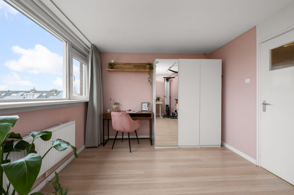 Op de tweede verdieping bevinden zich drie slaapkamers van goed formaat, geschikt als slaap-, werk- of hobbykamer. De badkamer is uitgevoerd met een ligbad, douche, wastafelmeubel en toilet. De badkamer dateert grotendeels uit 2008, waarbij in 2023 het wasmeubel en de douchewanden zijn vernieuwd.