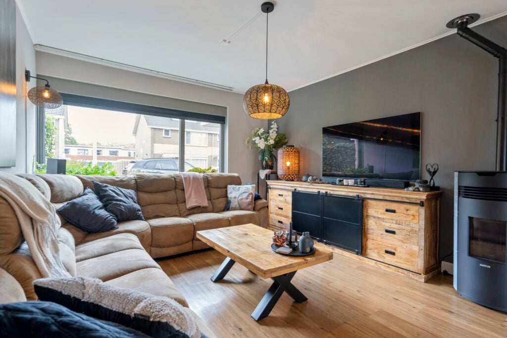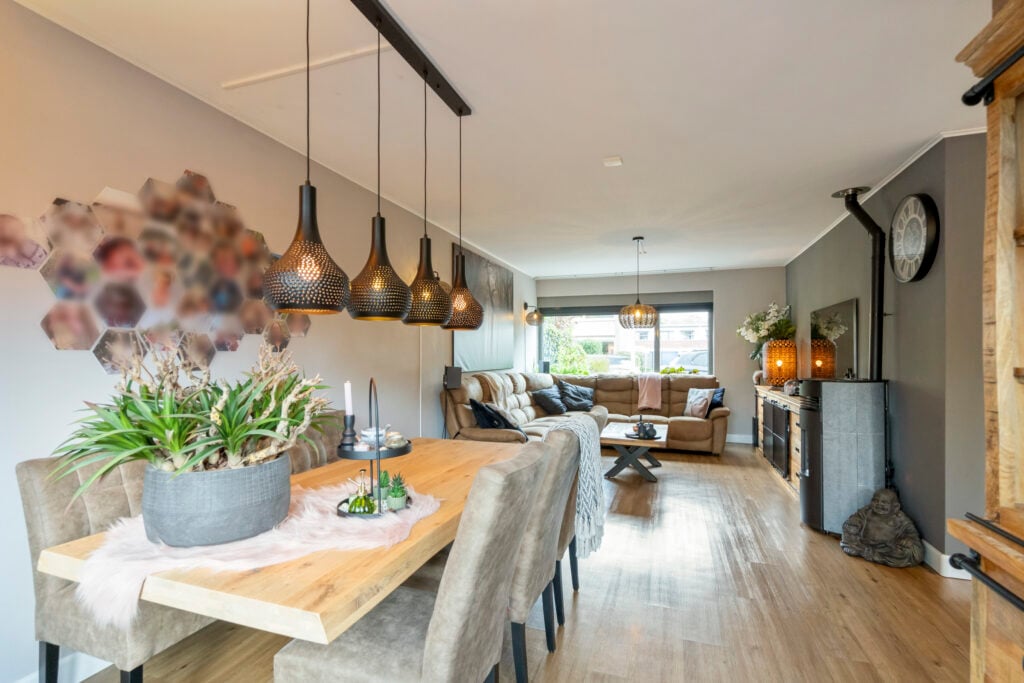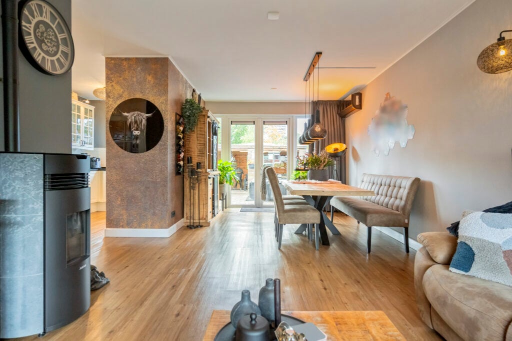 Stap binnen via de royale voortuin die meteen een warm onthaal biedt. De woning is afgewerkt met onderhoudsarme kunststofkozijnen, zodat je minder tijd kwijt bent aan onderhoud. De ruime woonkamer, met veel lichtinval door de vele ramen aan beide zijden, biedt tal van mogelijkheden om naar wens in te richten. Extra comfort zit er ook in: vloerverwarming, airconditioning en een pelletkachel. De woning beschikt over een PVC-vloer, gestuukte wanden en stijlvolle plinten. De halfopen keuken, uitgevoerd in landelijke stijl, is volledig uitgerust met alle benodigde inbouwapparatuur.