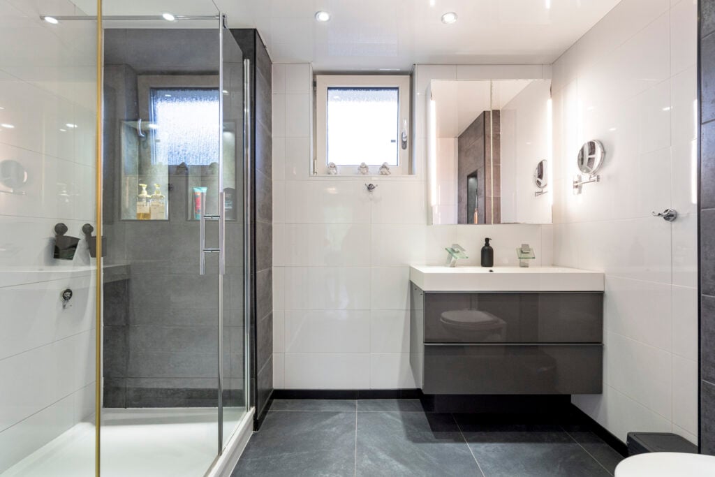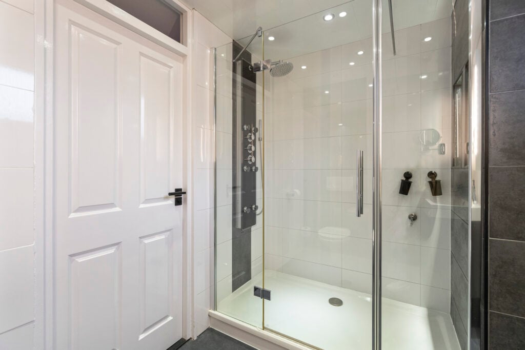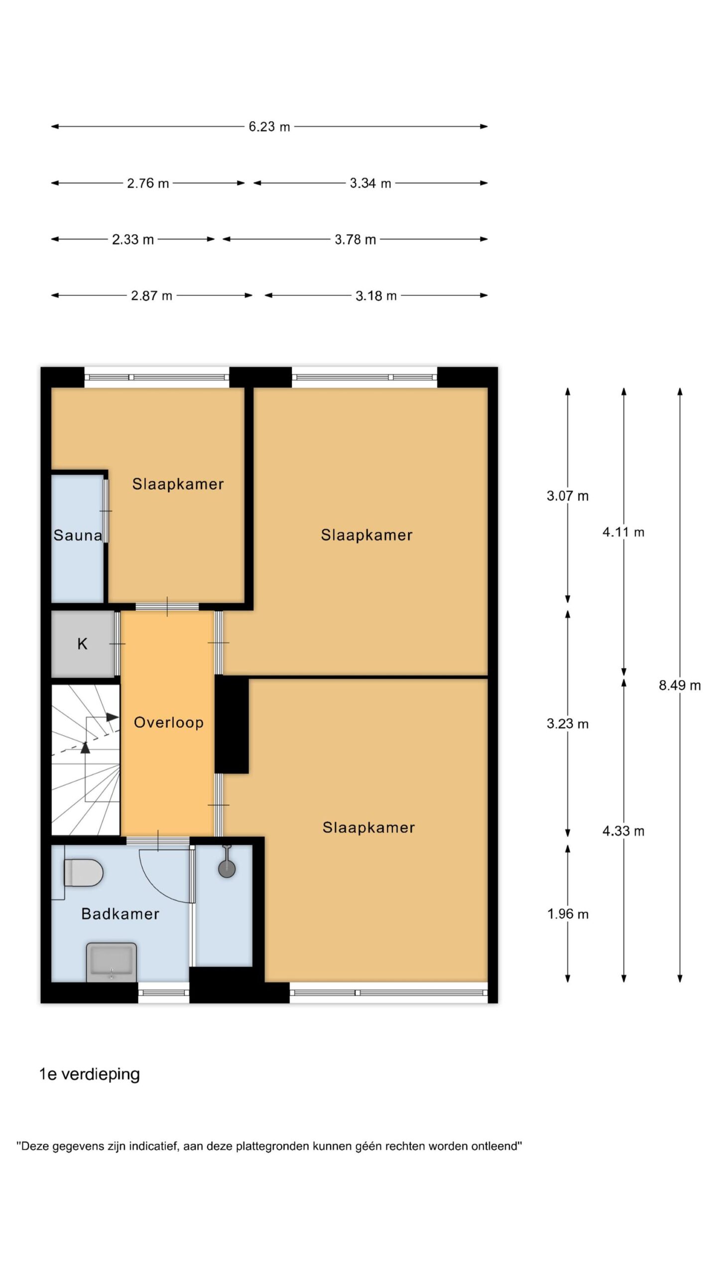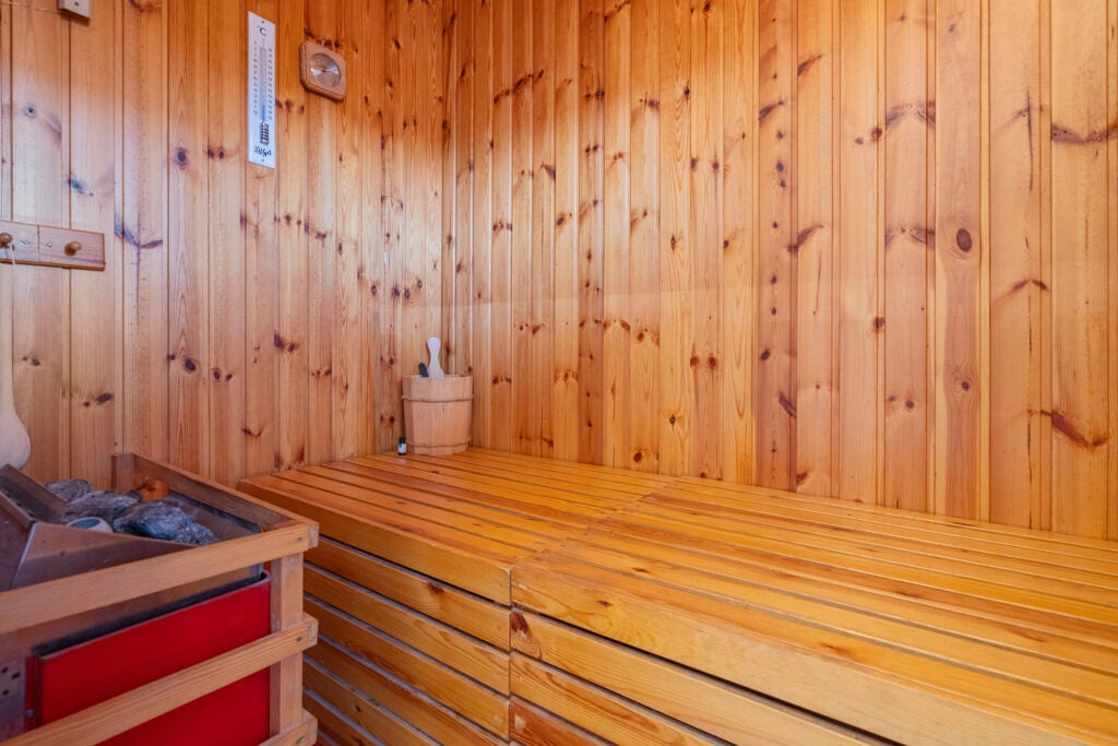 Op de eerste verdieping bevinden zich in totaal drie slaapkamers, elk ruim genoeg voor het hele gezin. De twee grootste slaapkamers zijn bovendien uitgerust met zowel airconditioning als vloerverwarming. De derde slaapkamer biedt een bijzondere verrassing: je eigen sauna! De moderne badkamer, voorzien van een douche, hangtoilet, wastafel met meubel en vloerverwarming, sluit dit niveau perfect af.