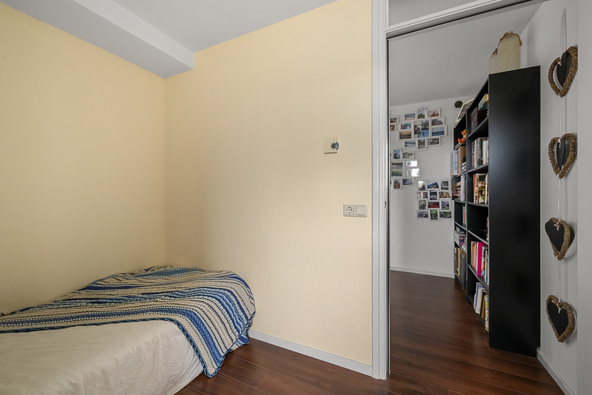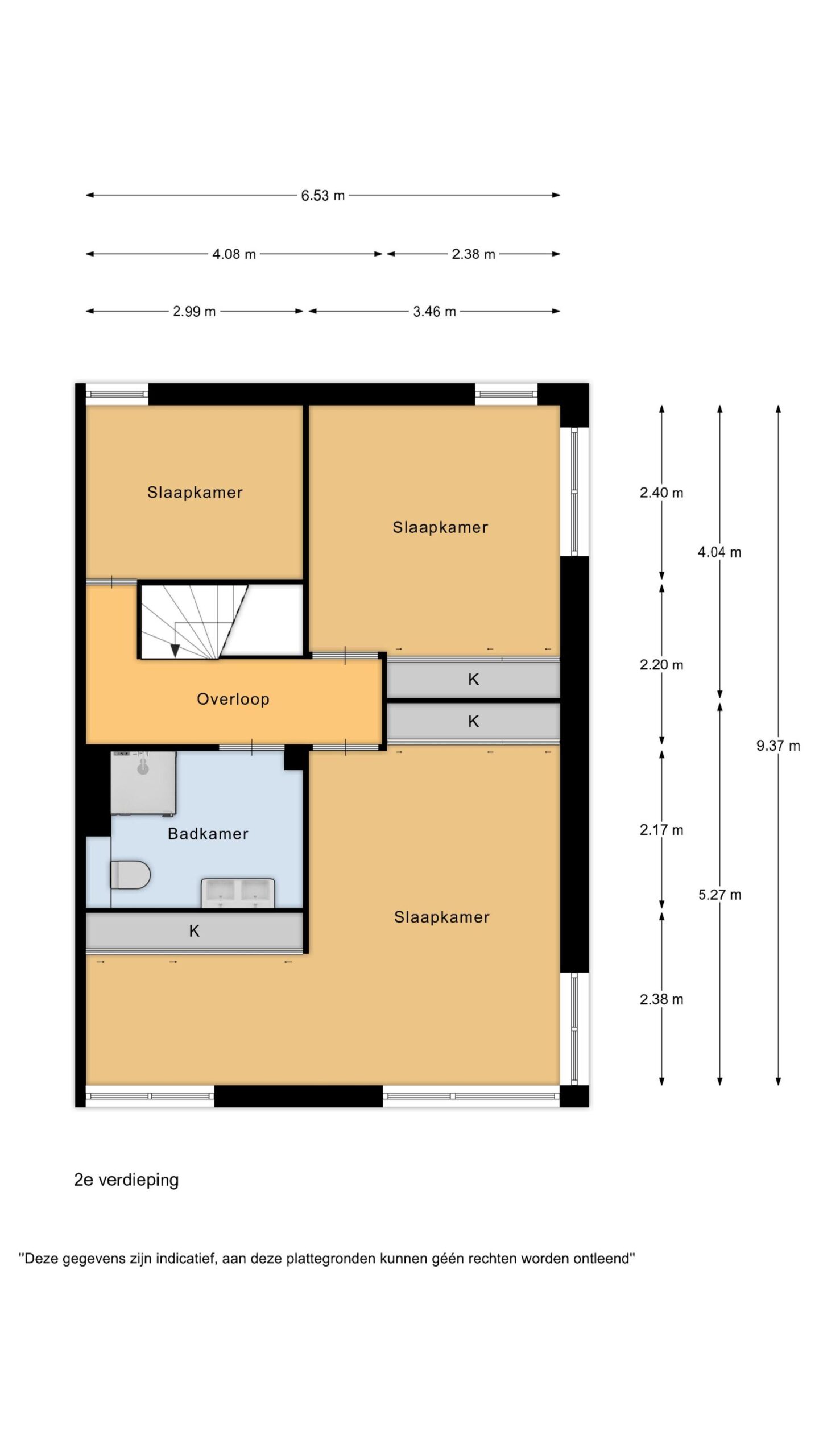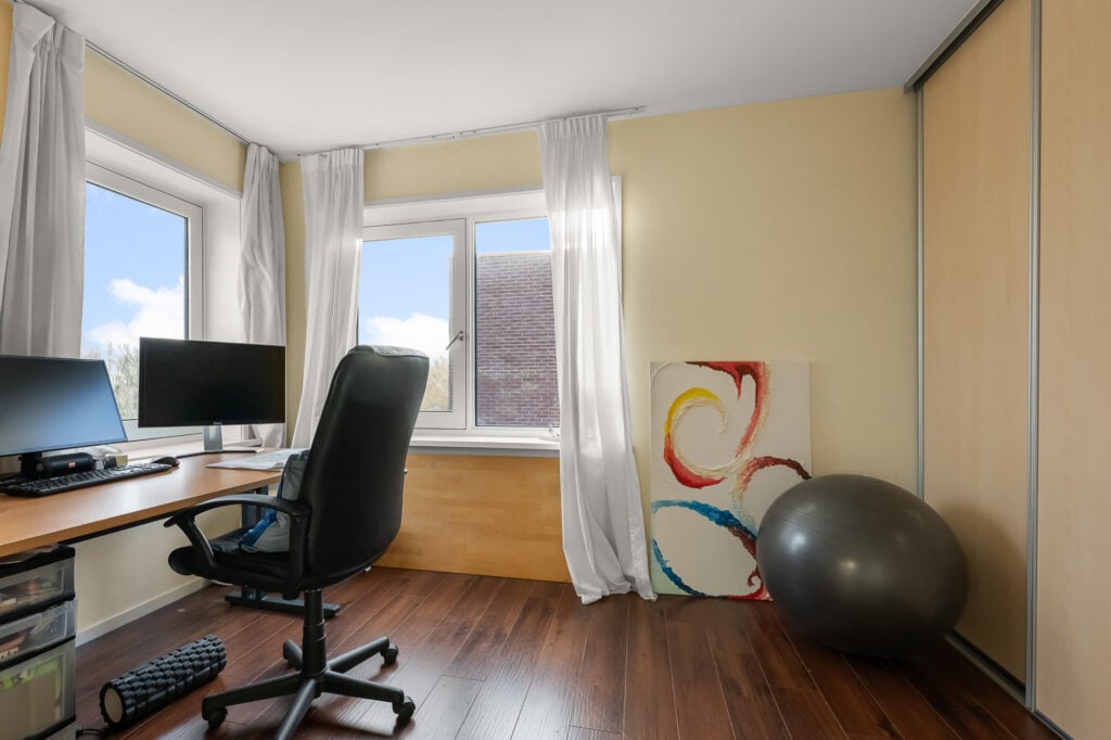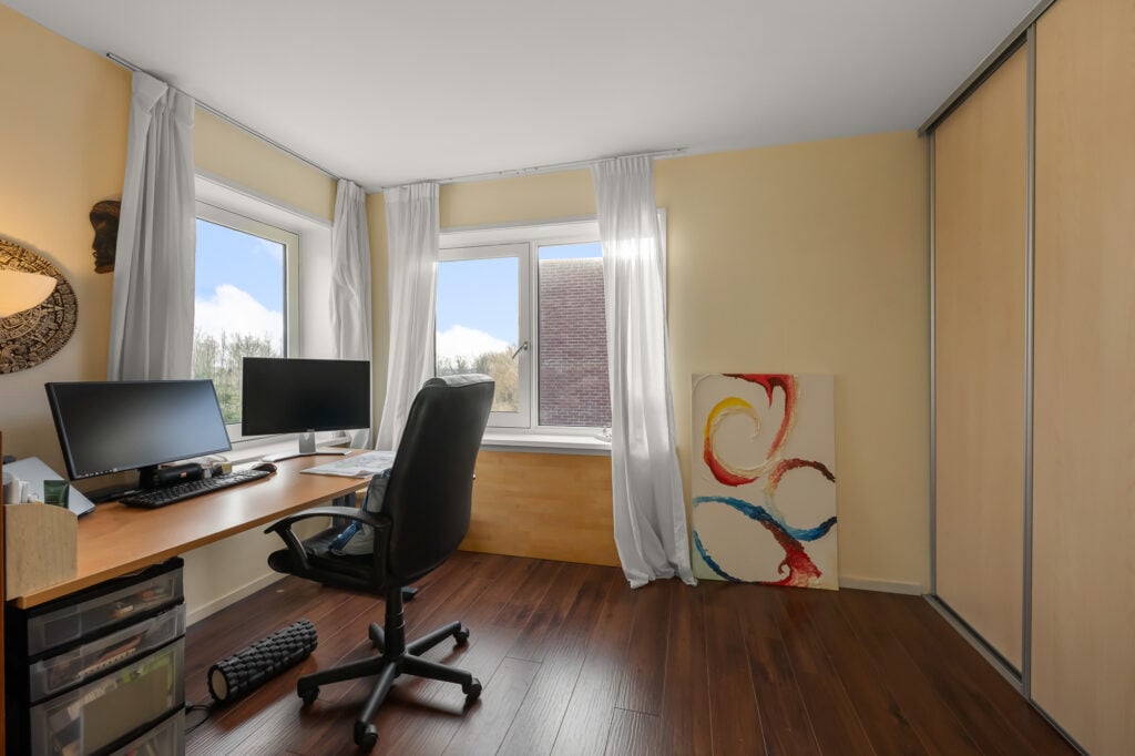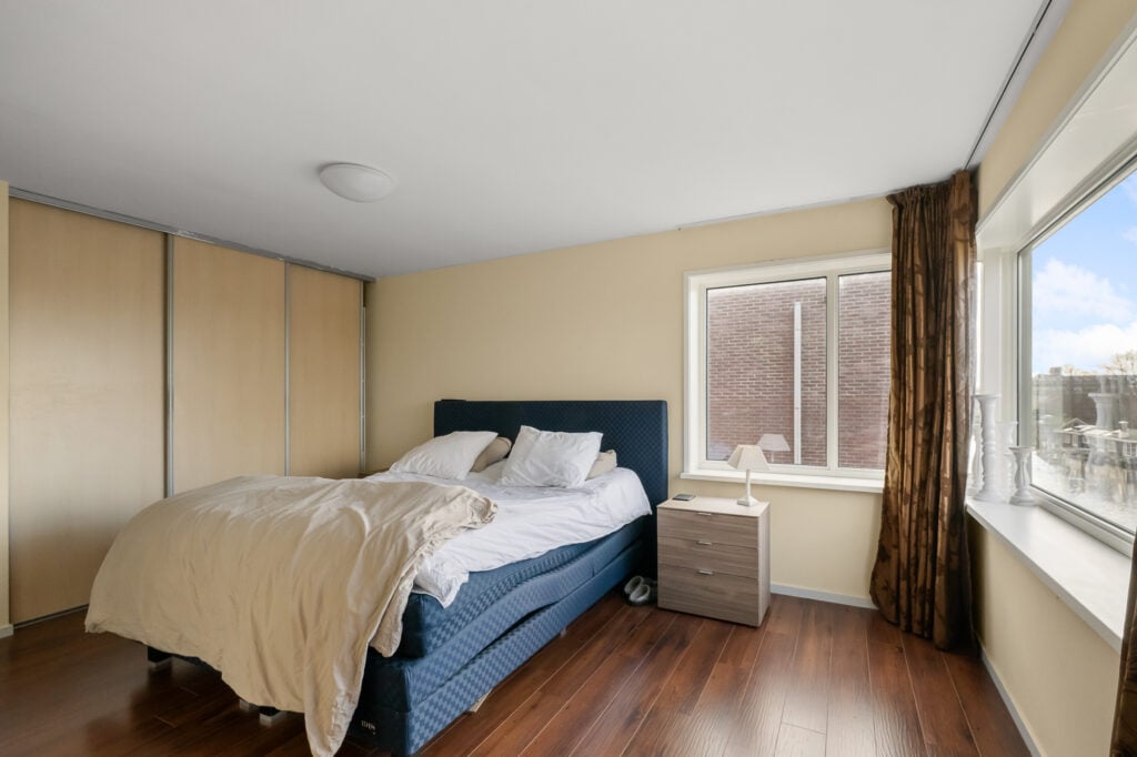 De tweede verdieping biedt ruimte aan drie slaapkamers. Aan de voorzijde bevindt zich de master bedroom, royaal van formaat en prettig licht. Aan de achterzijde liggen de twee overige slaapkamers, ideaal als kinder-, werk- of logeerkamer. Alle slaapkamers zijn voorzien van praktische inbouwkasten. Centraal op deze verdieping ligt de badkamer, compleet uitgevoerd met een douche, toilet en wastafel.