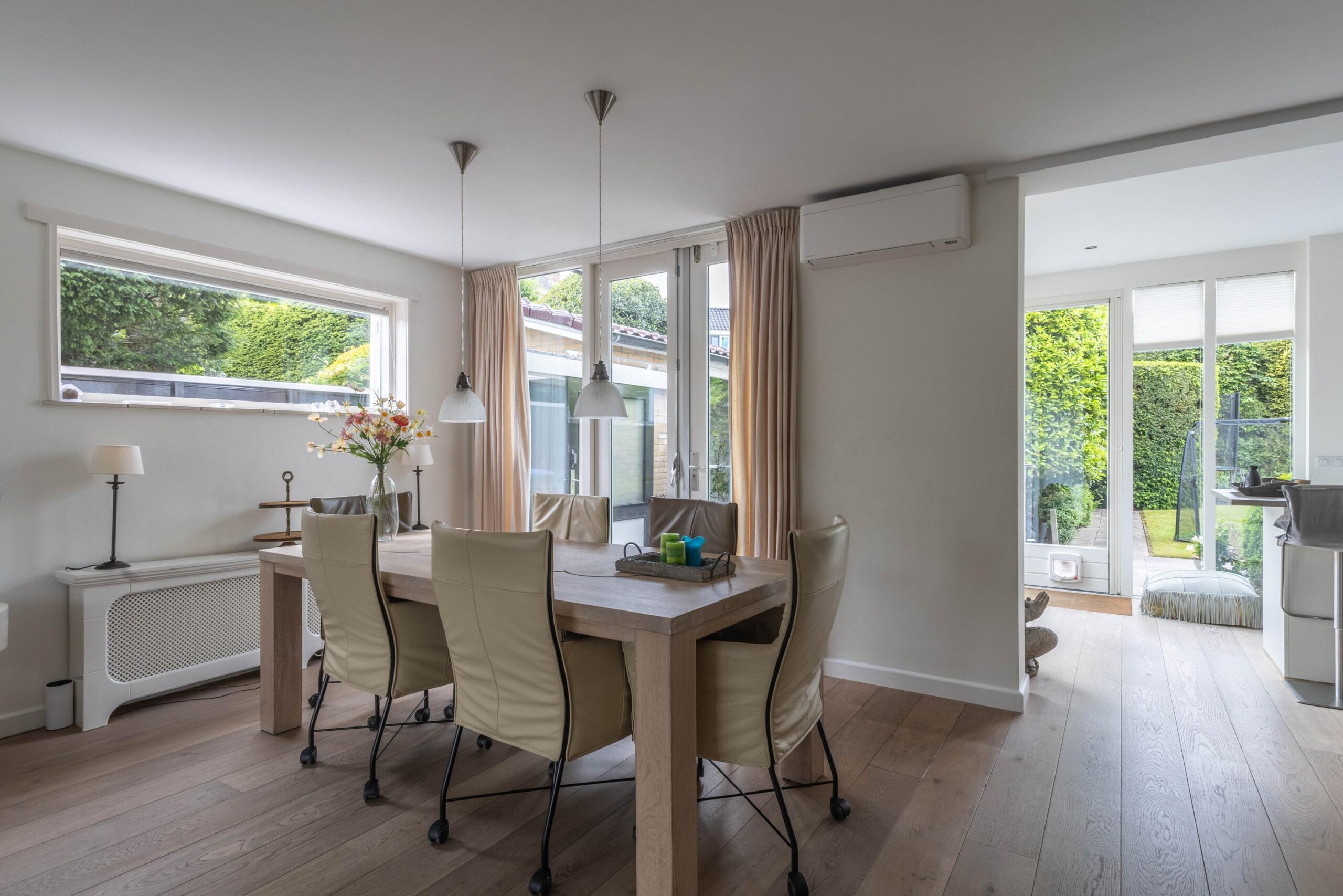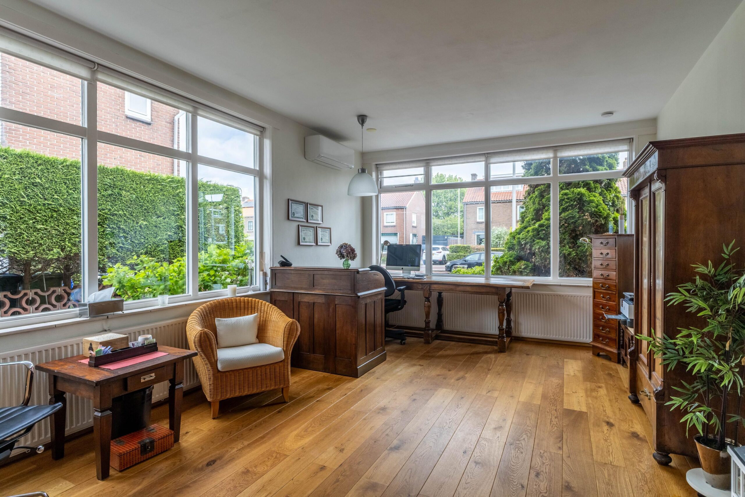 De woning is slim ontworpen en biedt ongekende flexibiliteit. De royale kantoor/praktijkruimte van circa 32 m² heeft een eigen ingang, badkamer en toilet én is voorzien van airconditioning. Dit maakt het een ideale plek voor een eigen praktijk, atelier, gastenverblijf of mantelzorgwoning. Wil je liever dat deze ruimte weer deel uitmaakt van de hoofdwoning? Dat kan heel eenvoudig aangepast worden aan jouw wensen.